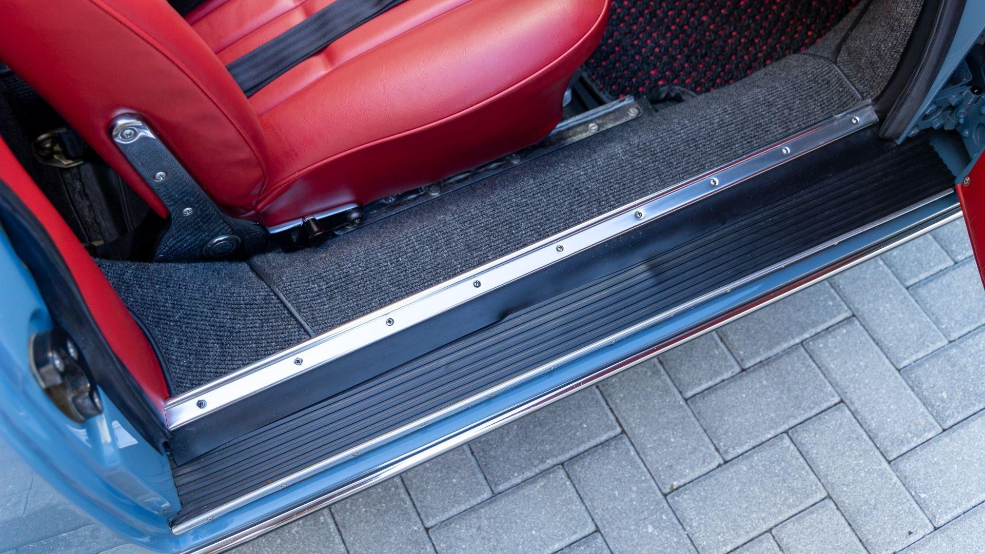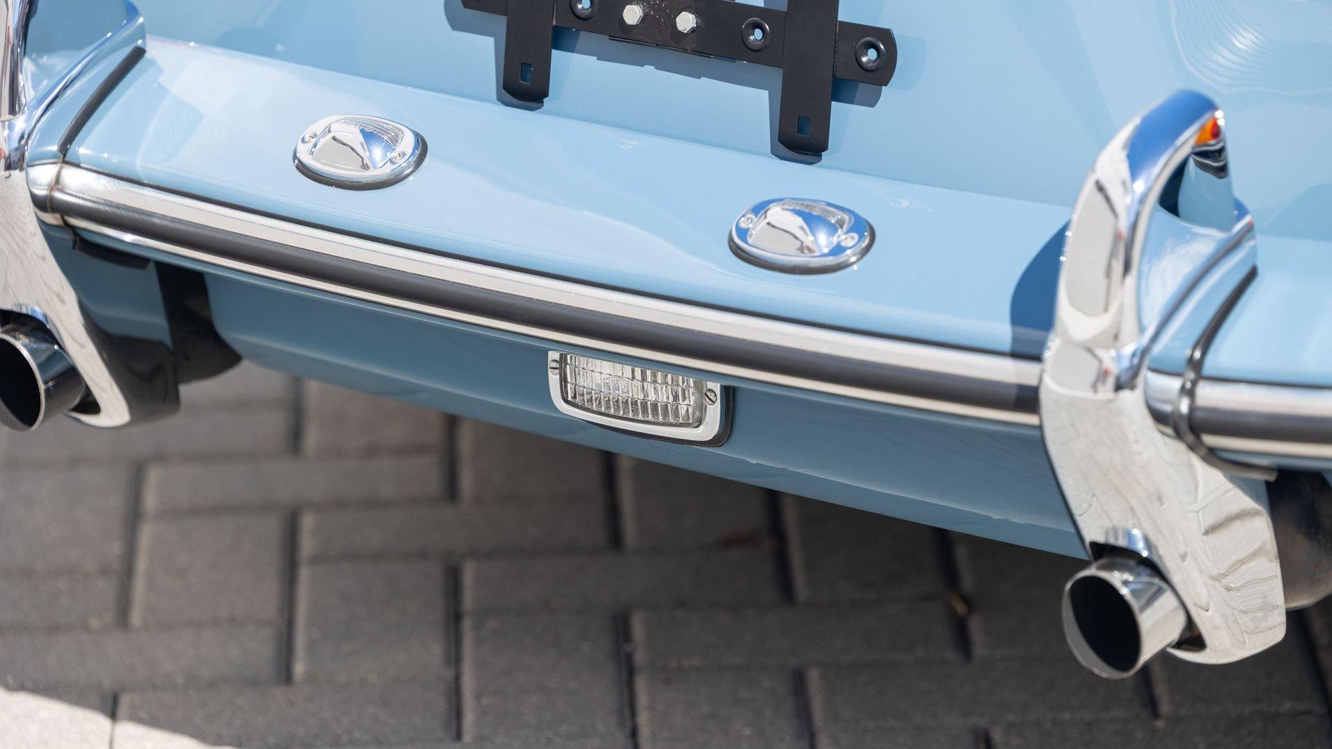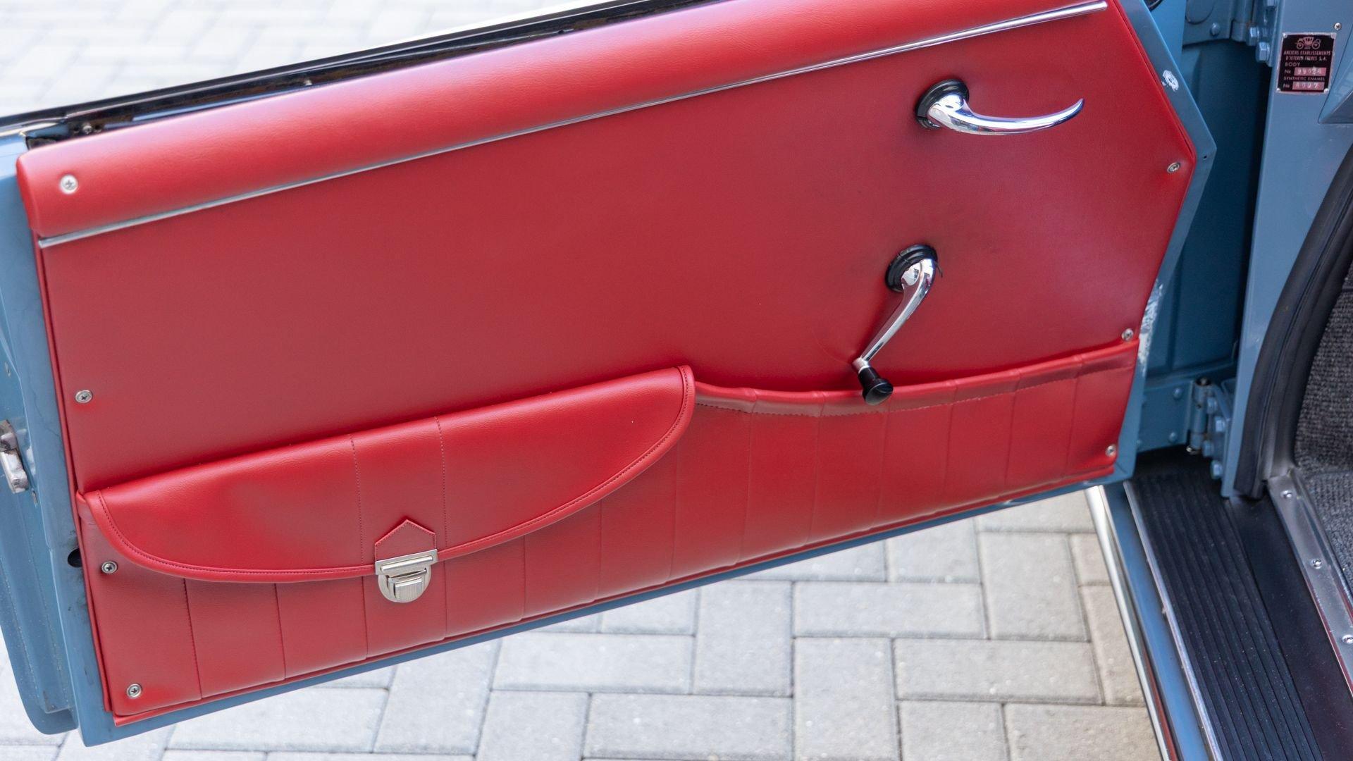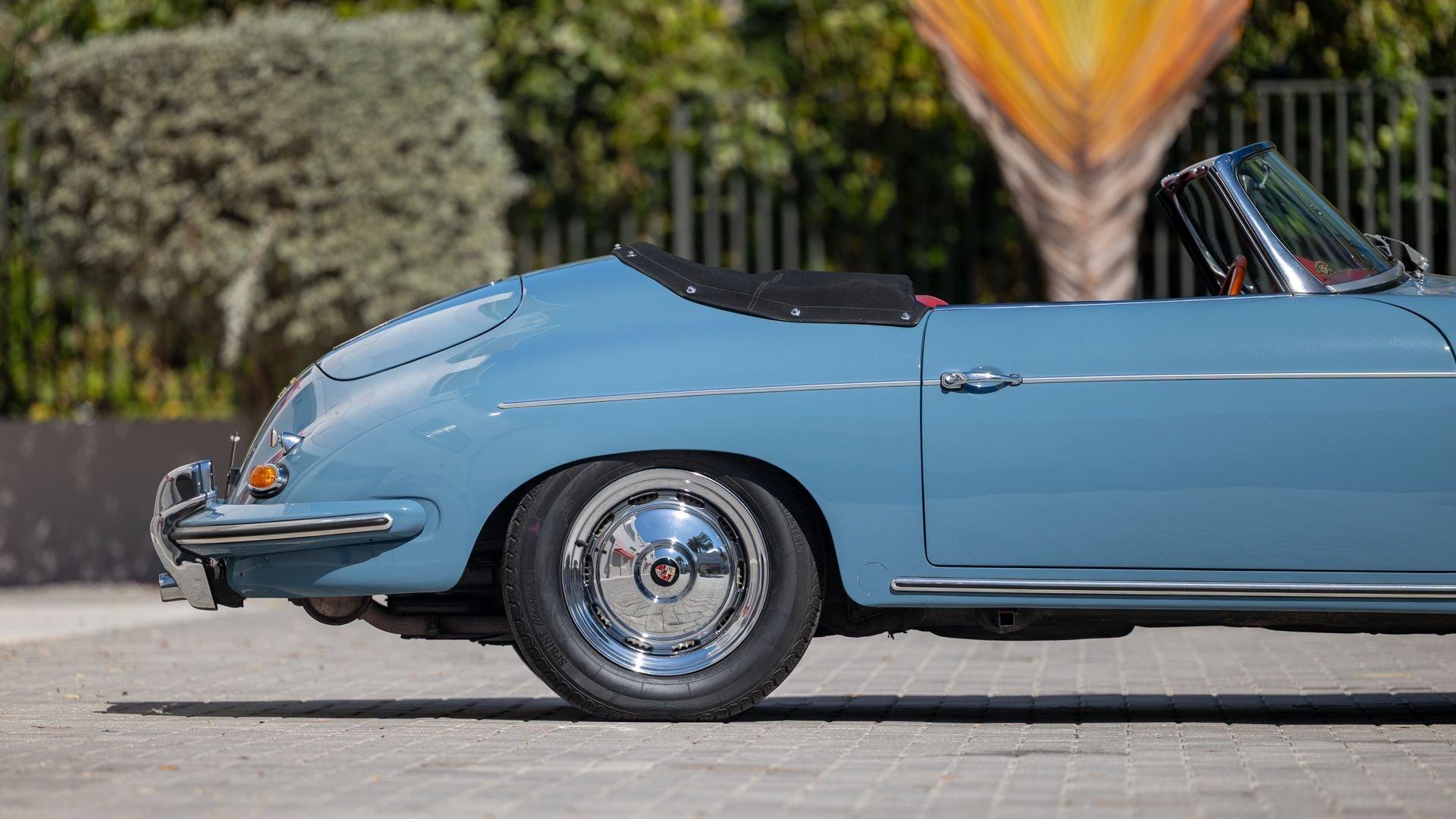 Today, the Roadster continues to wear a red-upholstered interior with charcoal square-weave carpeting as new. Its body-color dashboard is set with three VDO gauges framed by a wood-rimmed, three-spoke Nardi steering wheel. The exterior has been refinished in the refreshing shade of Aetna Blue, a period-correct color offered in 1960 and 1961 and paired with a matching blue soft top. It is fitted with an air-cooled flat-four Type 616/15 from a 1965 model year 1600 C offering a 15-horsepower boost over the original unit along with a four-speed transmission from the same era.