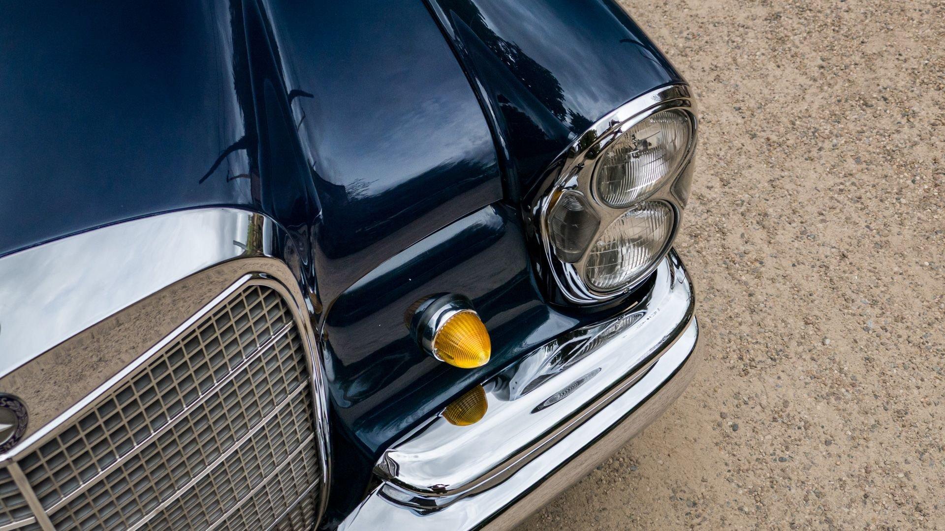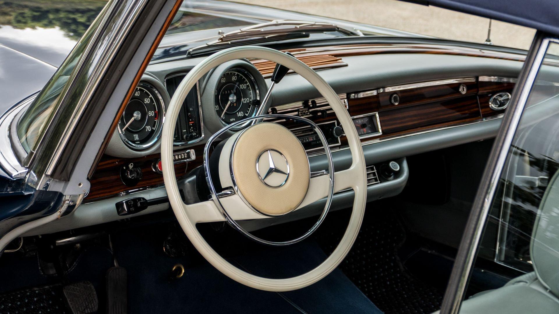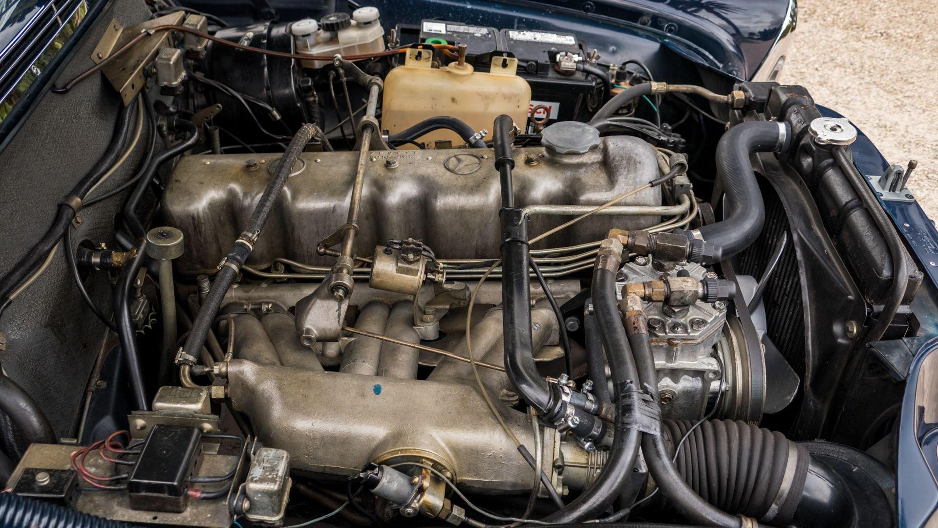 One of just 1,390 280 SE Cabriolets produced, this example benefits from a comprehensive restoration completed under prior ownership. The bodywork was refinished in Dark Blue (904), complemented by a Grey leather interior and a matching dark blue soft top that lowers neatly beneath its fitted boot. The straight-grained walnut dashboard trim was refinished to a deep, lustrous sheen, housing a Blaupunkt cassette stereo, clock, and heating controls. Well equipped, the car features a column-shifted four-speed automatic transmission, Kühlmeister air-conditioning, power windows, and power steering. Completing the restoration are the iconic color-matched hubcaps fitted to 14-inch steel wheels.