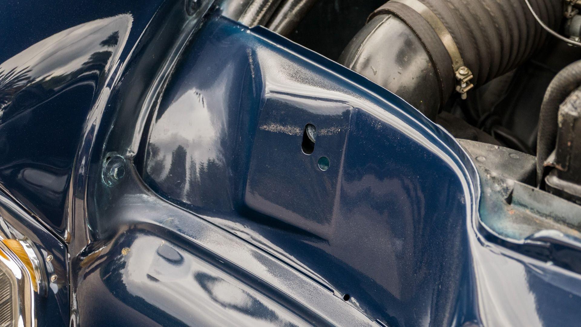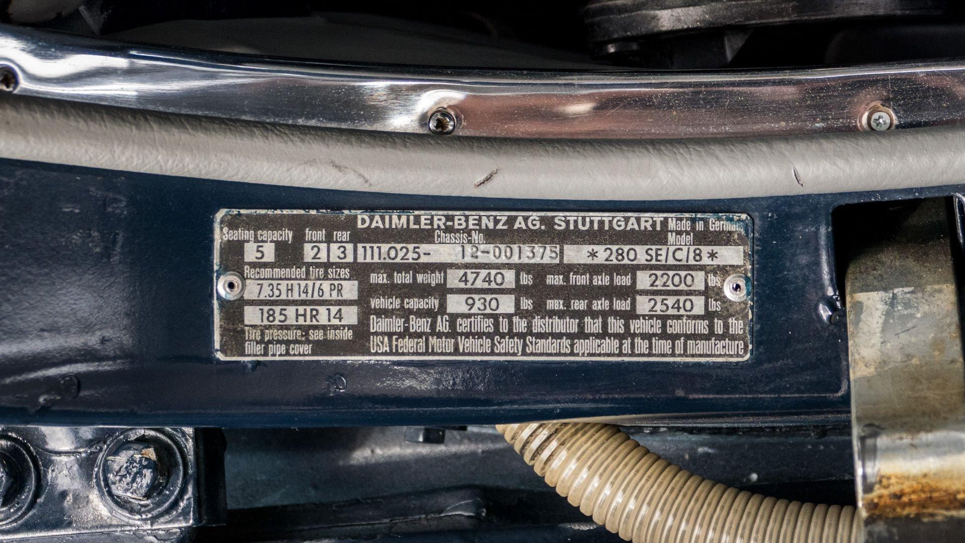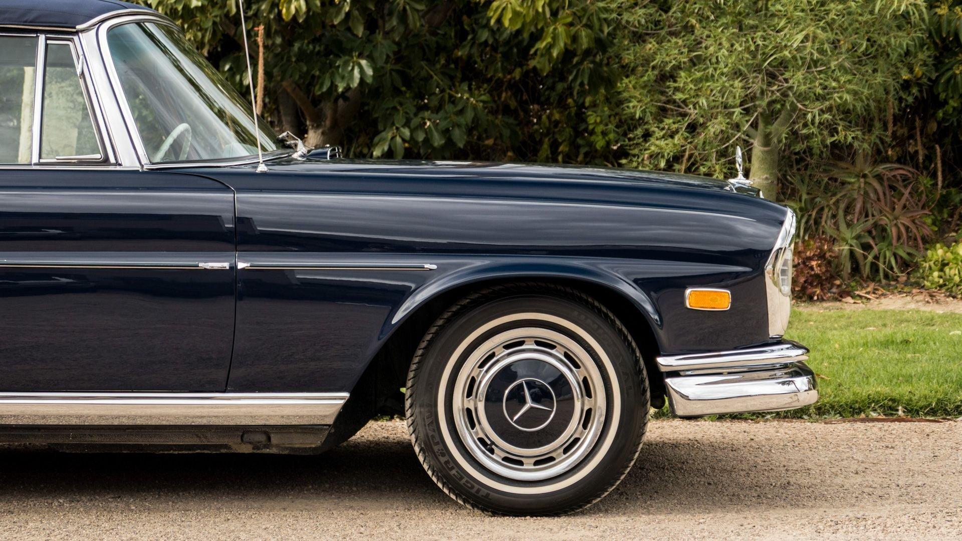 One of just 1,390 280 SE Cabriolets produced, this example benefits from a comprehensive restoration completed under prior ownership. The bodywork was refinished in Dark Blue (904), complemented by a Grey leather interior and a matching dark blue soft top that lowers neatly beneath its fitted boot. The straight-grained walnut dashboard trim was refinished to a deep, lustrous sheen, housing a Blaupunkt cassette stereo, clock, and heating controls. Well equipped, the car features a column-shifted four-speed automatic transmission, Kühlmeister air-conditioning, power windows, and power steering. Completing the restoration are the iconic color-matched hubcaps fitted to 14-inch steel wheels.