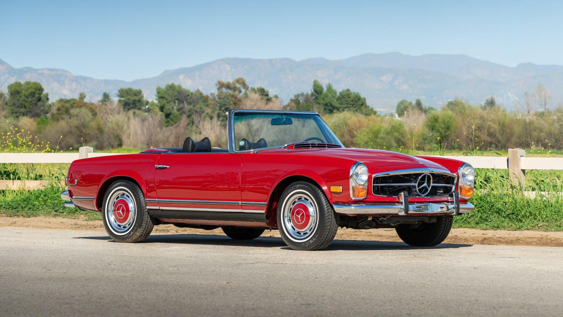 From the penultimate production year of the W113 Pagoda, this fully evolved 280 SL boasts high originality, matching numbers components, and professional restoration and maintenance work performed. According to a copy of the original build sheet Data Karte, this 280 SL finished production at the Mercedes-Benz factory on 16 June 1970, destined for the U.S. market, finished as it appears today in Deep Red (576) over a Black MB Tex interior.