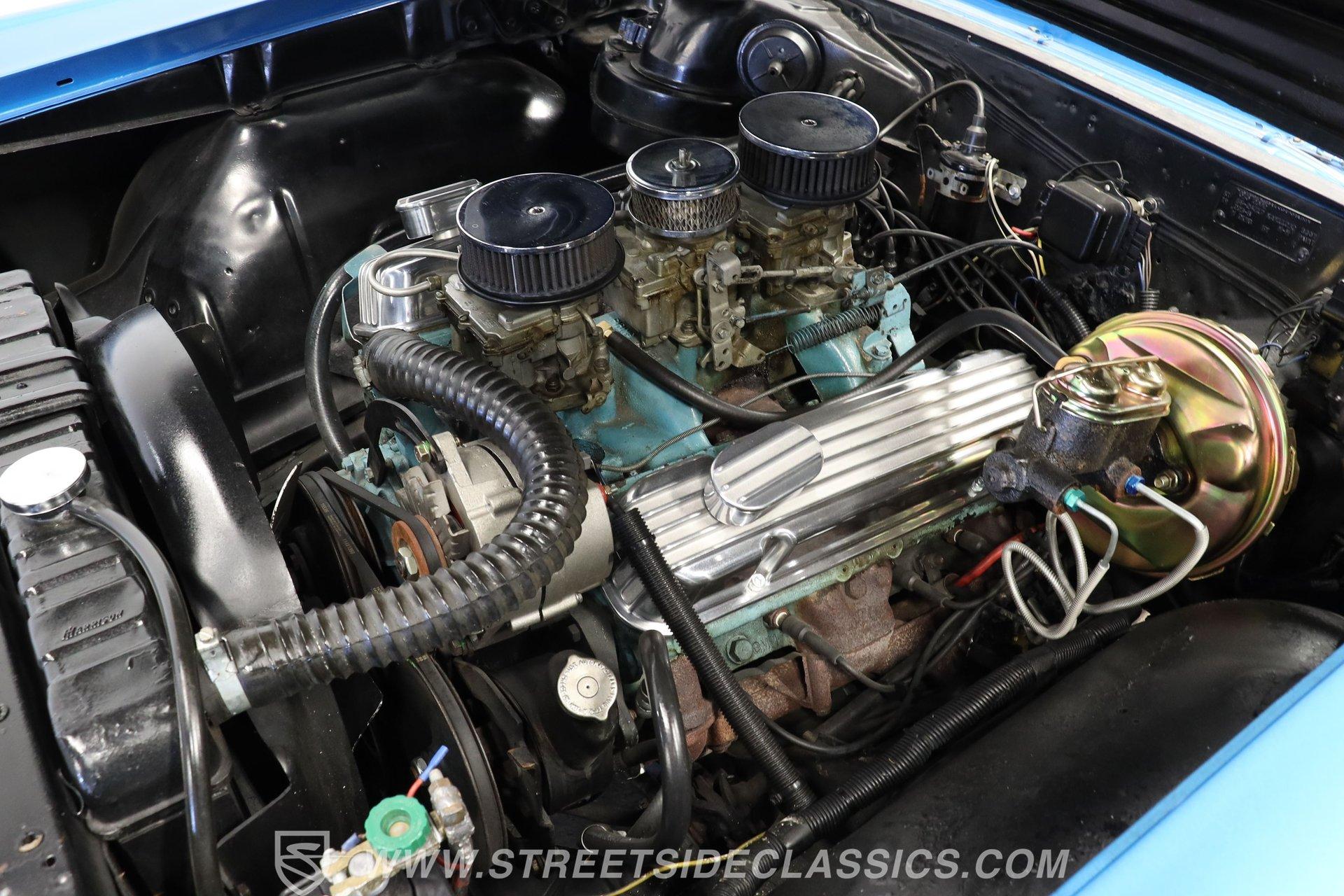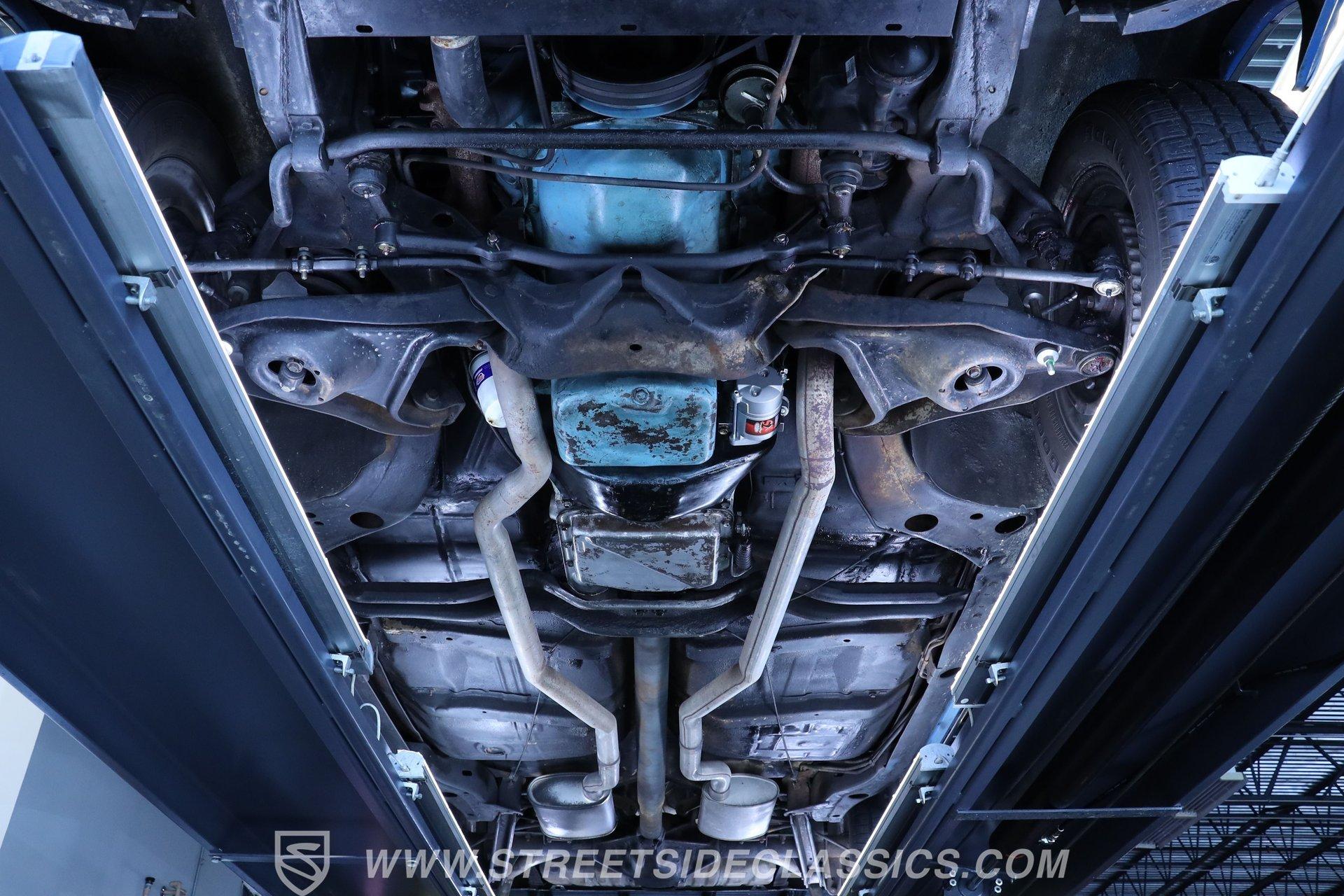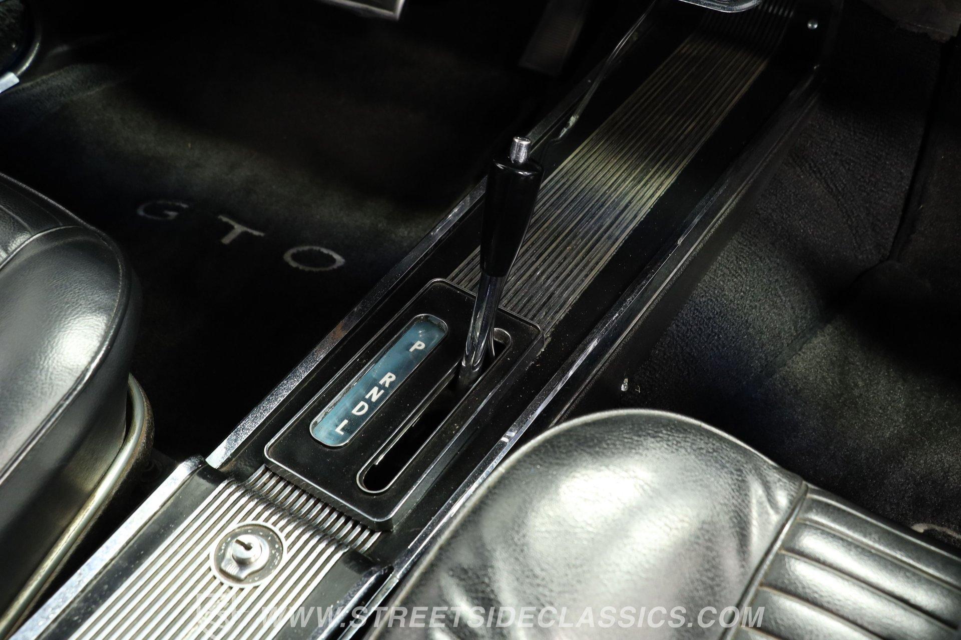 The 400 (YF code) cubic inch V8 dominates the engine compartment, topped with Pontiac's iconic Tri-Power 3 2-barrel carburetors. Finned aluminum valve covers and three chrome open-element air cleaners add visual appeal to the powerful motor. A dual exhaust system with performance mufflers produces the signature GTO sound. Power drum brakes on all four corners provide stopping power.