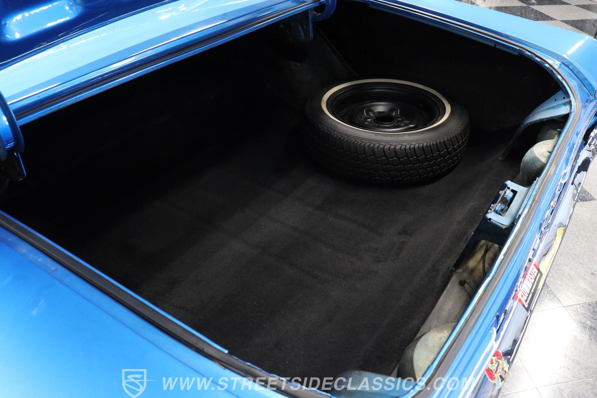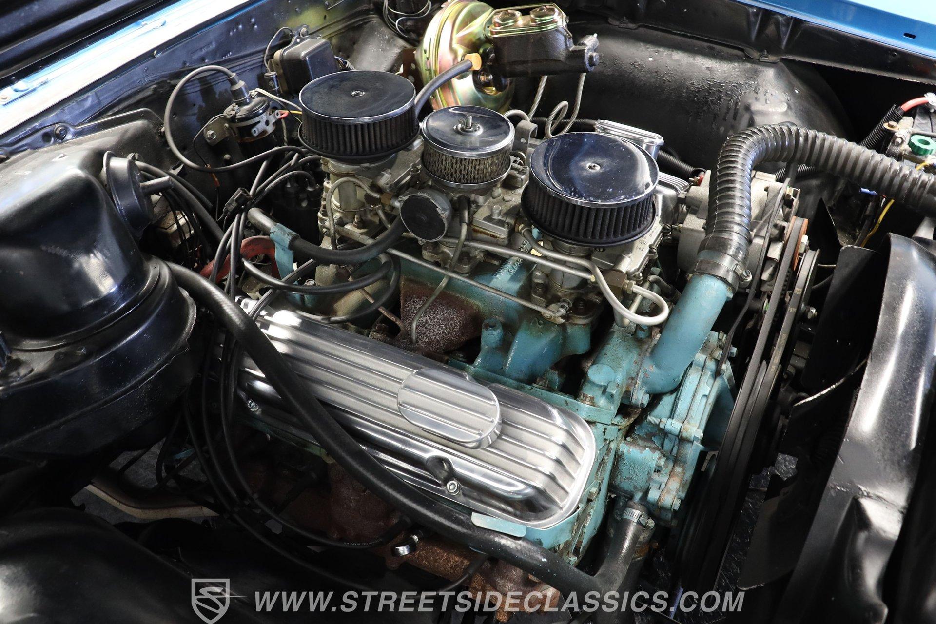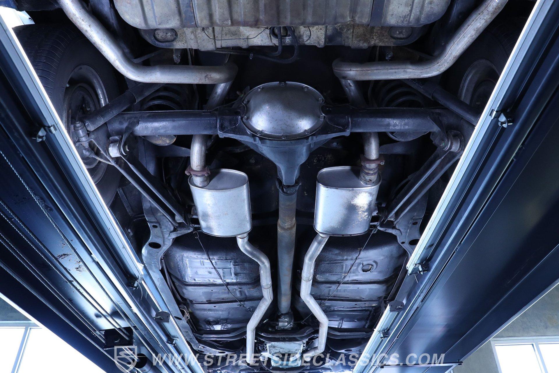 The 400 (YF code) cubic inch V8 dominates the engine compartment, topped with Pontiac's iconic Tri-Power 3 2-barrel carburetors. Finned aluminum valve covers and three chrome open-element air cleaners add visual appeal to the powerful motor. A dual exhaust system with performance mufflers produces the signature GTO sound. Power drum brakes on all four corners provide stopping power.