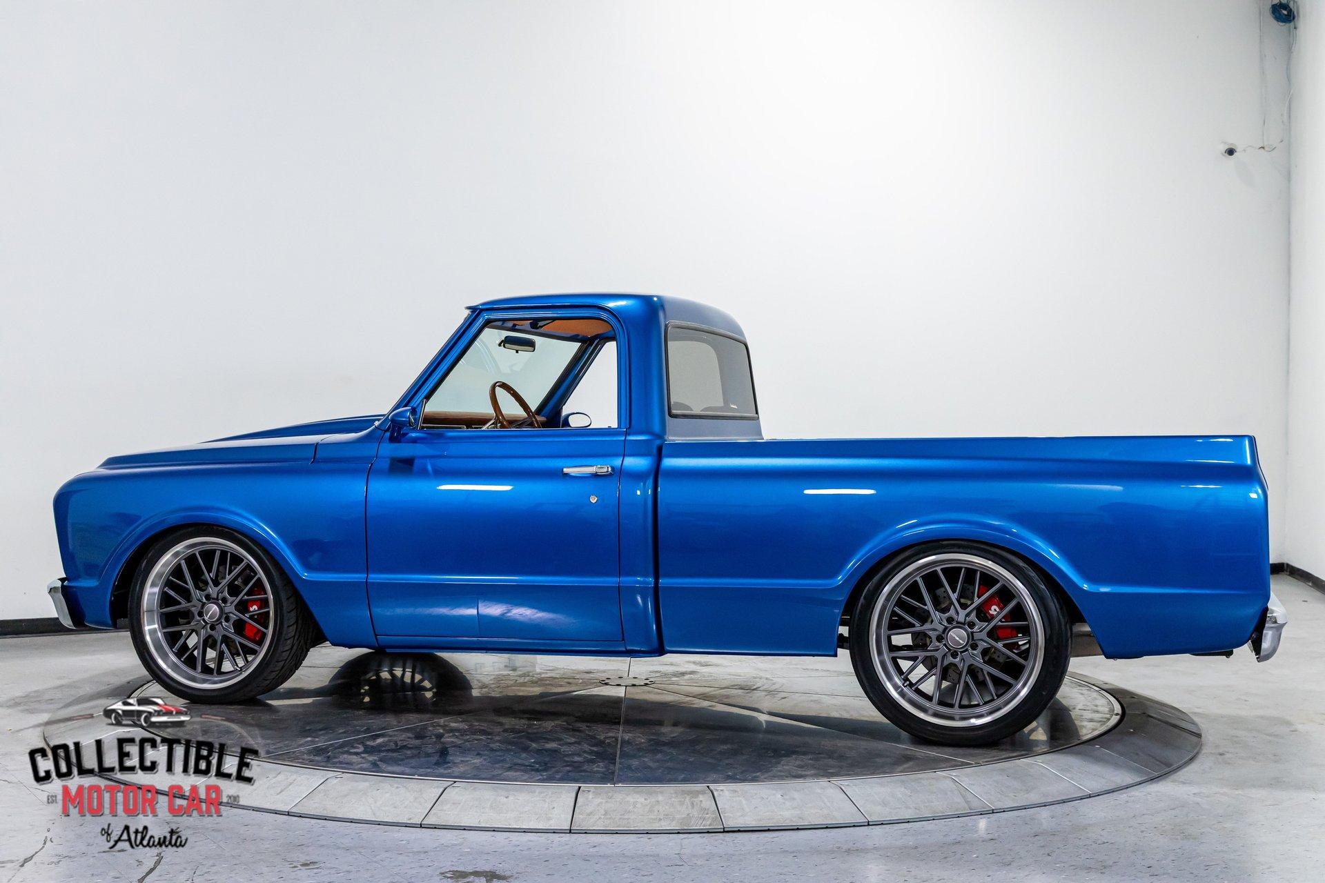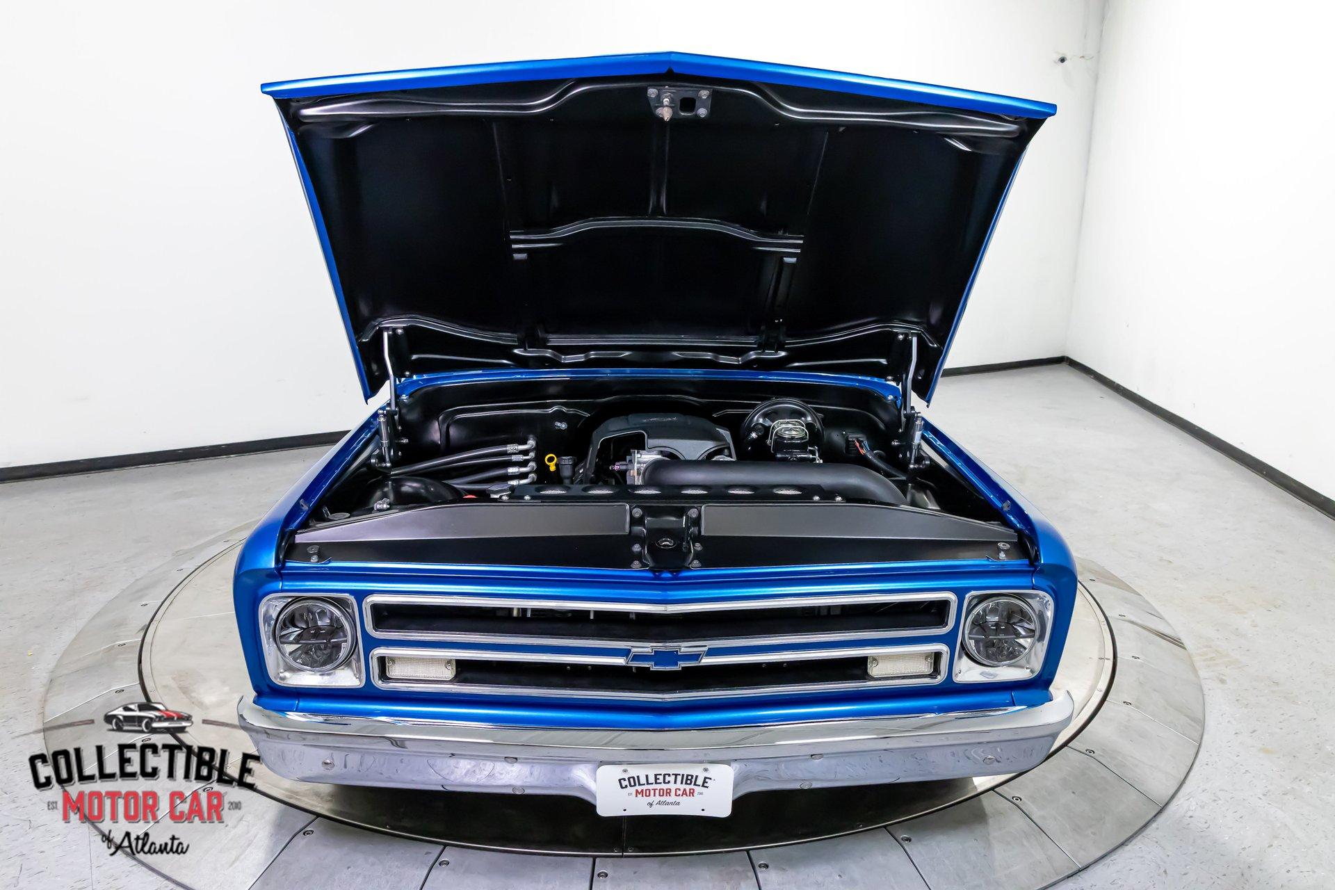 This '67 C10 is a frame-off restored street truck built the right way-modern fuel-injected power, overdrive cruising, real stopping power, and a clean custom look that's equal parts classic and aggressive. The Blue Metallic paint pops under the lights, the stance is dead-on, and the details (oak bed floor, modern interior, tidy engine bay) show it wasn't thrown together.