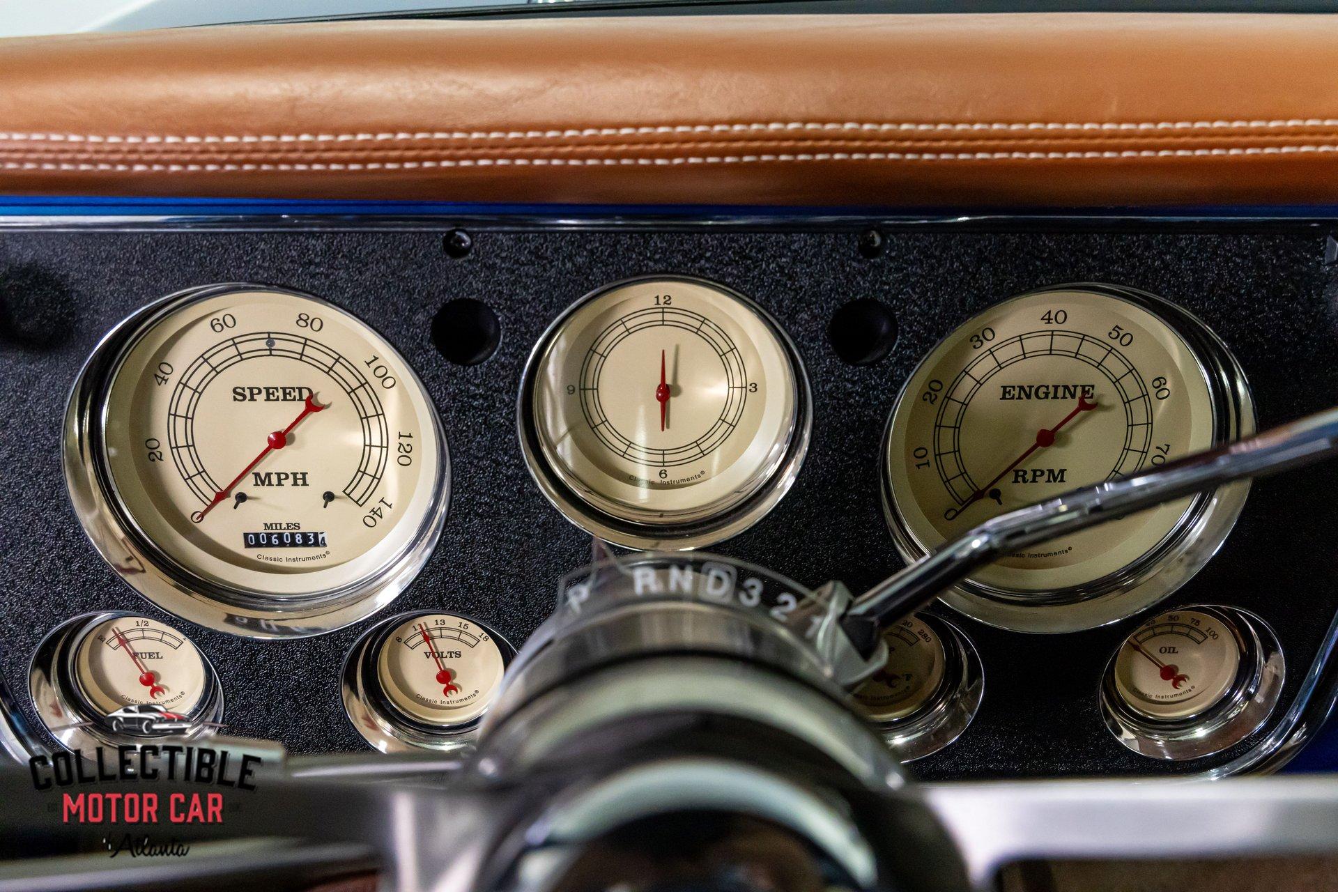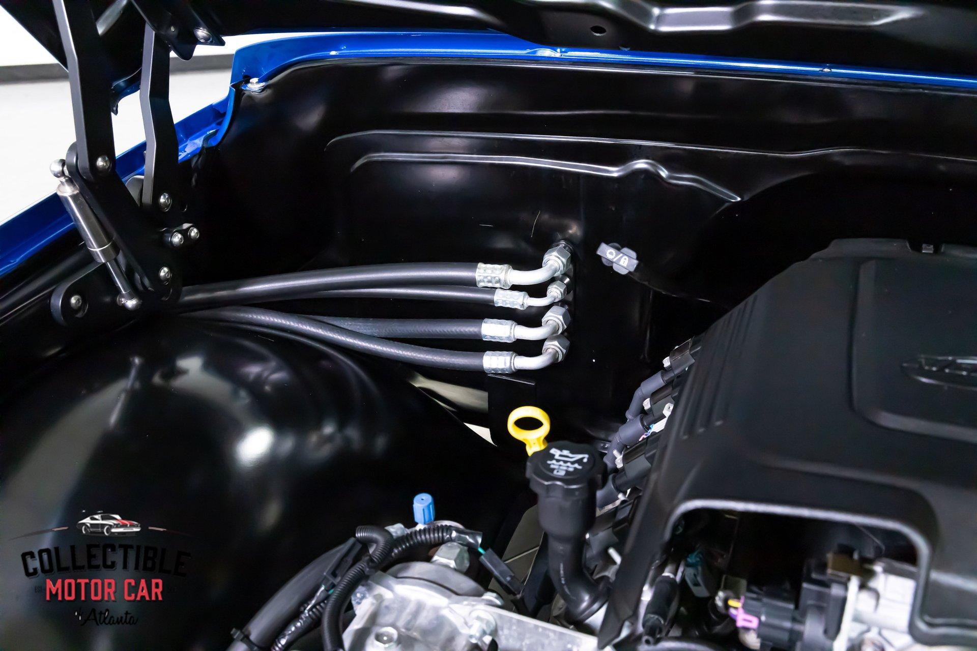 Inside, it's a serious upgrade from stock-custom saddle bucket seats, a clean dash layout, and modern convenience features that make it comfortable and usable. The touchscreen audio and updated gauges give it the right blend of classic style and modern function.