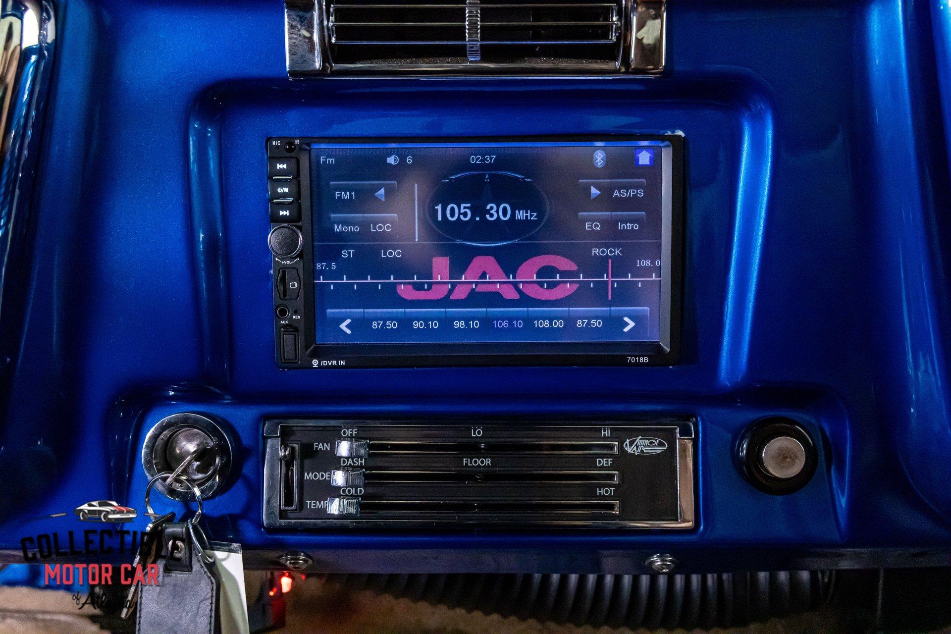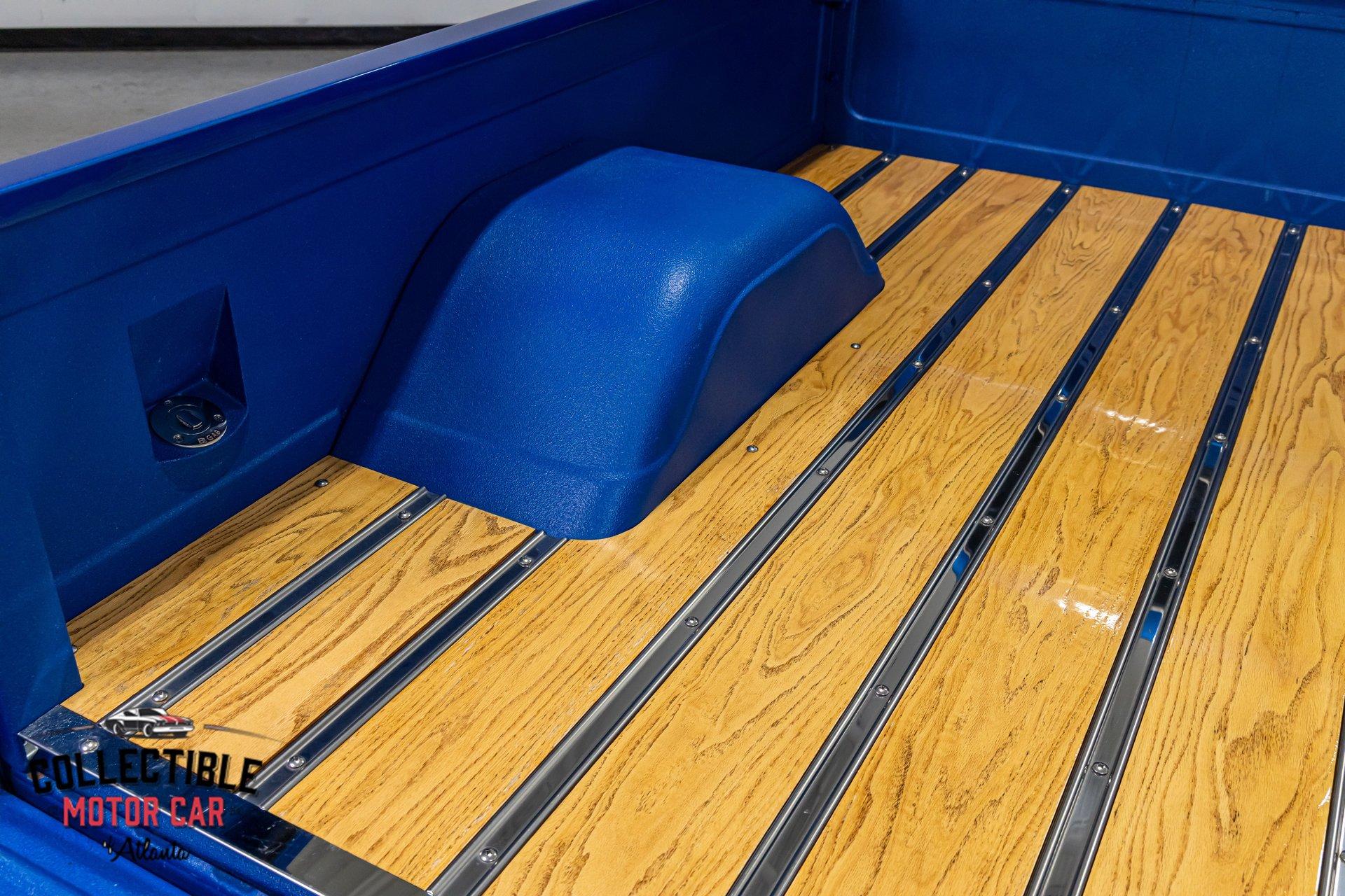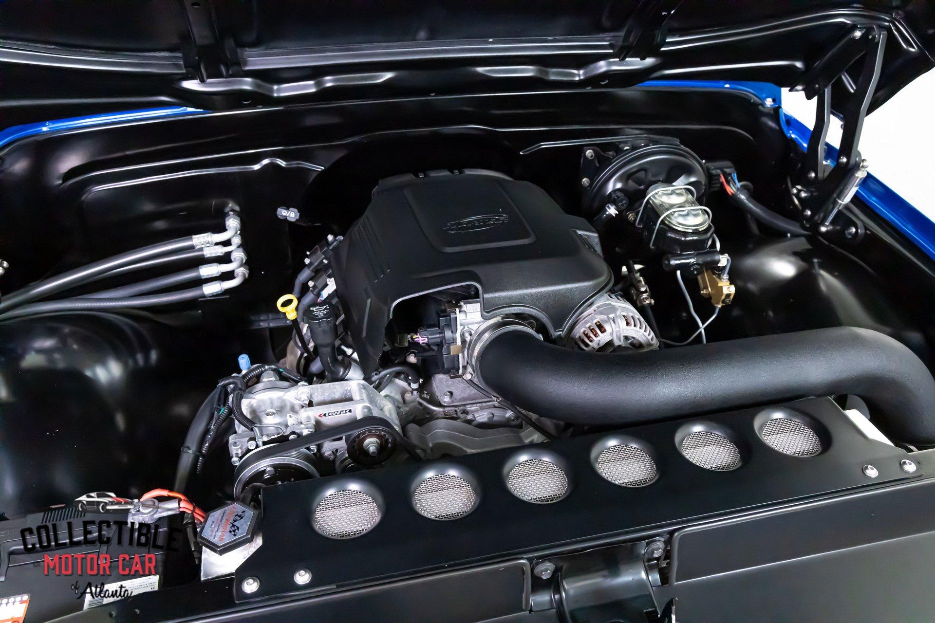 The truck wears a slick Blue Metallic finish with a smooth, modernized appearance that still keeps the timeless C10 lines. Up front, the cowl induction hood adds the perfect muscle-truck attitude, and the lighting has been upgraded for a crisp, contemporary look.