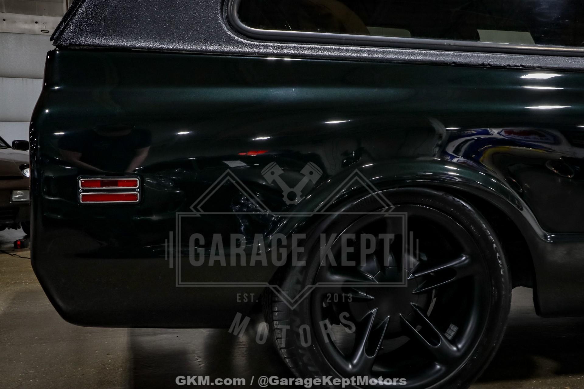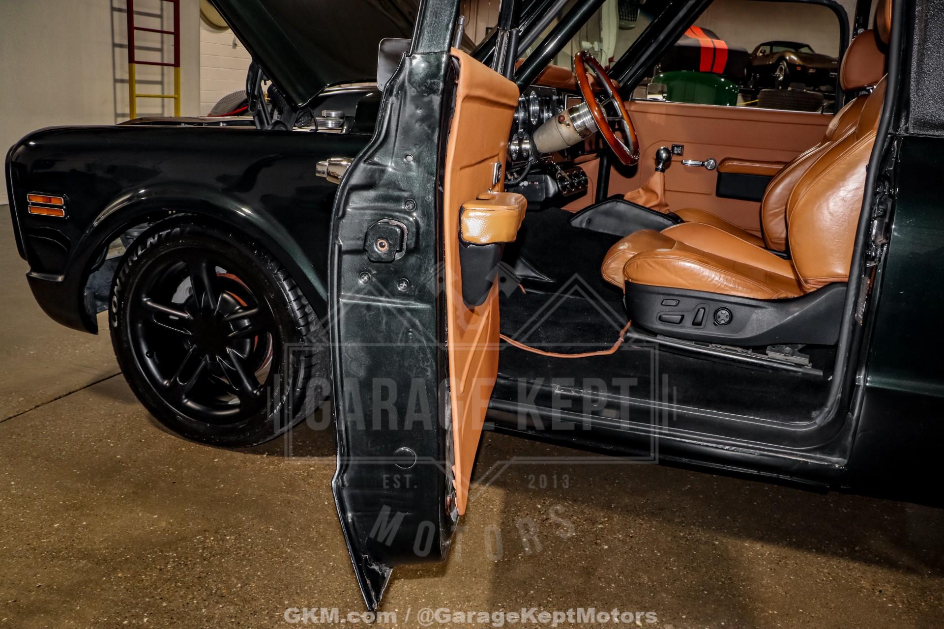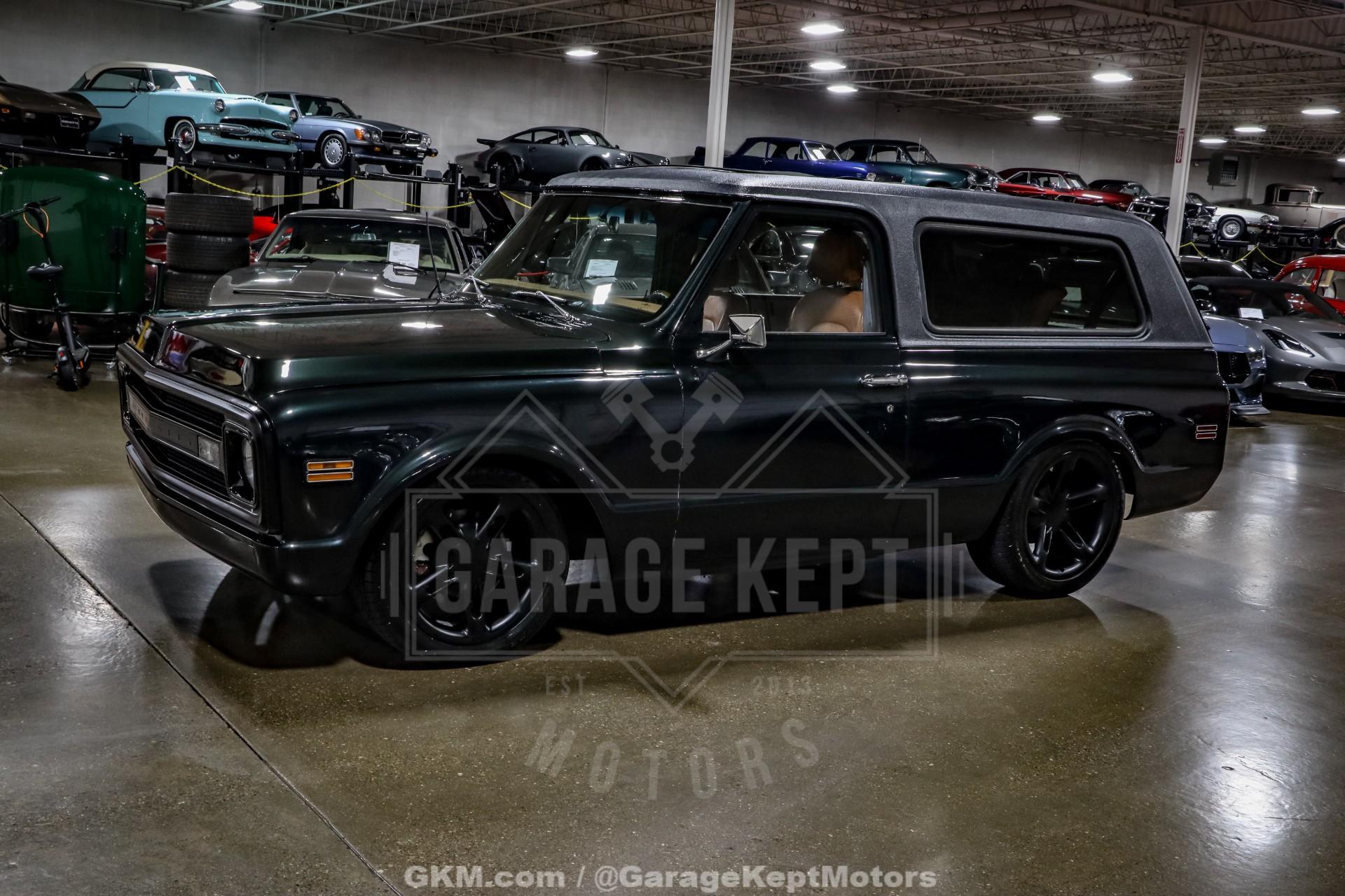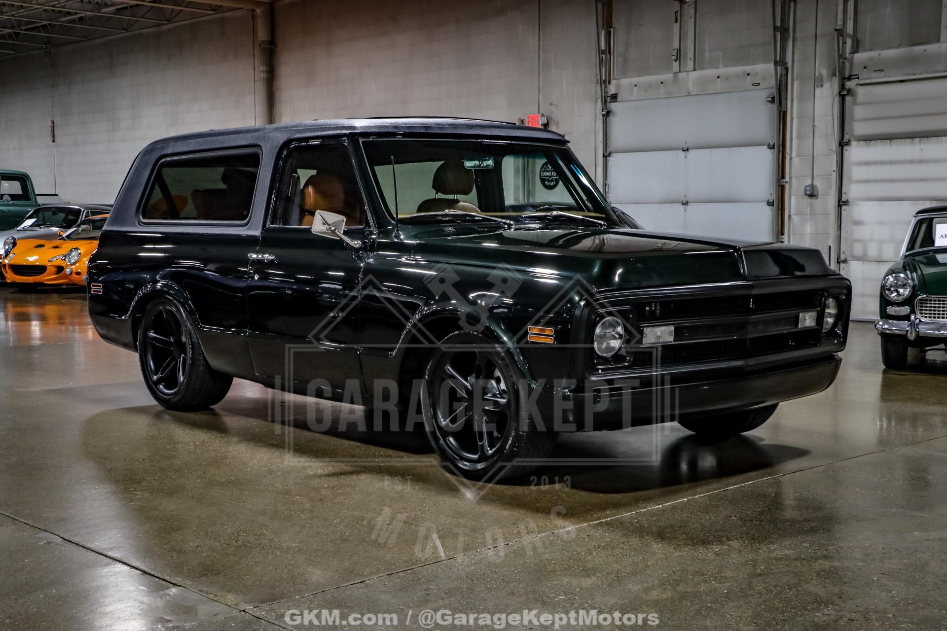 1970 Chevrolet Blazer- Custom RestoMod SUV- Dark Green Custom Paint- Tan Leather Interior - 2nd Gen SSR Drivetrain- 6.0L LS2 V8 installed in 2023- SSR 6 Speed Manual Gearbox- Lowered Suspension with QA1 Rear Coilovers- 4 Wheel Disc Brakes- Staggerd and Powder Coated SSR Wheels- Legacy Ragtop Sunroof- Heated and Ventilated Bucket Seats- Vintage Air Conditioning- Power Windows and Dakota Digital Gauges- Alpine Touchscreen Stereo- 2,089 Miles Recorded Since Restoration- Absolute Blast to Drive!The Chevrolet K5 Blazer has long stood as one of the most iconic early American SUVs, and this 1970 example has been transformed into a striking custom RestoMod that seamlessly blends vintage character with modern performance. Finished in deep dark green custom paint, it retains the unmistakable square-body styling of the original while sitting with a far more aggressive and refined stance thanks to a thoughtfully upgraded suspension setup.Power comes from a second-generation Chevrolet SSR drivetrain, featuring a 6.0L LS2 V8 installed in 2023. Paired with an SSR-sourced 6-speed manual gearbox, this Blazer delivers modern horsepower with the engaging feel of a true driver's SUV. The lowered suspension with QA1 rear coilovers, combined with four-wheel disc brakes, dramatically improves handling and stopping power over stock configuration.The exterior is further enhanced by staggered, powder-coated SSR wheels that complement the dark green finish and give the truck a confident, road-focused presence. A Legacy ragtop sunroof adds open-air versatility, offering a convertible-like driving experience while preserving the classic removable-top Blazer spirit. The result is a build that feels both nostalgic and contemporary.Inside, the cabin has been fully reimagined with a tan leather interior featuring heated and ventilated bucket seats for modern comfort. Amenities such as Vintage Air conditioning, power windows, Dakota Digital gauges, and an Alpine touchscreen stereo provide everyday usability while maintaining a clean, cohesive design.With just 2,089 miles recorded since completion of the restoration, this custom 1970 Blazer represents a fresh and carefully executed build. It combines the timeless styling of an early K5 with the reliability, power, and comfort of a modern drivetrain, creating a unique SUV equally suited for shows, cruising, or spirited weekend drives.