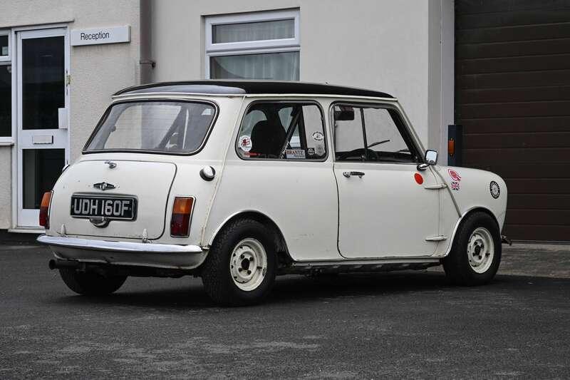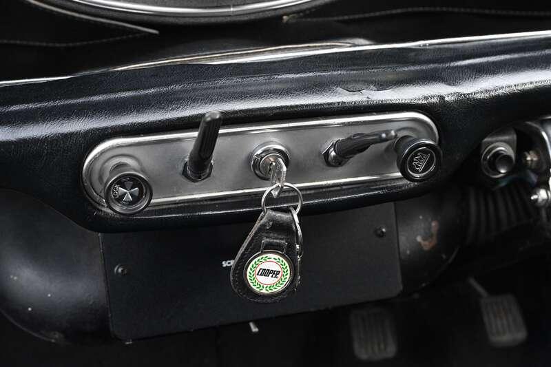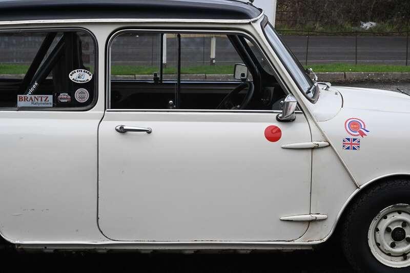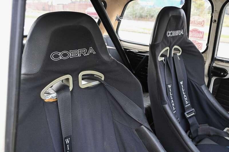 - Specification includes Cooper S front and rear brakes, heavy-duty shock absorbers, replaced steering rack, LCB exhaust, oil cooler, alternator conversion, upgraded radiator, rewired electrics for trip meter, electric washers and auxiliary power socket, plus Safety Devices roll-cage, Cobra seats, Willans harnesses, renewed brake pipes, re-routed battery leads and a battery cut-out