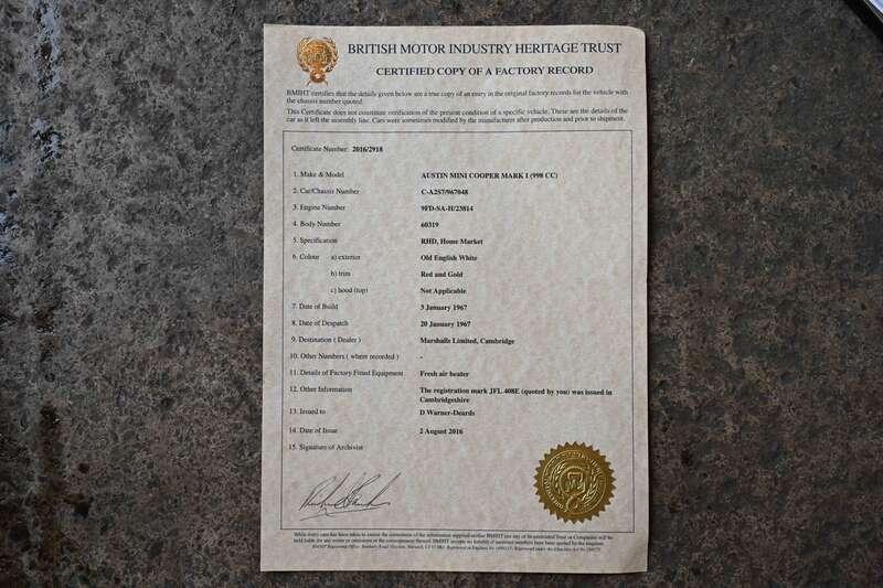 - Competition-focused specification including Cooper S front disc brakes, adjustable suspension with Hi-Lo units and homologated components