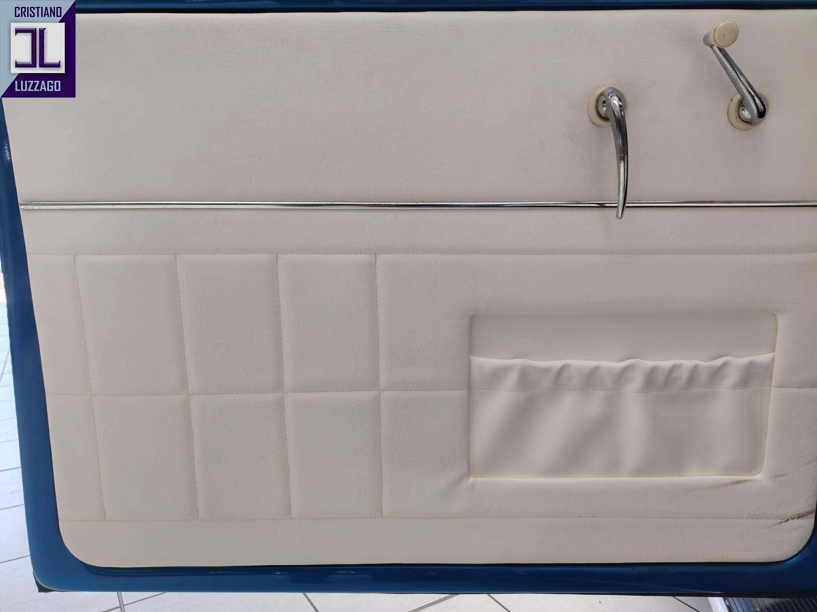The metallic blue exterior and white interior are custom-selected colors, not original Volkswagen specifications, chosen to create a unique and elegant combination.
