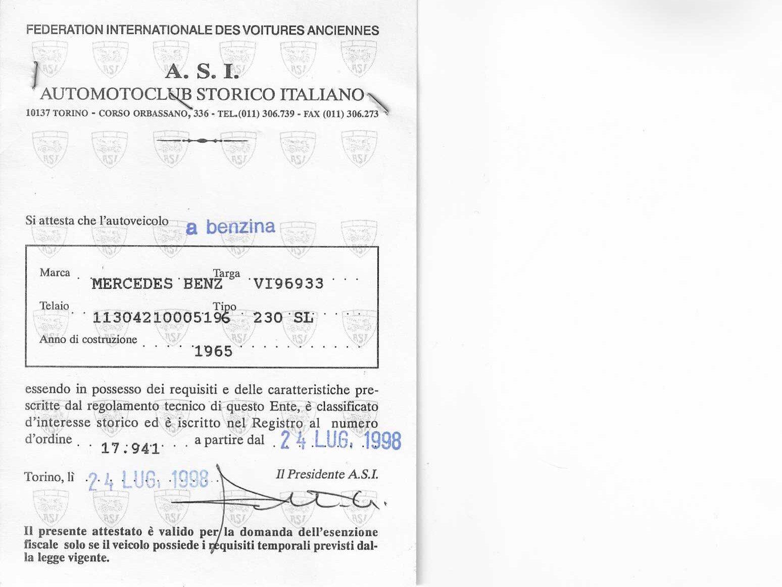 Third owner (1998): a renowned local collector, who immediately registered the car with ASI and began a conservative restoration of the paintwork and interior, carefully preserving originality (fully documented with photographs).