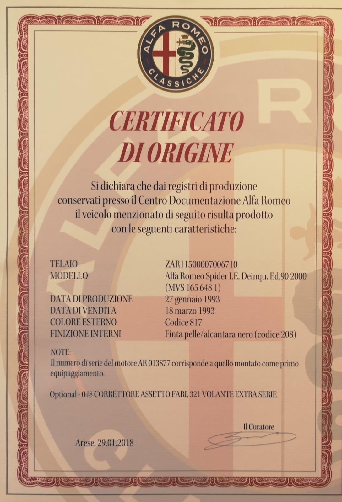 In 2018, it obtained the Alfa Romeo Certificate of Origin in which the correspondence of the original chassis and engine numbers is declared.
