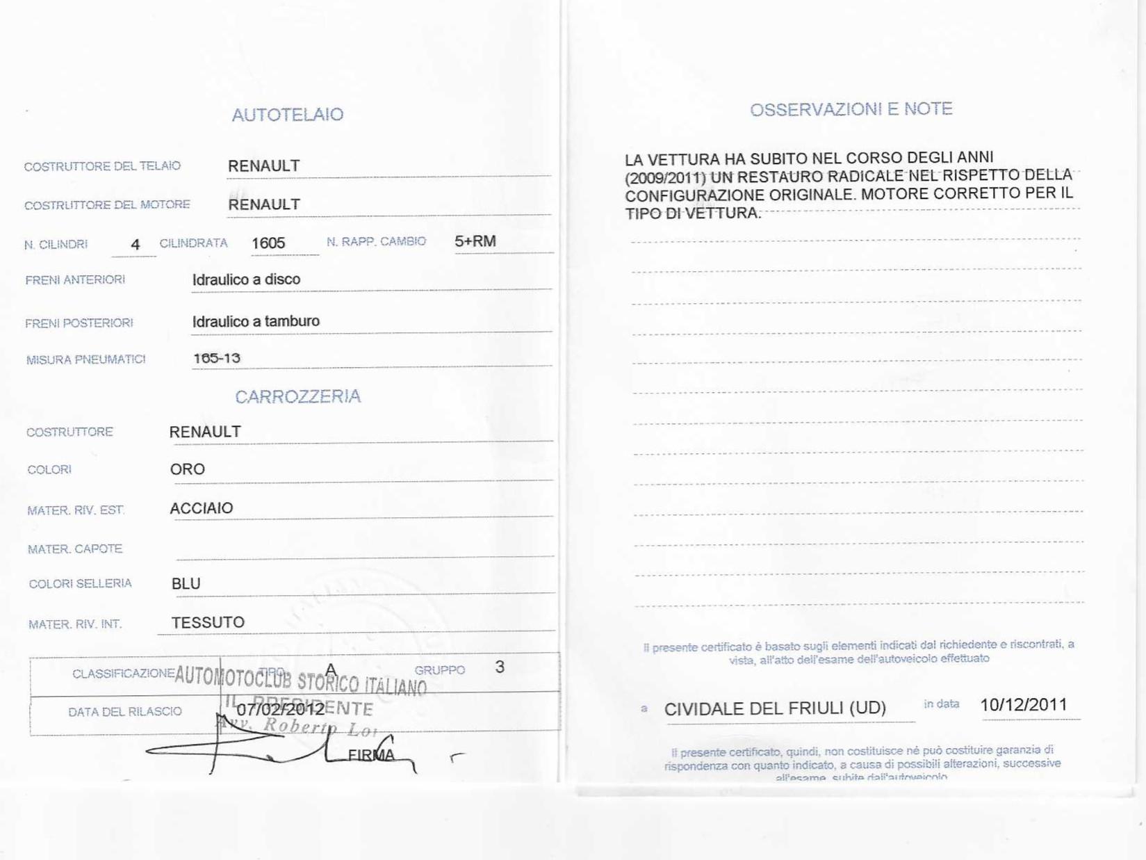 Upon completion in 2011, the car received the prestigious ASI “Targa Oro” certification, reserved for the most historically accurate vehicles in Italy.
