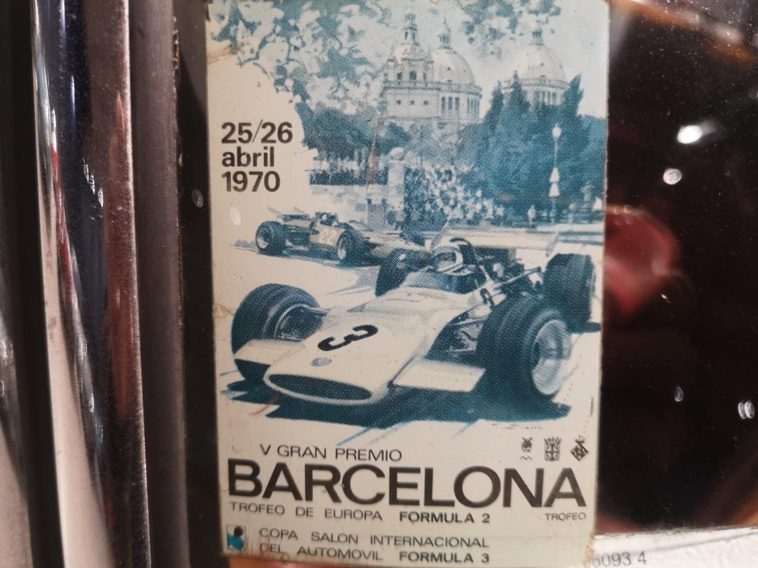 A windshield sticker indicates a probable journey to Barcelona in April 1970 for the 5th Formula 2 Grand Prix, evoking images of this elegant Cabriolet cruising along the French Riviera under the spring sun.
