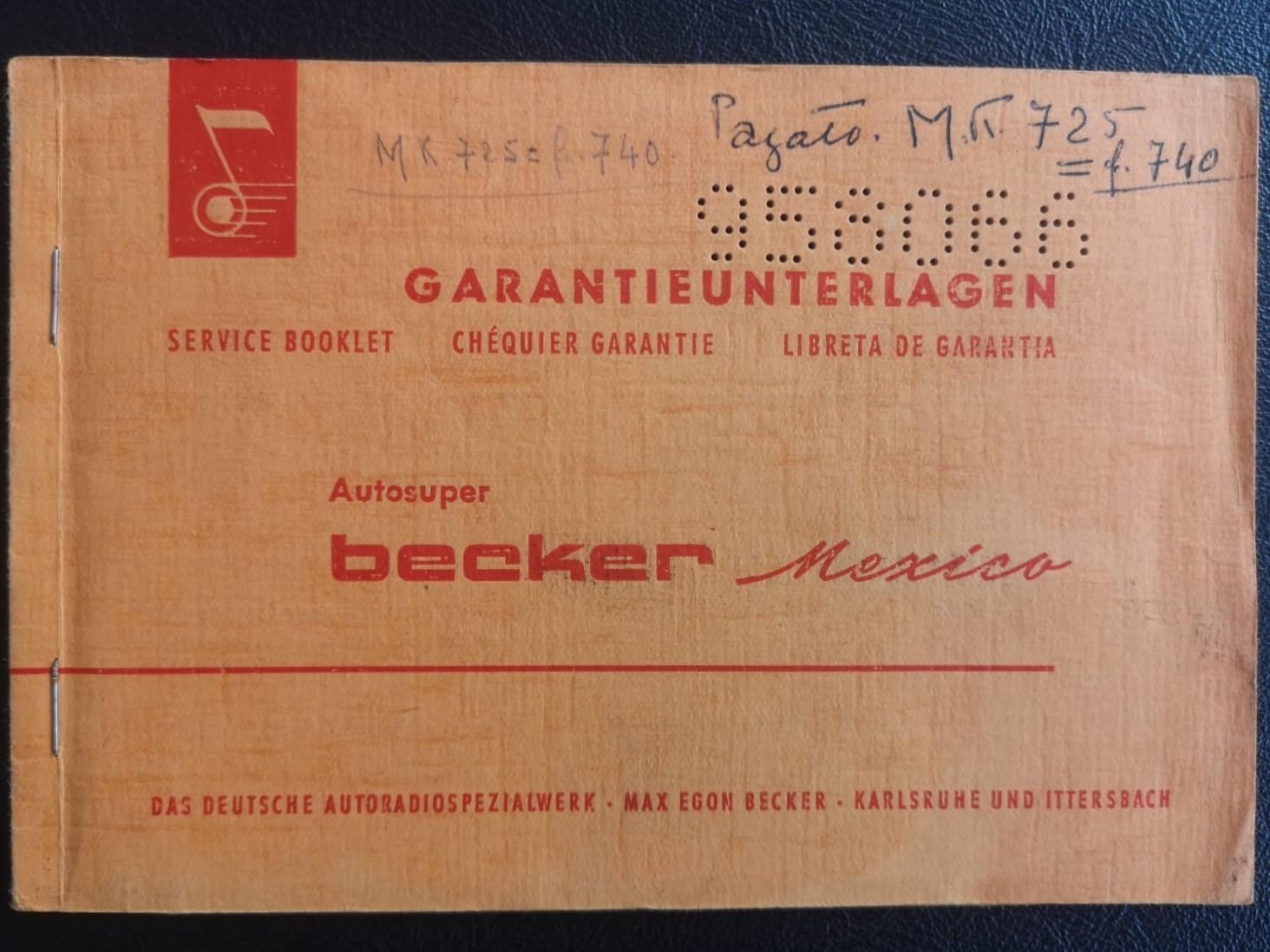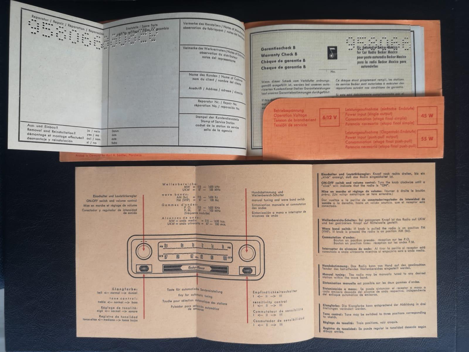 It comes with all original user manuals, service books, and parts catalogues. The original Becker Mexico radio remains installed, complete with its user manual and factory warranty.