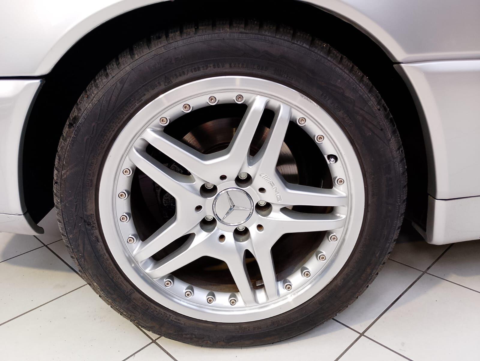 Currently equipped with aftermarket alloy wheels, though the original rims with winter tires are also included.