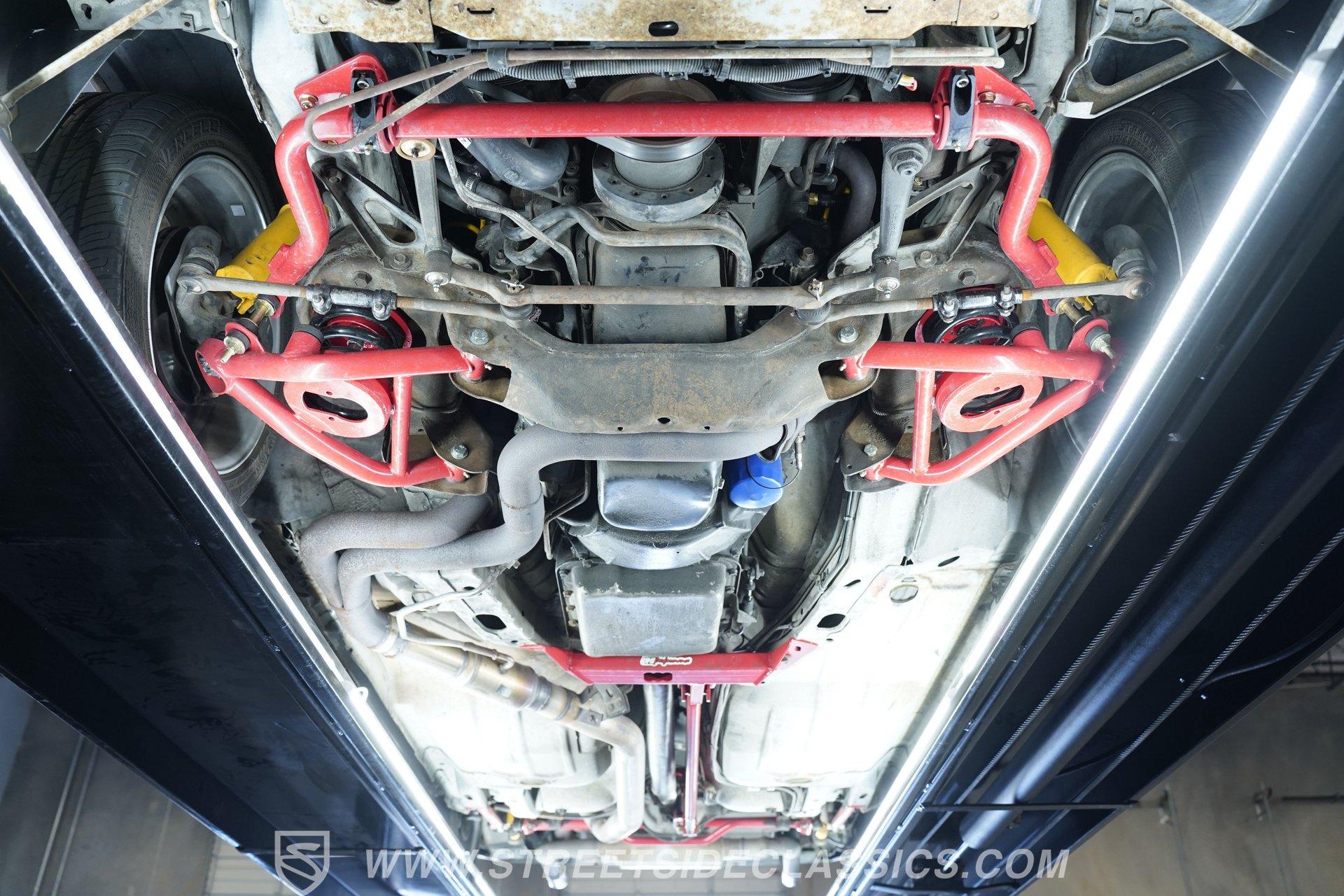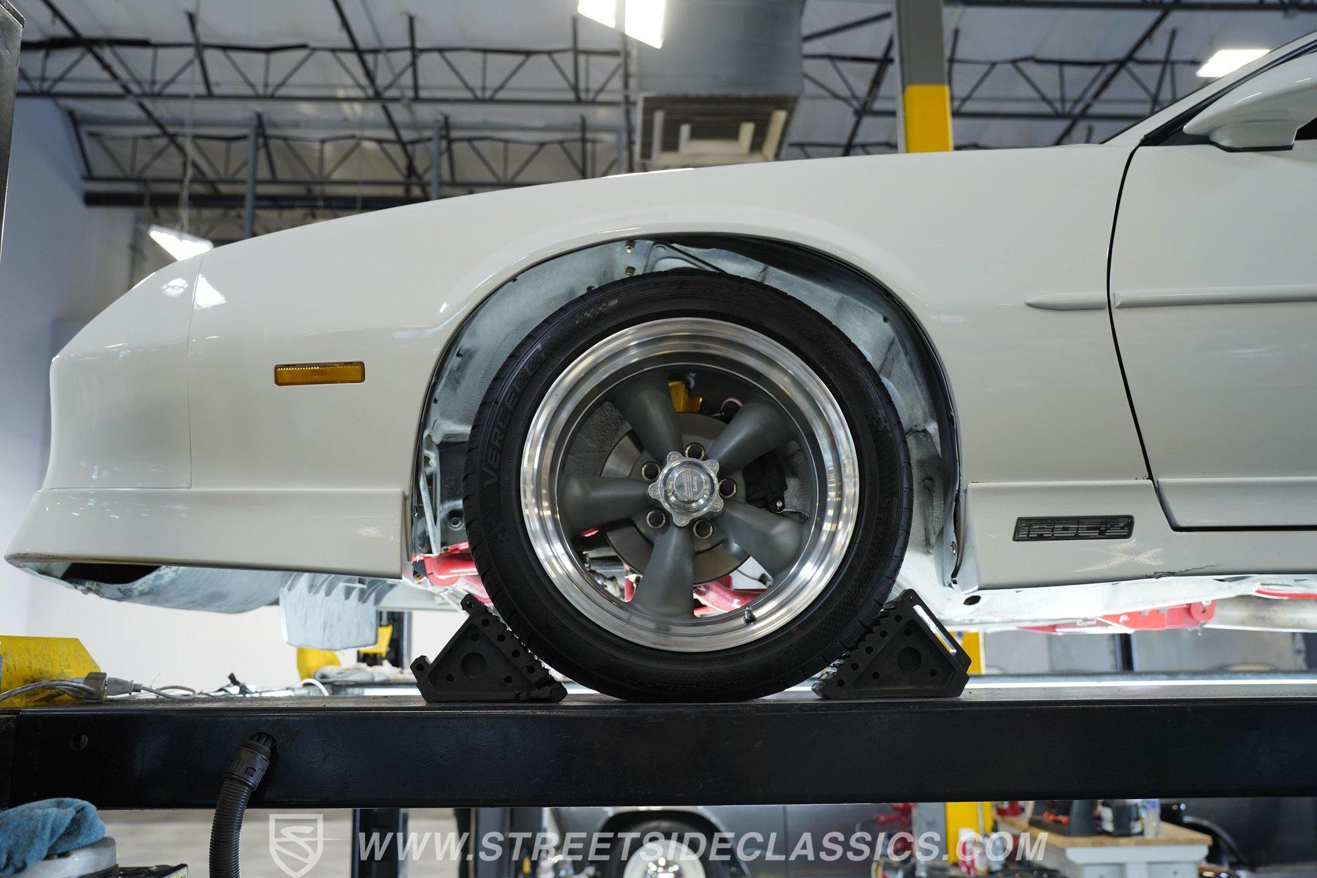 Under the hood, this Camaro is powered by a robust 5.7-liter TPI V8 engine, paired with a 4-speed automatic transmission for effortless cruising. The engine features tuned port electronic fuel injection, aluminum radiator with dual cooling fans, and performance upgrades such as Jeggs spark plug wires. A full UMI ground control suspension, including tubular uppers and lowers, upgraded sway bars, and Koni adjustable shocks, gives this IROC-Z a solid, responsive feel. Four-wheel power disc brakes and power steering ensure confident handling, while air conditioning keeps you cool on summer drives.