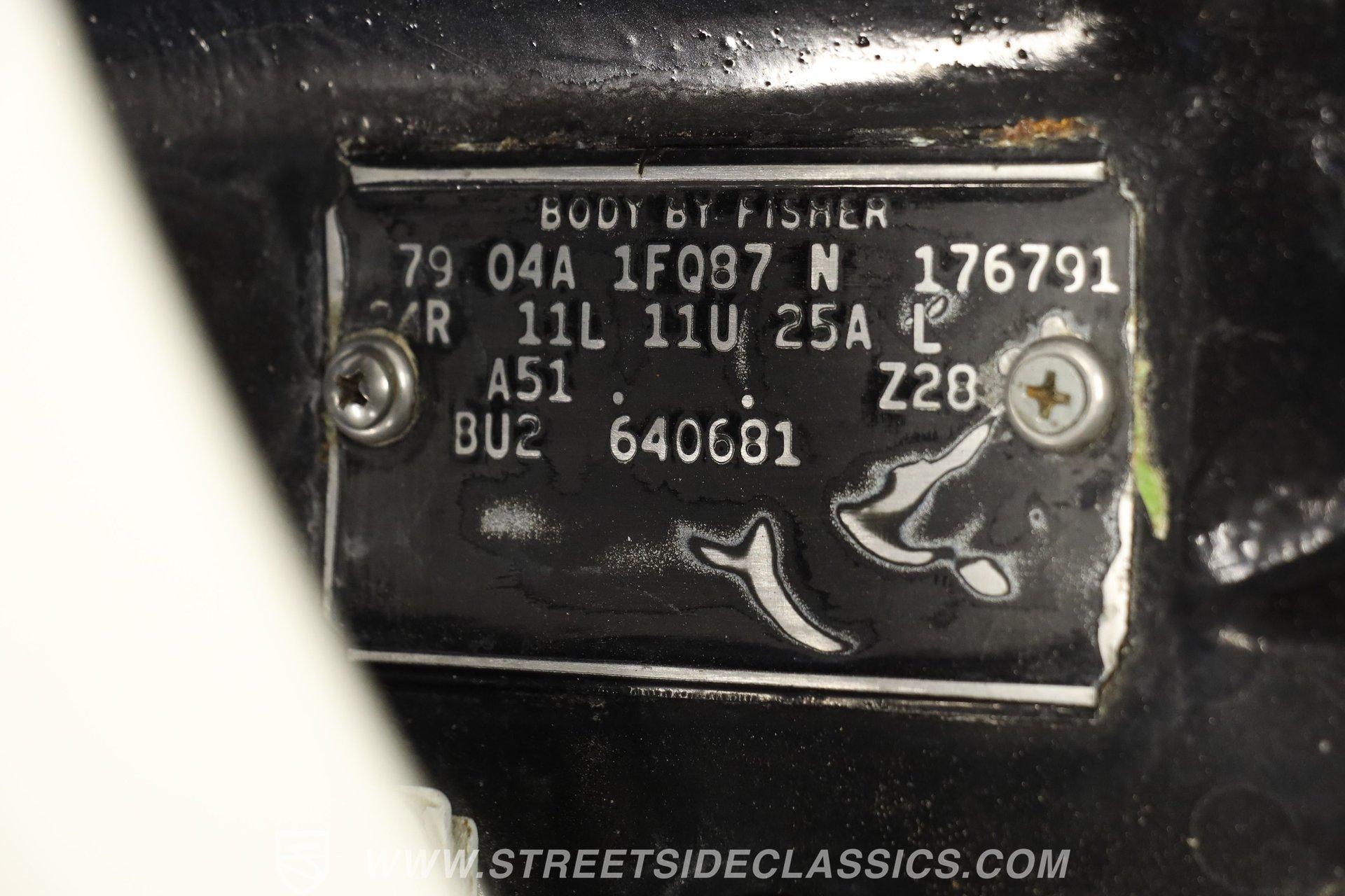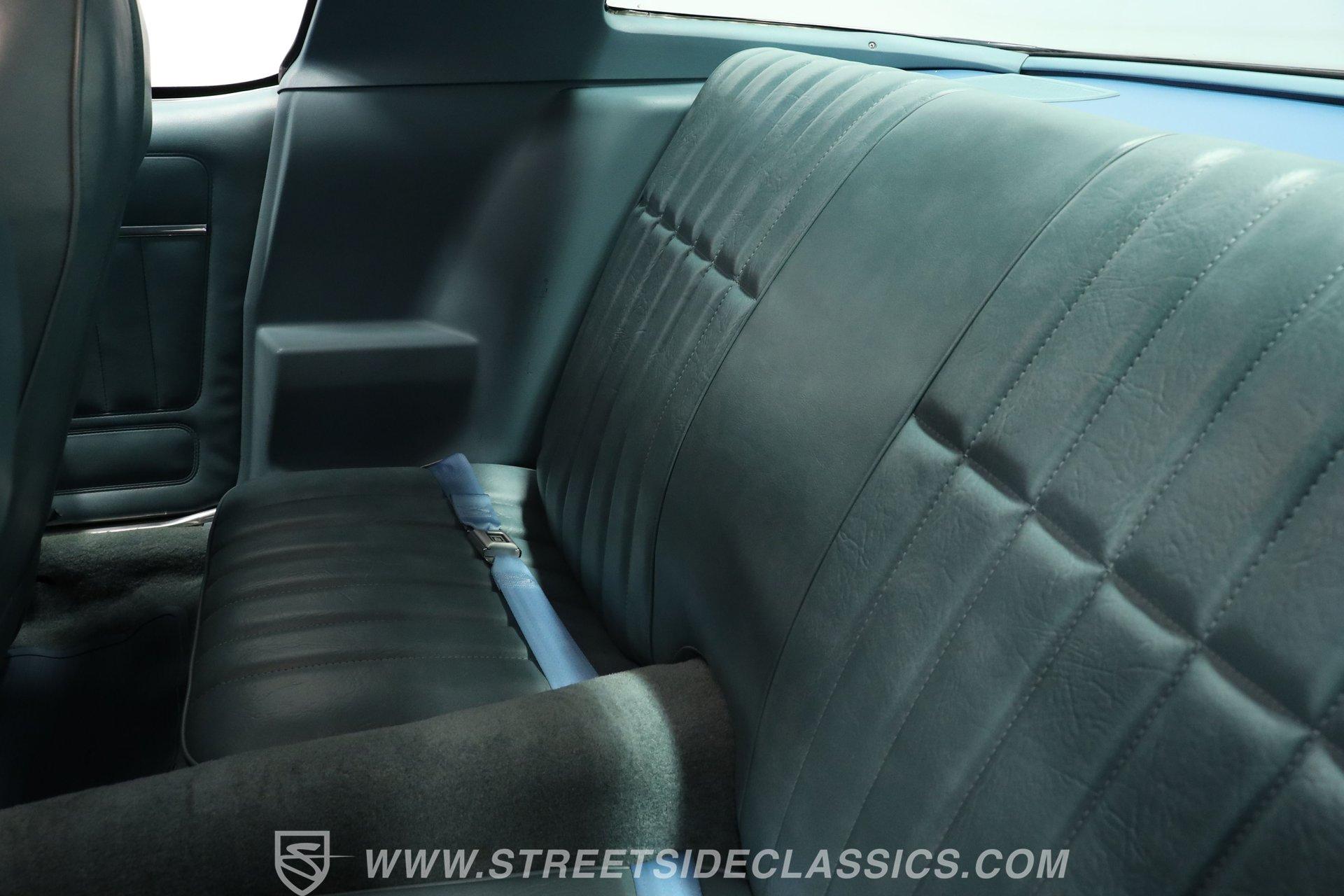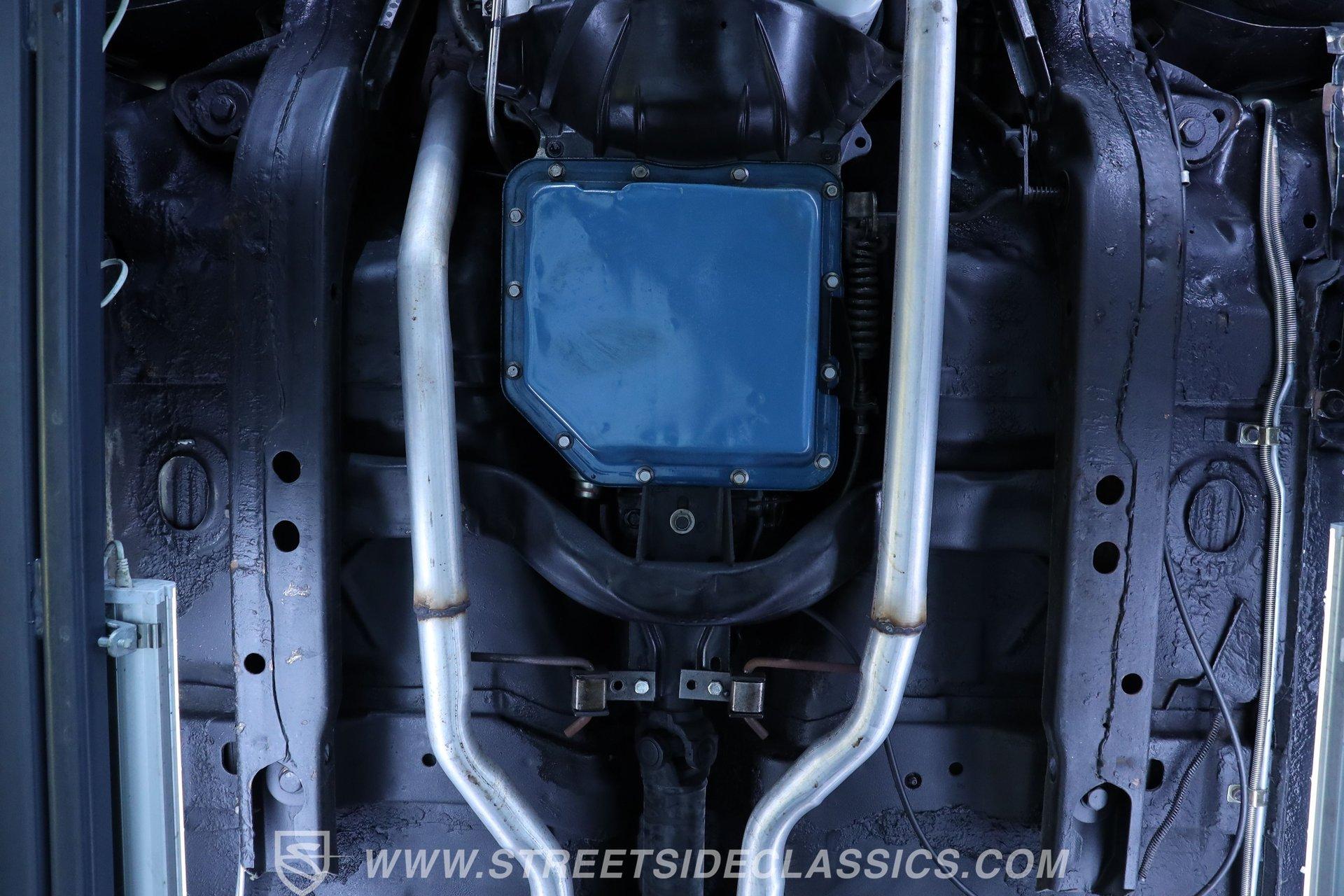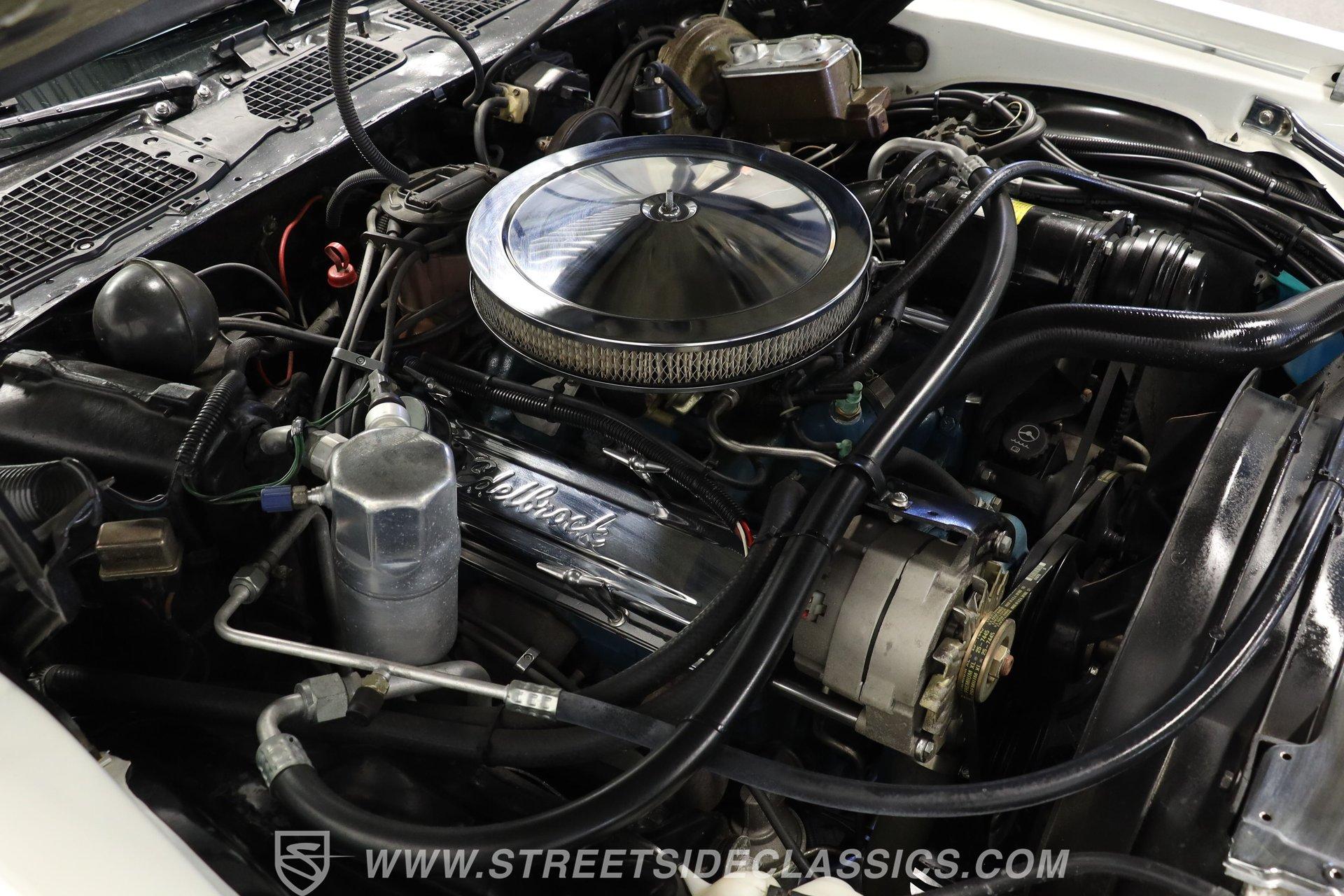 Under the hood, you will find the original numbers-matching 350 V8 engine paired with a smooth 3-speed automatic transmission. The engine bay is clean and well-presented, featuring upgrades like a chrome air cleaner, chrome valve covers, and a modern aluminum radiator for added reliability. Power steering and power brakes, including front discs, make every drive enjoyable. The dual exhaust and Rochester Quadrajet 4-barrel carburetor deliver the classic sound and performance that enthusiasts love.