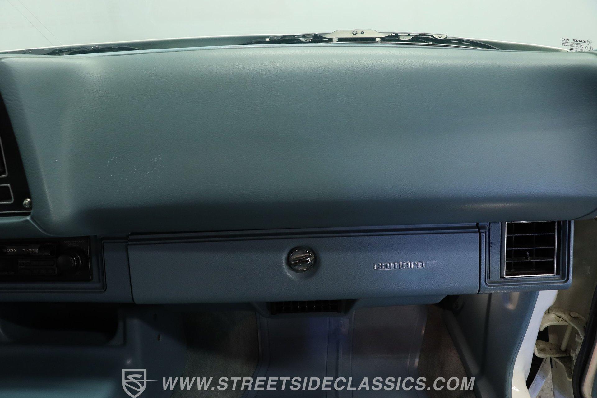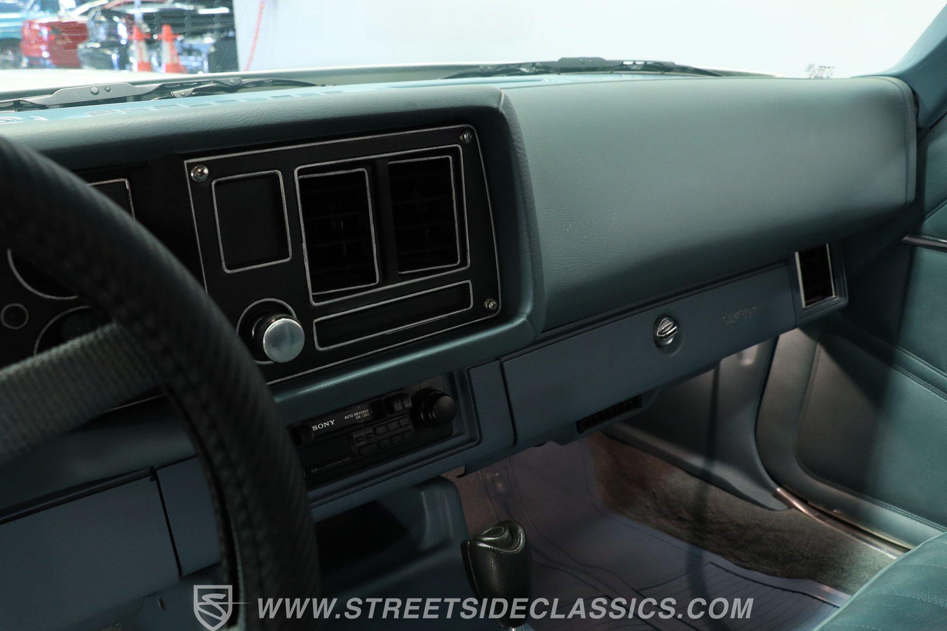Step inside and discover an interior that balances vintage style with comfort. The blue vinyl cabin retains its rich color, showing minimal wear and presenting impressively. The dash is clean with clear gauges, and the center console and seats are in great shape. Enjoy your favorite tunes on the Sony cassette/receiver adding to the authentic experience.