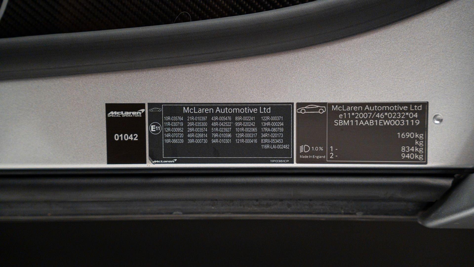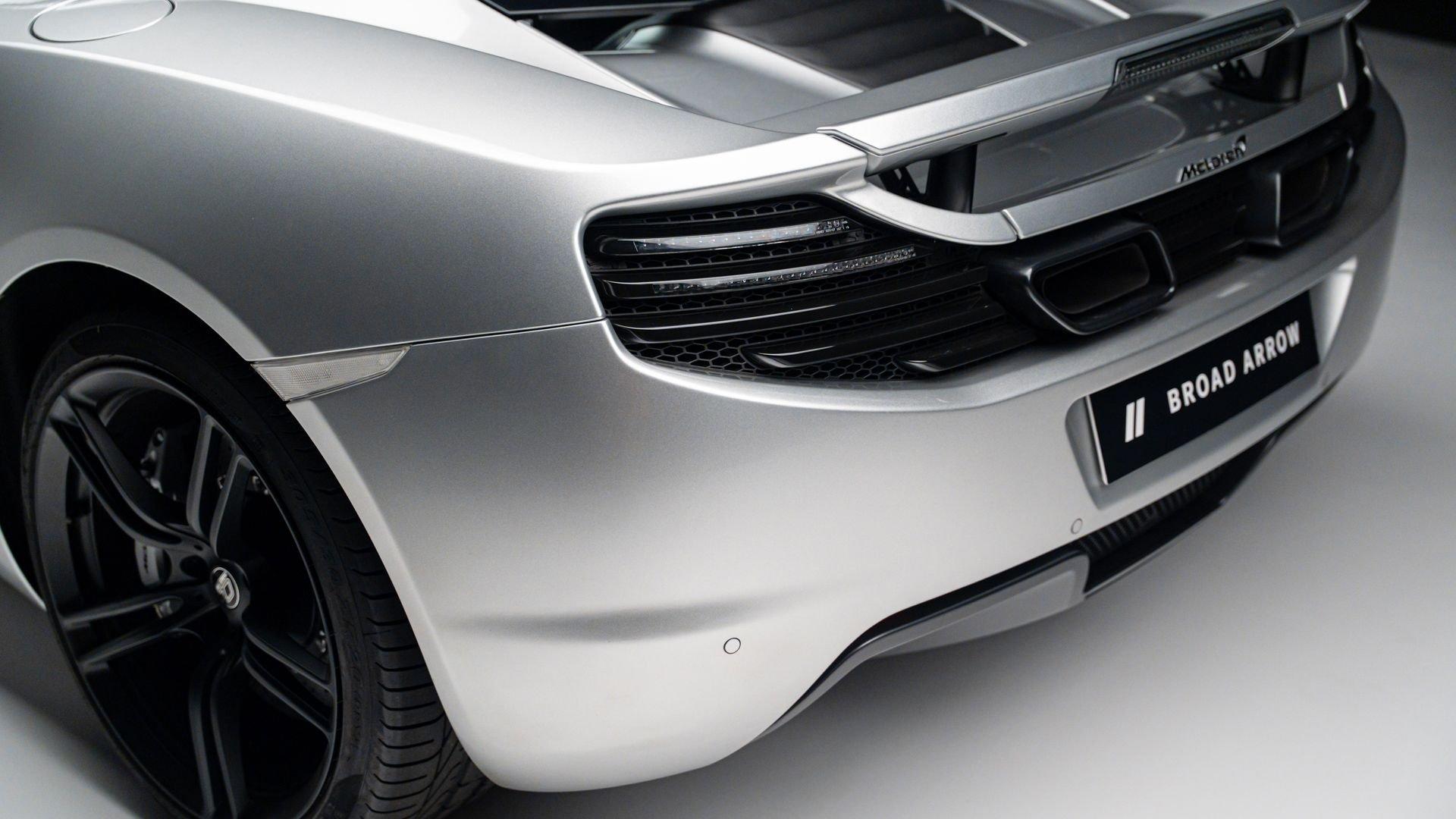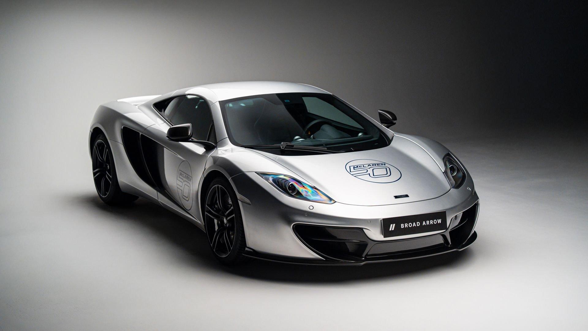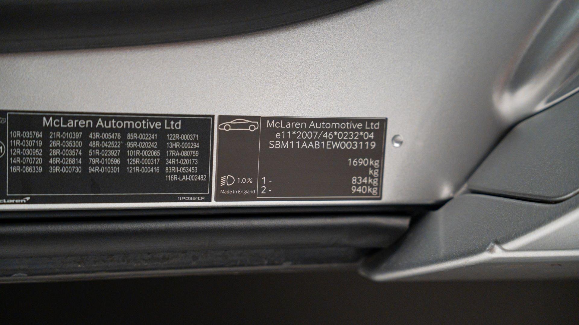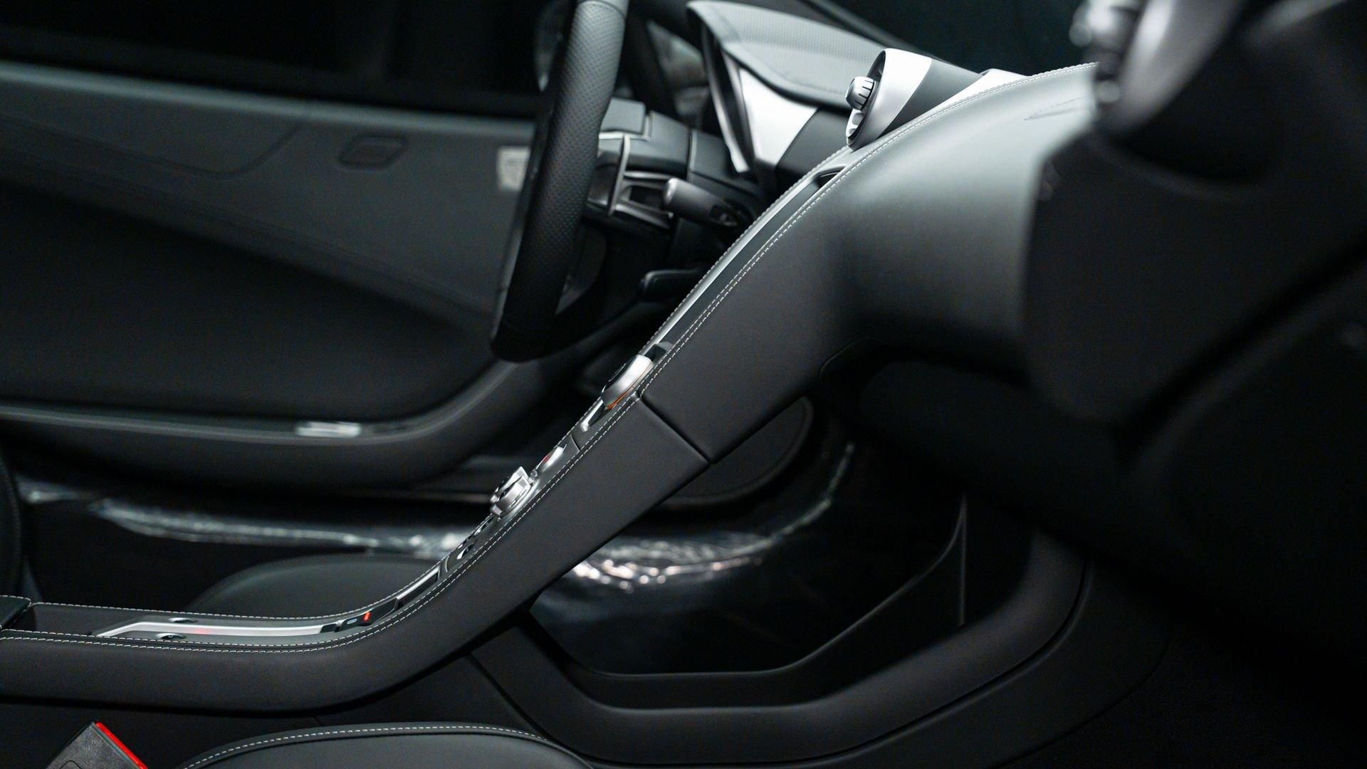 This 2013 McLaren 50 12C by MSO is finished in elegant Supernova Silver, one of three Elite colors offered for the exclusive anniversary model. It is distinguished from the standard 12C by a custom MSO-designed high-downforce front bumper, carbon Kevlar front floor, and McLaren 50 Ultra Lightweight wheels. Finished in Satin Black, these exclusive wheels reduce two more kilograms than the standard Super Lightweight wheels and frame the factory-fitted carbon ceramic brake upgrade that all 50 12Cs are equipped with as standard. The cabin reflects the 50 12C's restrained exclusivity, trimmed in Carbon Black Full Nappa Leather upholstery throughout. Subtle commemorative details include McLaren 50 branding on the carbon fiber sill panels and floor mats, and an anniversary dedication plate mounted on the driver's door.