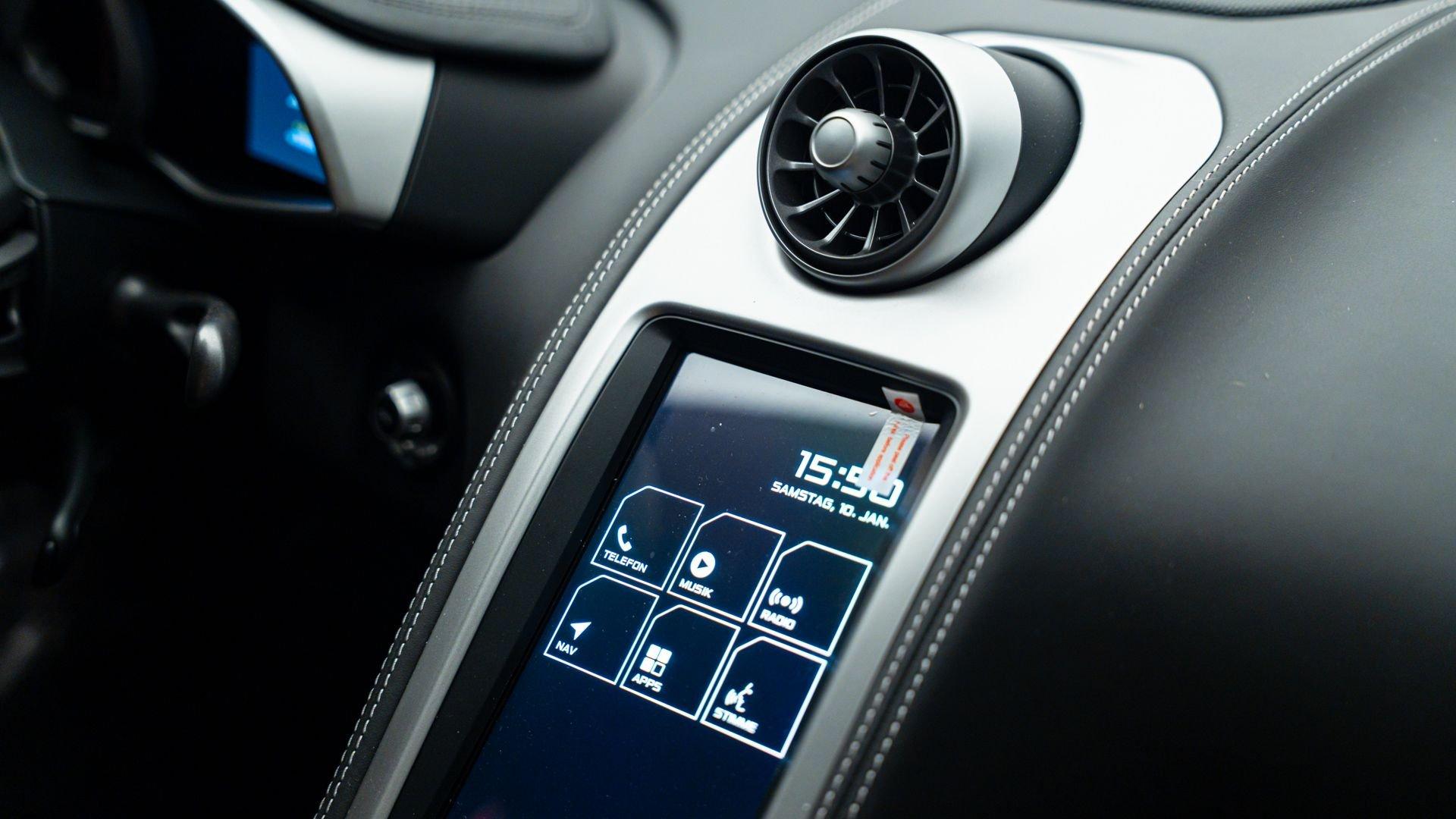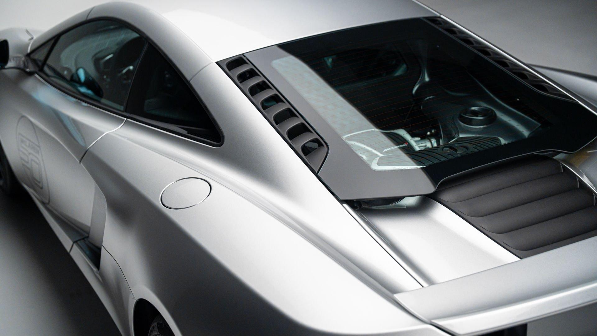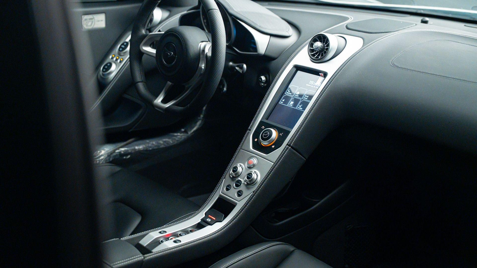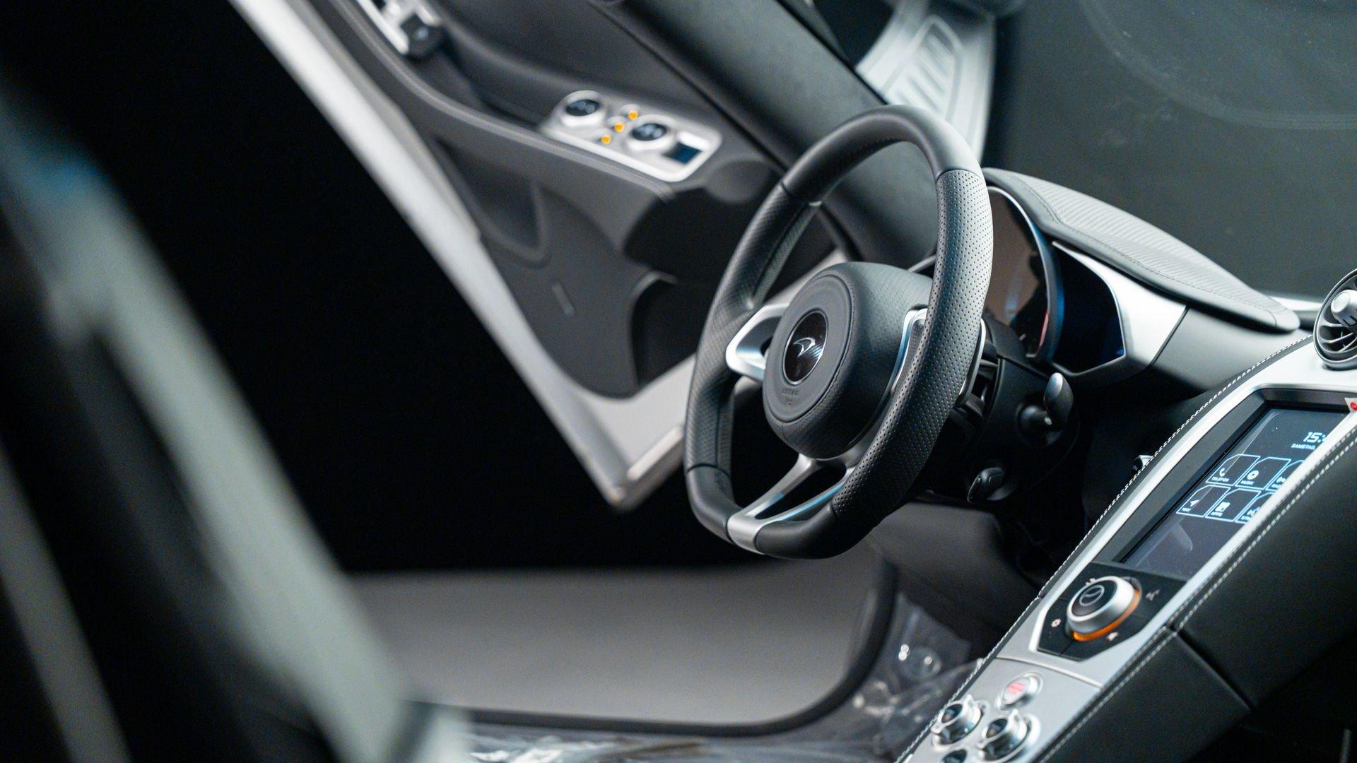 This 2013 McLaren 50 12C by MSO is finished in elegant Supernova Silver, one of three Elite colors offered for the exclusive anniversary model. It is distinguished from the standard 12C by a custom MSO-designed high-downforce front bumper, carbon Kevlar front floor, and McLaren 50 Ultra Lightweight wheels. Finished in Satin Black, these exclusive wheels reduce two more kilograms than the standard Super Lightweight wheels and frame the factory-fitted carbon ceramic brake upgrade that all 50 12Cs are equipped with as standard. The cabin reflects the 50 12C's restrained exclusivity, trimmed in Carbon Black Full Nappa Leather upholstery throughout. Subtle commemorative details include McLaren 50 branding on the carbon fiber sill panels and floor mats, and an anniversary dedication plate mounted on the driver's door.