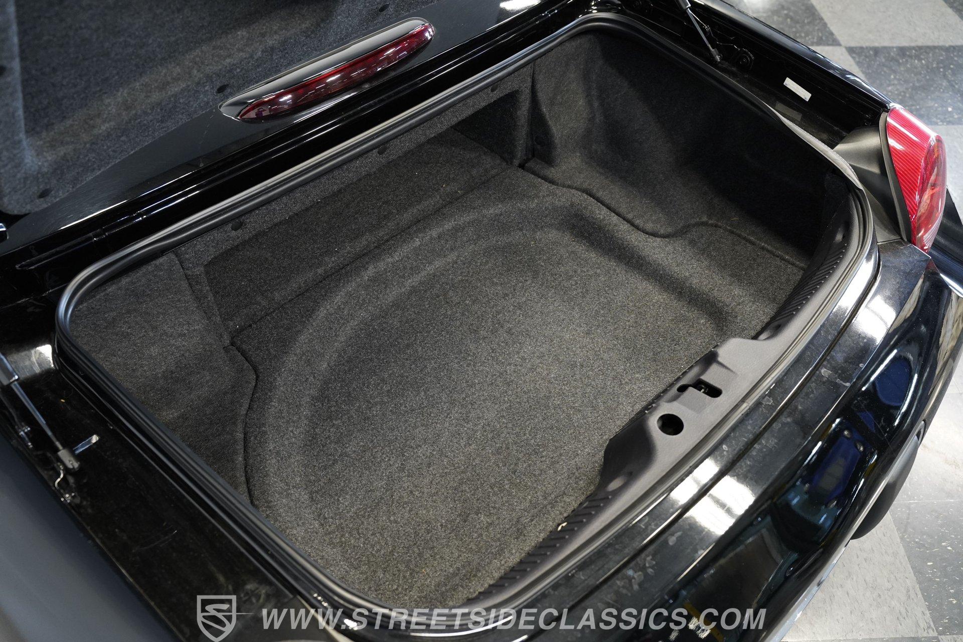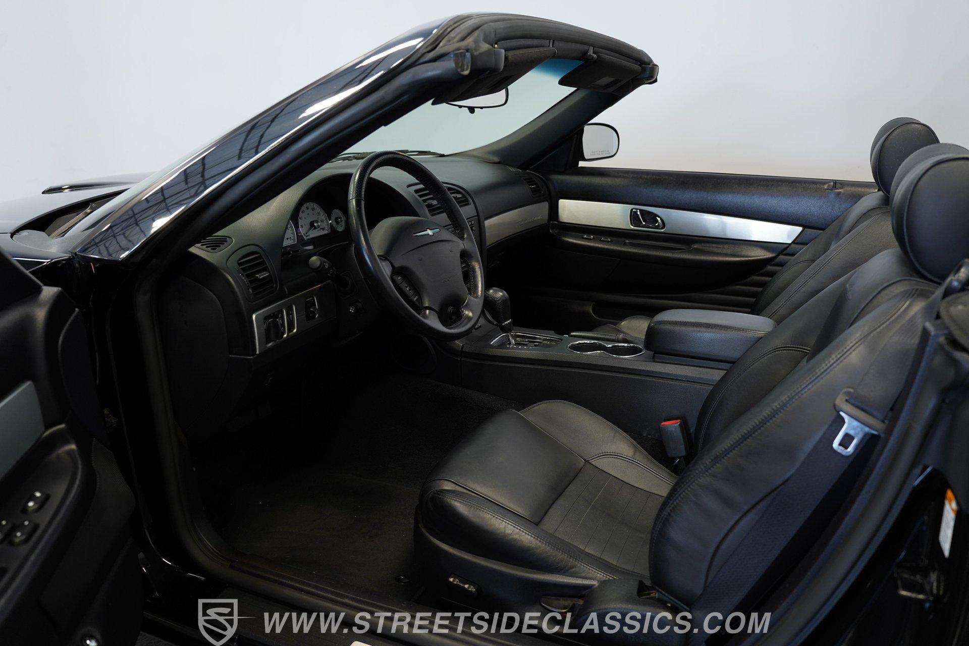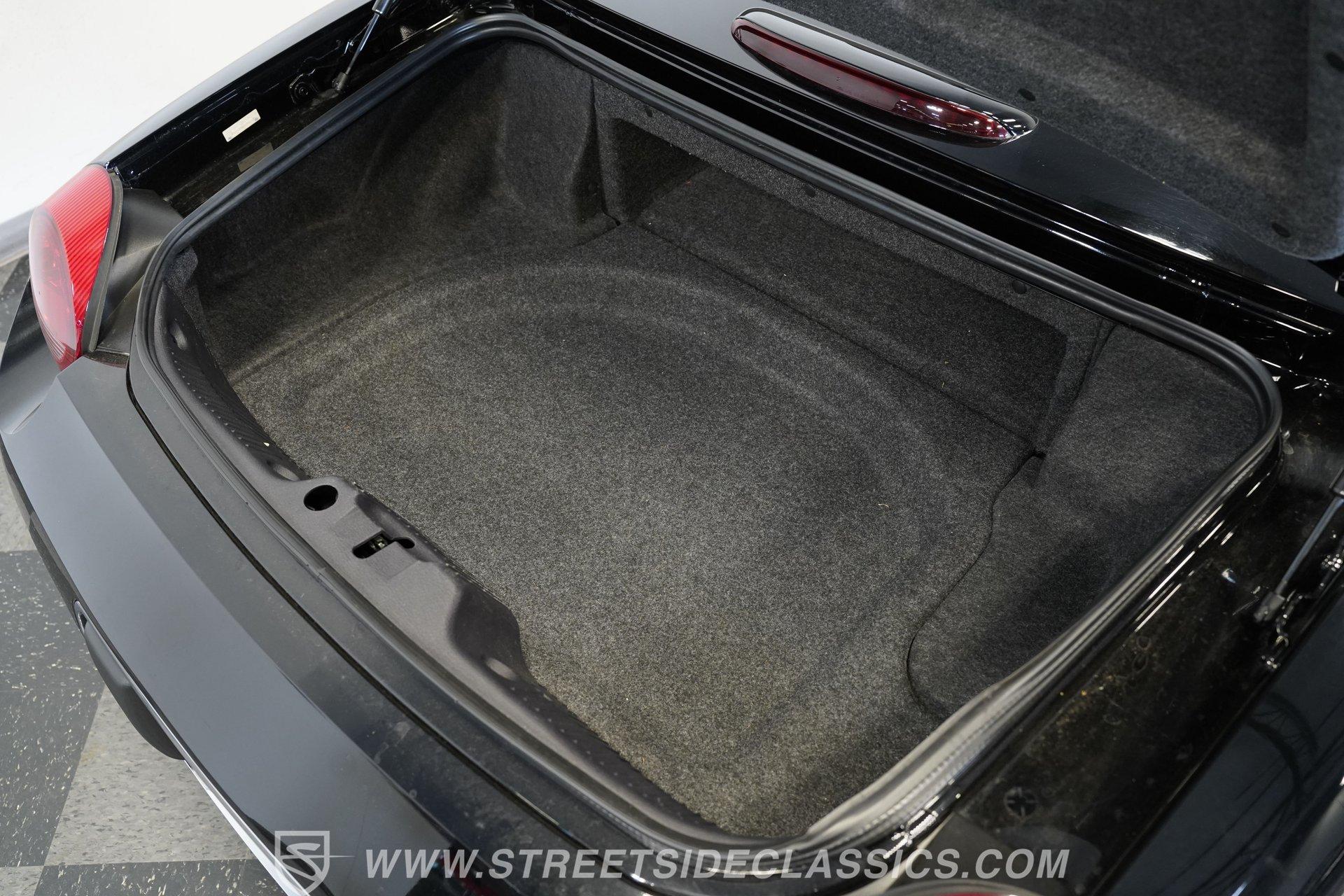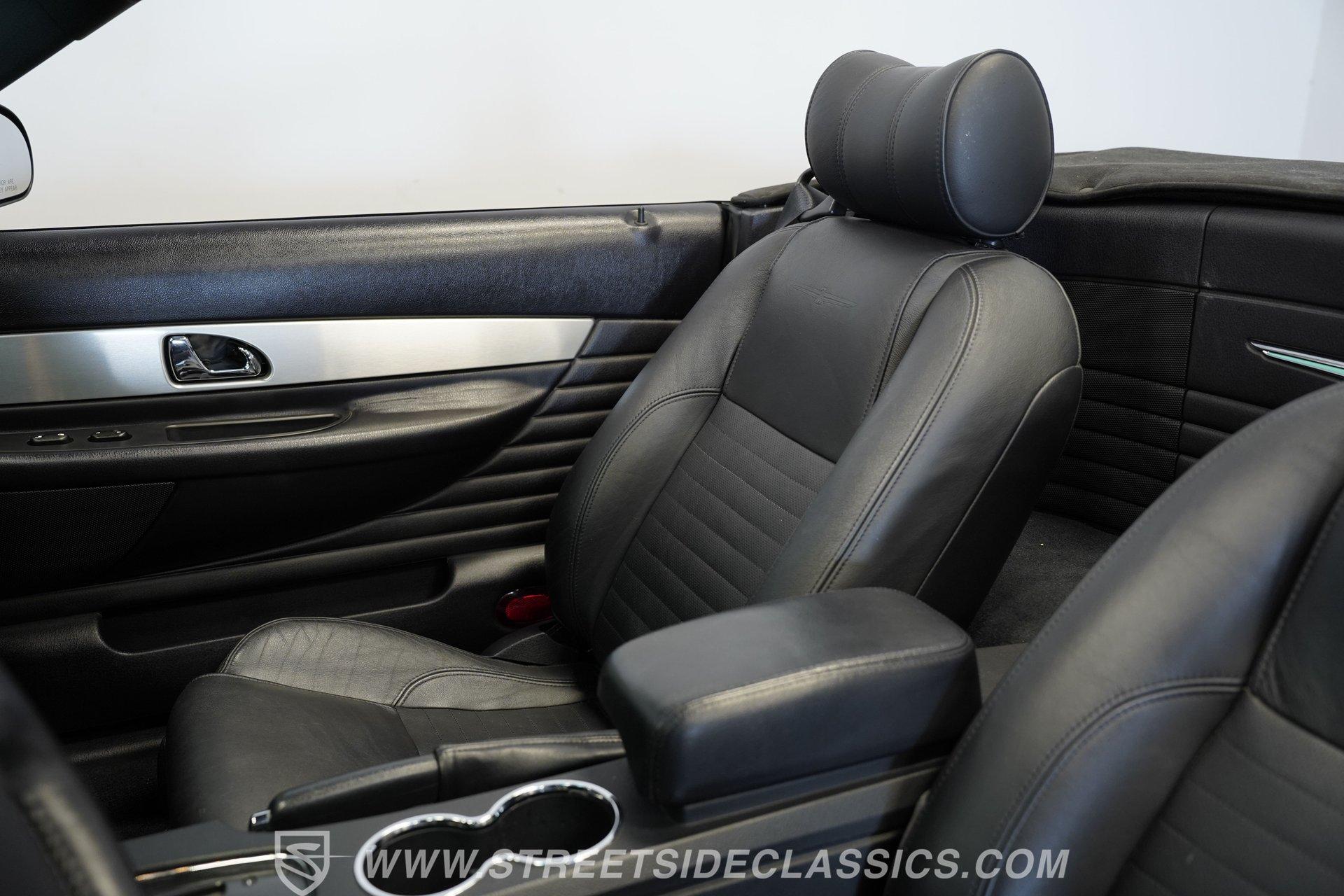 This generation Thunderbird, finished elegantly in Ebony Black with a Black interior, features automatic A/C climate control and heated seats, allowing you to drive comfortably with the top down nearly all year round. This car was created to be a terrific cruiser loaded with power windows, power locks, keyless entry/alarm, dual front airbags, a premium AM/FM/6-CD changer stereo and cruise control. The leather seats feel comfy and have a well-respected style with the kind of use that goes with the low mileage. The power driver's seat gets you in the right position to really see nice details such as the steering wheel's classic turquoise streak in the Thunderbird logo that is coordinated with the needles on the gauges.