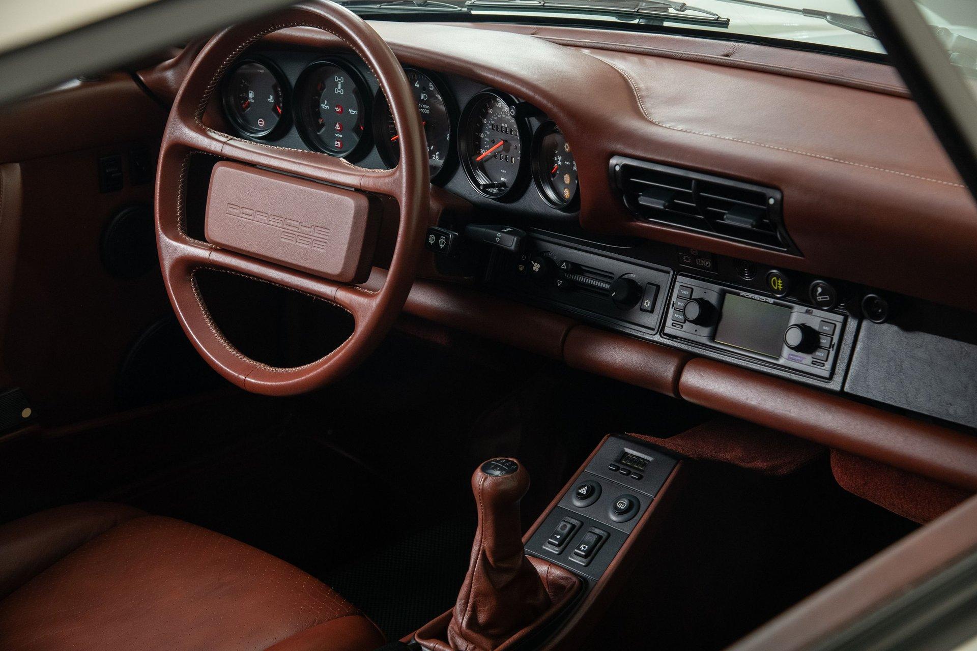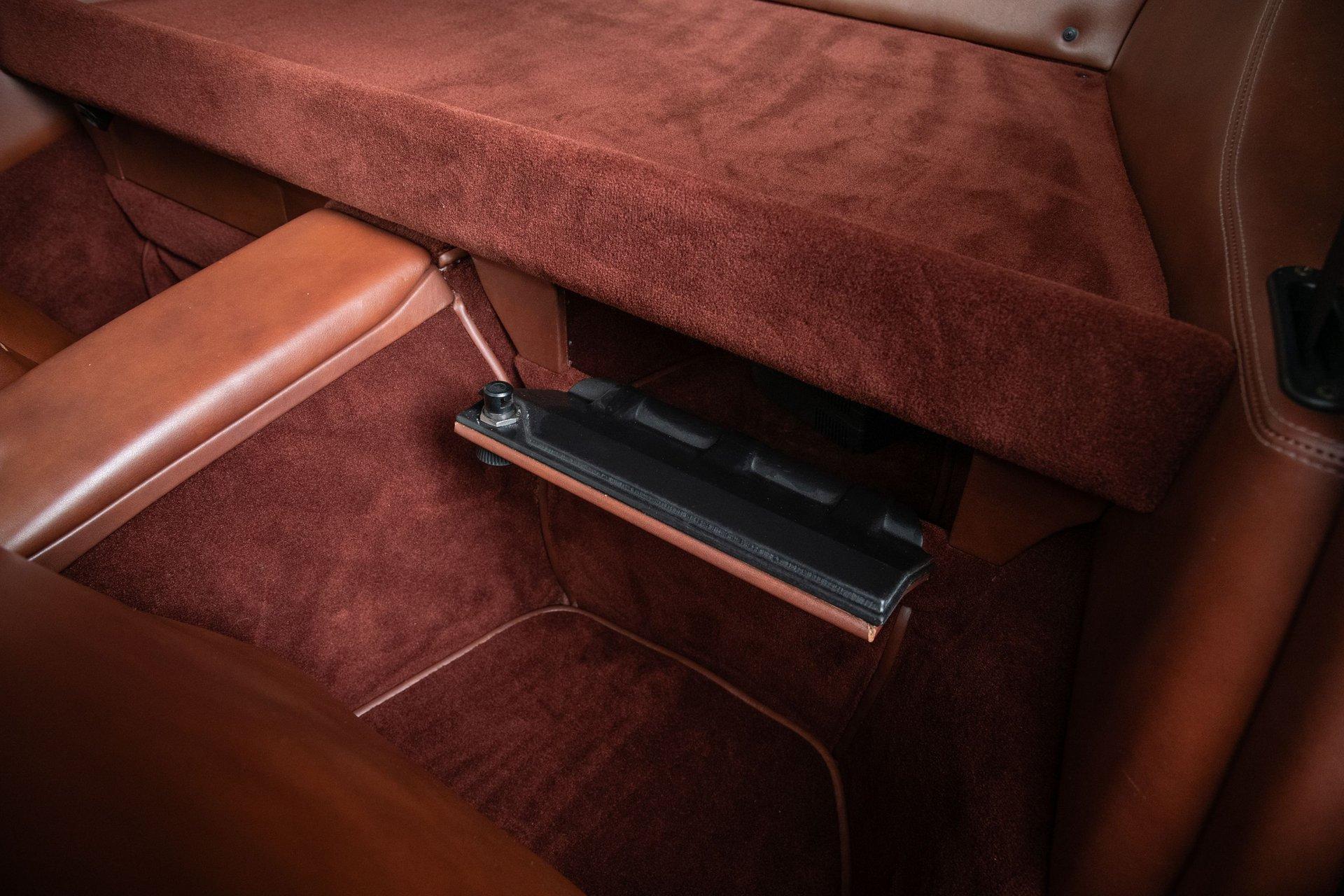 No car would be complete without a fantastic interior environment, and each 959SC is no exception. Canepa's in-house upholstery department crafts a custom interior according to the owner's specifications, where this 959 SC was spec'd with exquisite and specially-ordered brown leather to Bruce's specifications. The highest quality leathers are used, using the original seat and headliner patterns, with the interior receiving the full leather treatment. A modern head unit is installed along with an improved stereo system to link your phone seamlessly. The 2-stage exhaust system is controlled from the interior at the flick of a switch, either letting you be stealthy or letting everyone know you're driving an 850 horsepower 959SC. This example, being the first 959 SC, has a unique rear package shelf with integrated storage that was developed for only this car. After said and done, over 400 hours are spent on each interior ensuring that it is just as wonderful sitting in the car than it is looking at it.