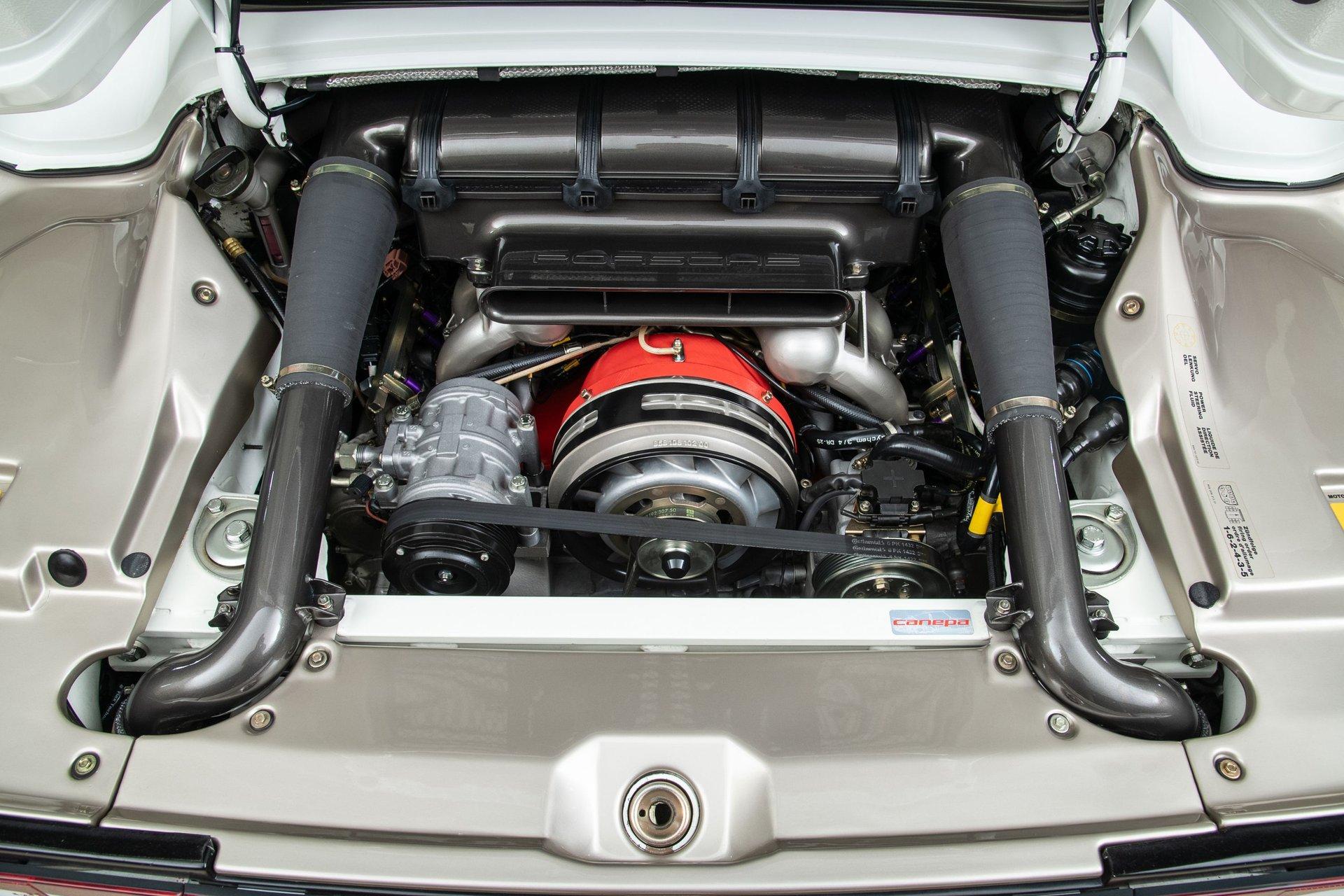 Over the past 30 years Canepa has experience with the Porsche 959 drivetrain, suspension systems, and mechanical systems overall. This experience with the 959 platform has allowed Canepa to pinpoint areas that could be upgraded, optimized, and sometimes simply replaced with improved technology. Each 959SC build includes a full engine rebuild using the finest components that have been optimized for performance and longevity. Pankl titanium connecting rods replace the originals, new CPI pistons are installed, the valvetrain is upgraded, an upgraded fuel system and new injectors are added along with coil-on-pack ignition for more power and better control are employed. The sequential turbo system is eliminated and contemporary Borg Warner turbos are introduced, boosting power and torque, reliably, to 850 horsepower and 600 lb-ft of torque on pump gas. A state of the art engine management system and wiring harness utilizing Canepa proprietary firmware co-developed with MoTec allows for better overall driveability, data logging, and increased performance.