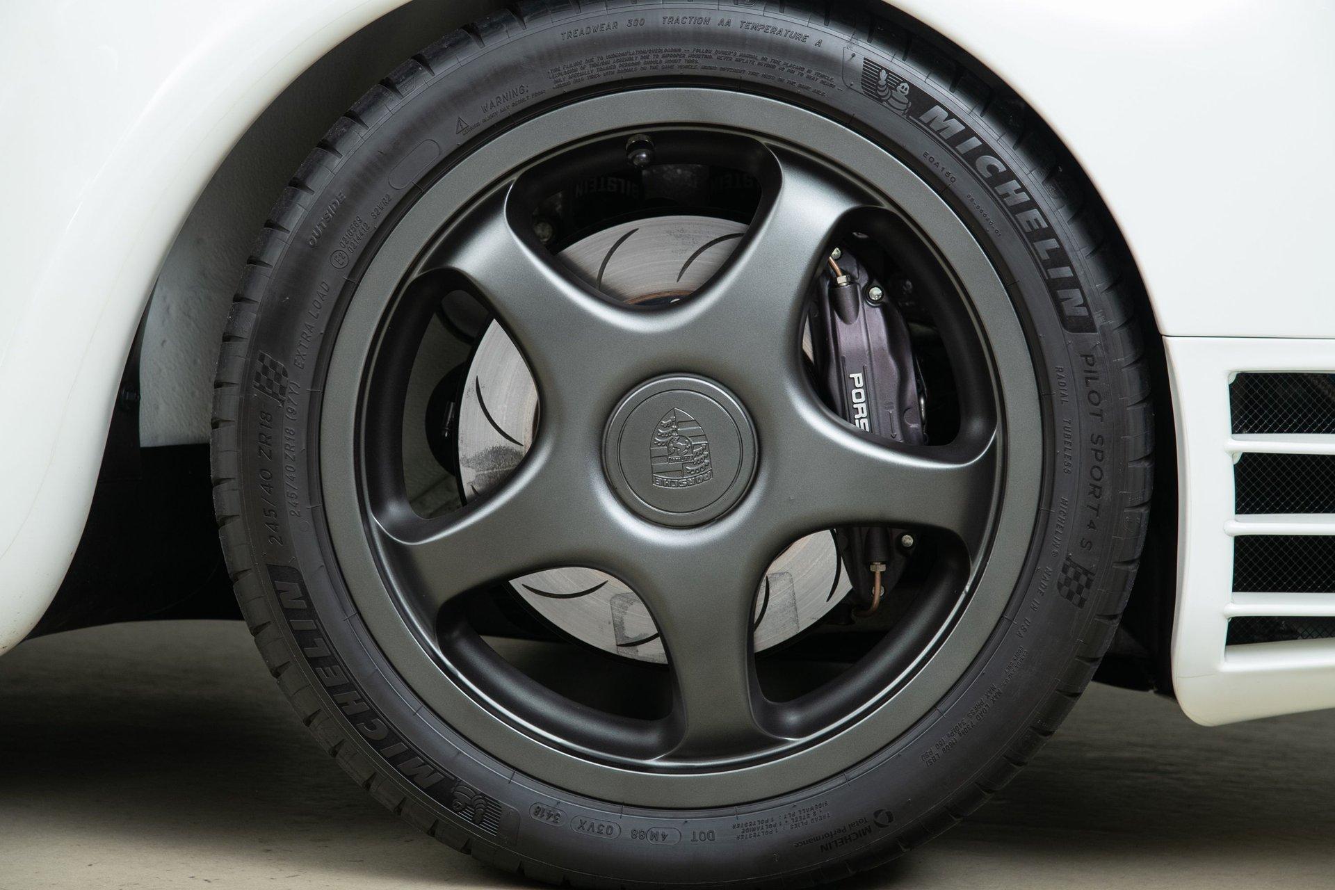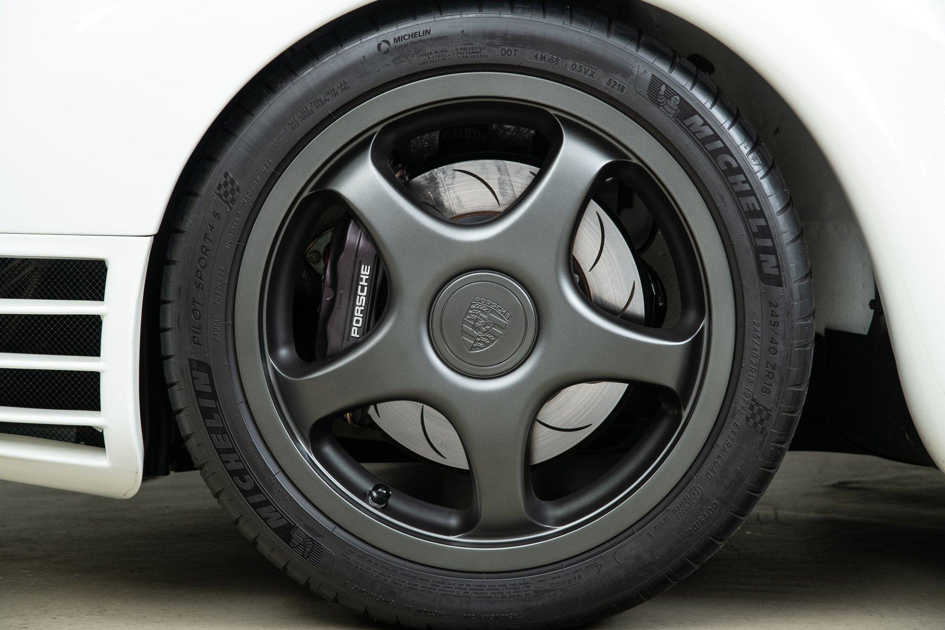 Modern supercar power levels require modern supercar tires, and Canepa devised a special solution for the 959 SC. Originally when the Porsche 959 was designed, it was intended to have 18” wheels but was unable to due to tire manufacturers which led the cars to use 17”. Canepa has taken the lead and created 18” magnesium hollow spoke wheels that keep the spirit of the original wheels, while allowing for modern Michelin radial tire technology to be used, substantially improving grip, comfort and style of the 959SC.