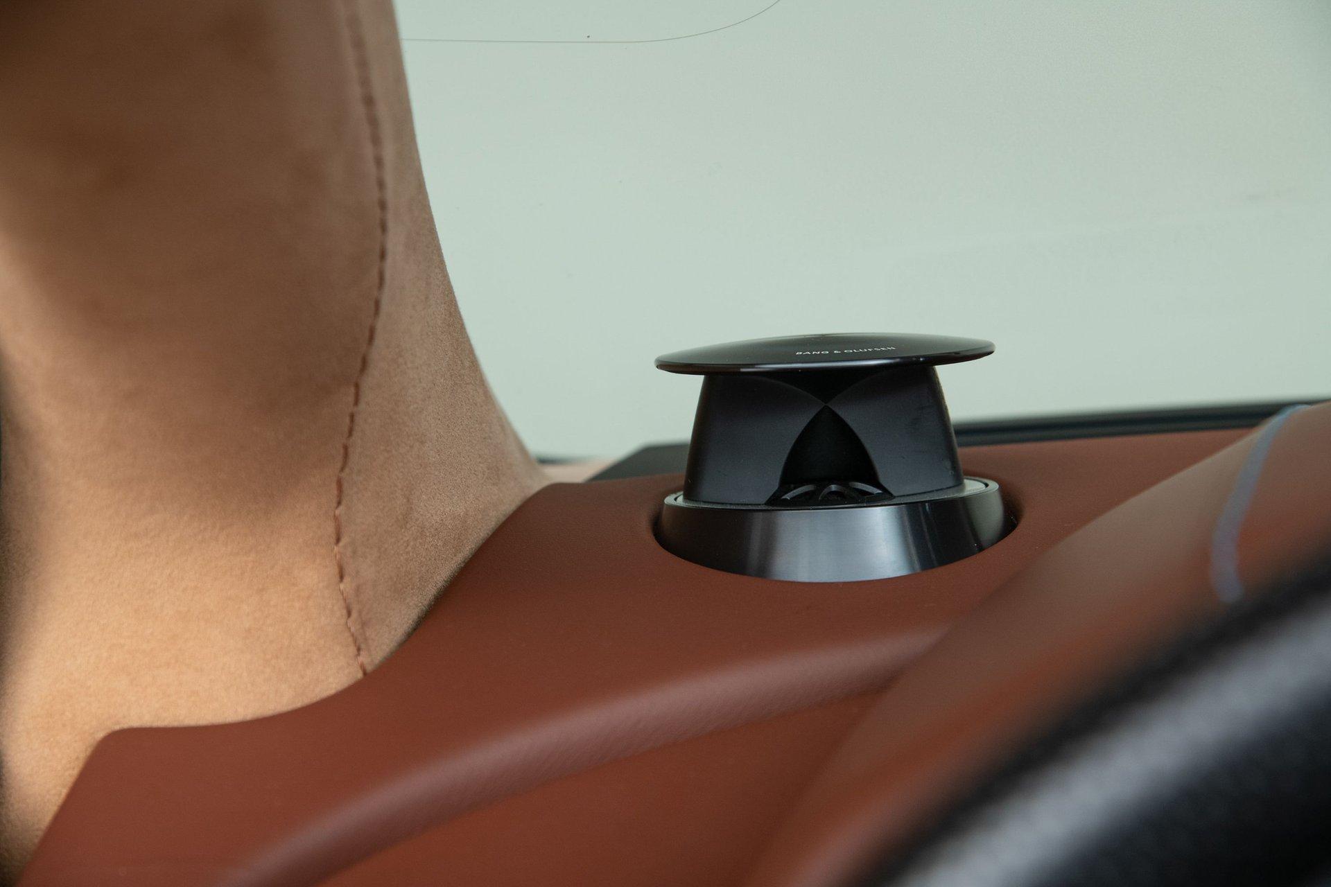 Despite its raw performance capabilities, the DBS Volante remains a luxurious grand tourer with a beautifully appointed, hand-crafted interior. The cabin features lavish use of premium leather, Alcantara, carbon fiber, and polished aluminum trim throughout. It comes equipped with a standard 1,000-watt, 13-speaker Bang & Olufsen BeoSound premium audio system.