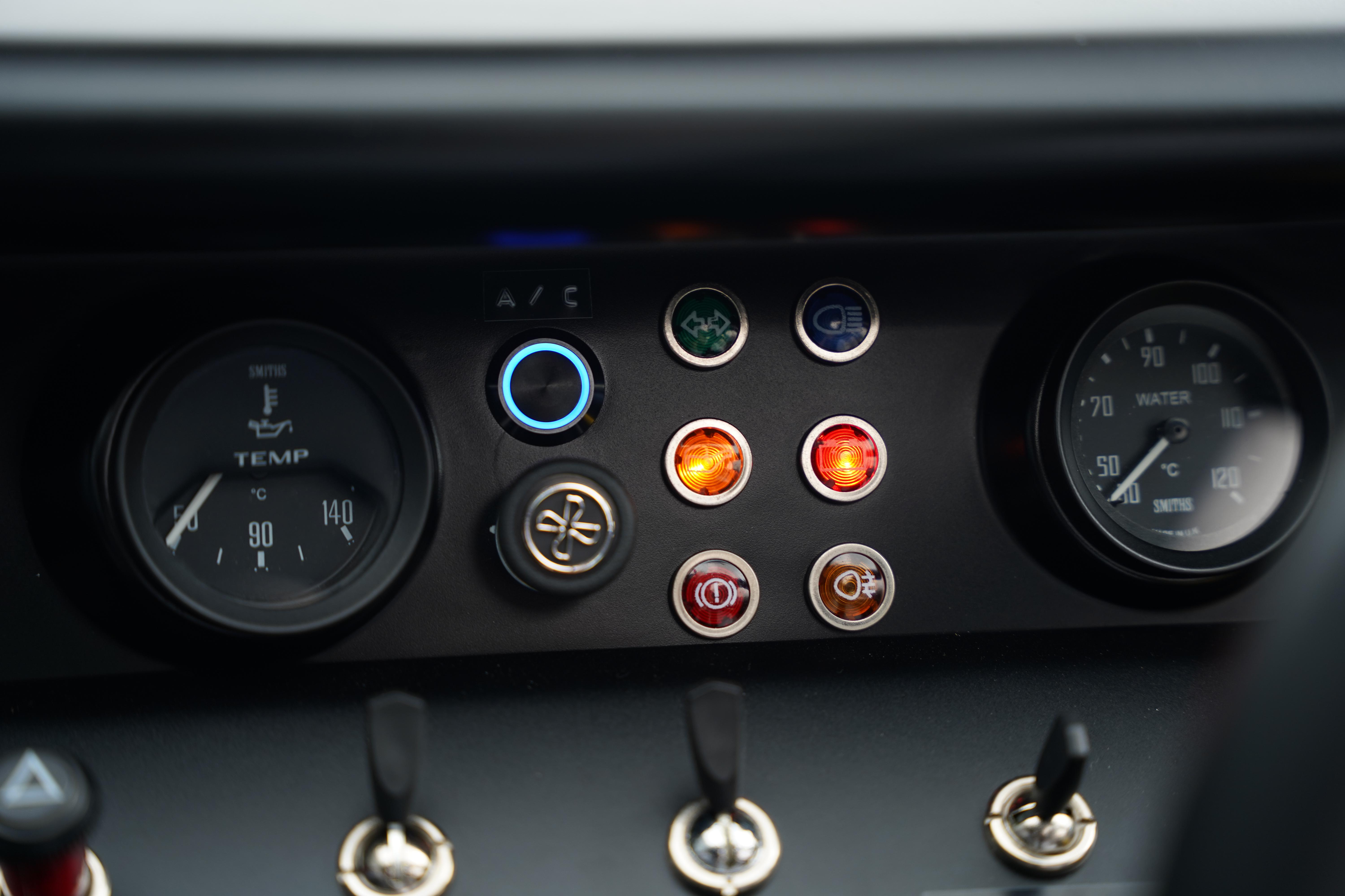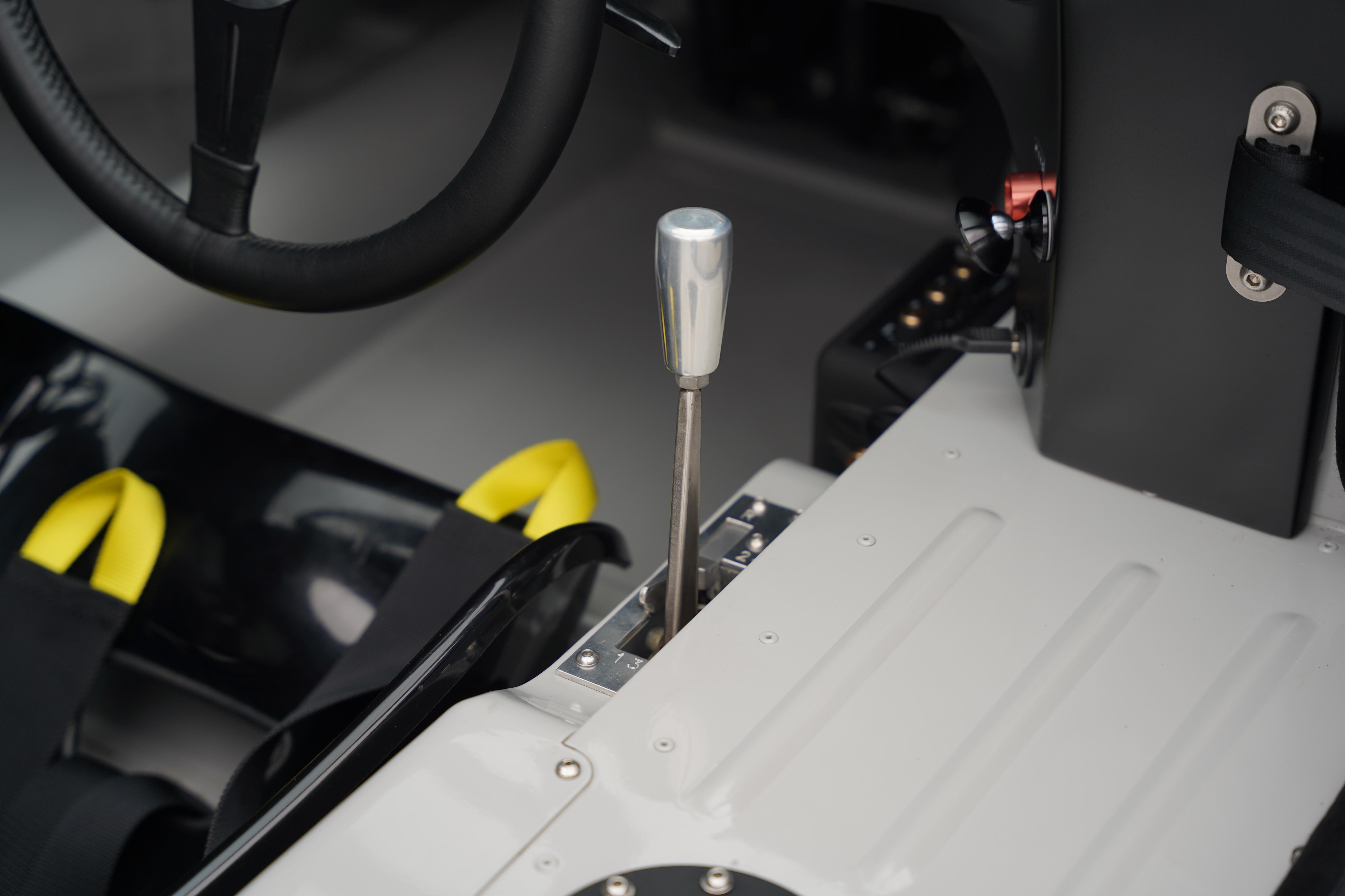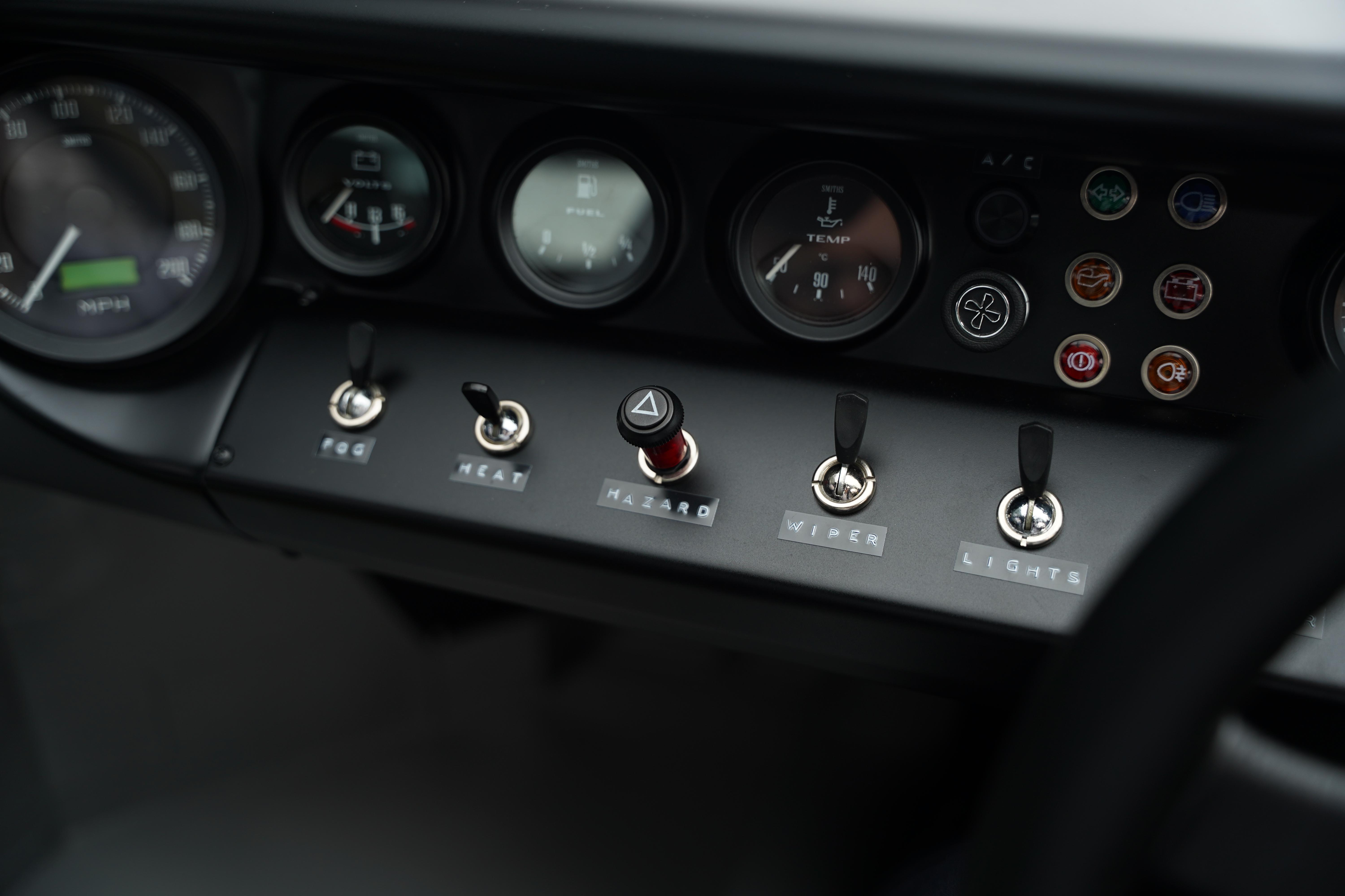 The cabin is purposefully sparce, trimmed and detailed in keeping with the original competition ethos. Toggle switches, riveted panels and deep-set dials create an atmosphere that feels authentic rather than interpretive. Every control has weight and intention, every journey feels like an event.