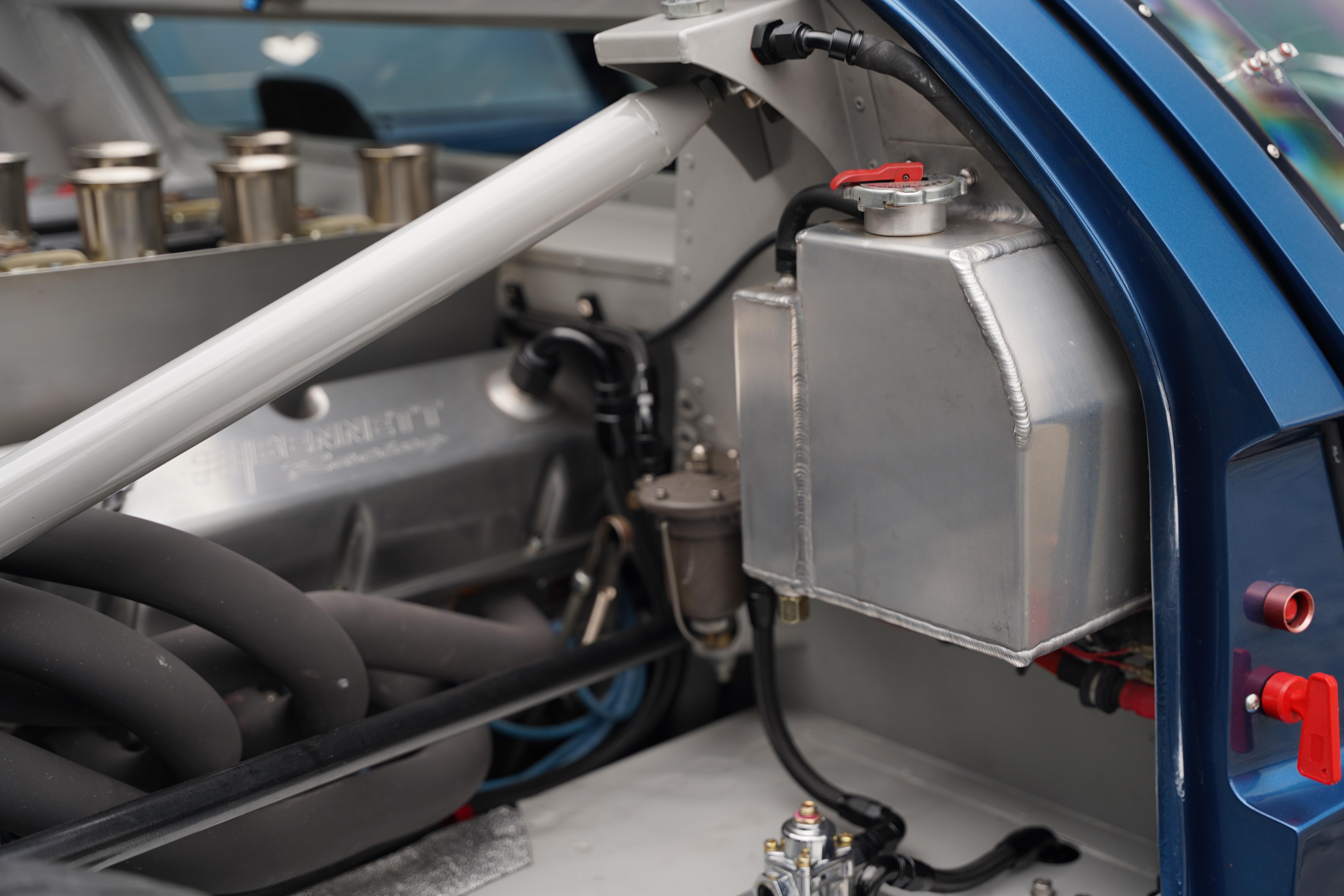 Finished in the elegant and complementary shade of Ecurie Ecosse Blue, the cars presence dominates without trying. High-quality fibreglass body panels are fitted with precision. The quality continues into the interior, with lightweight Tillet seats and harnesses and Smiths GT40 instruments.