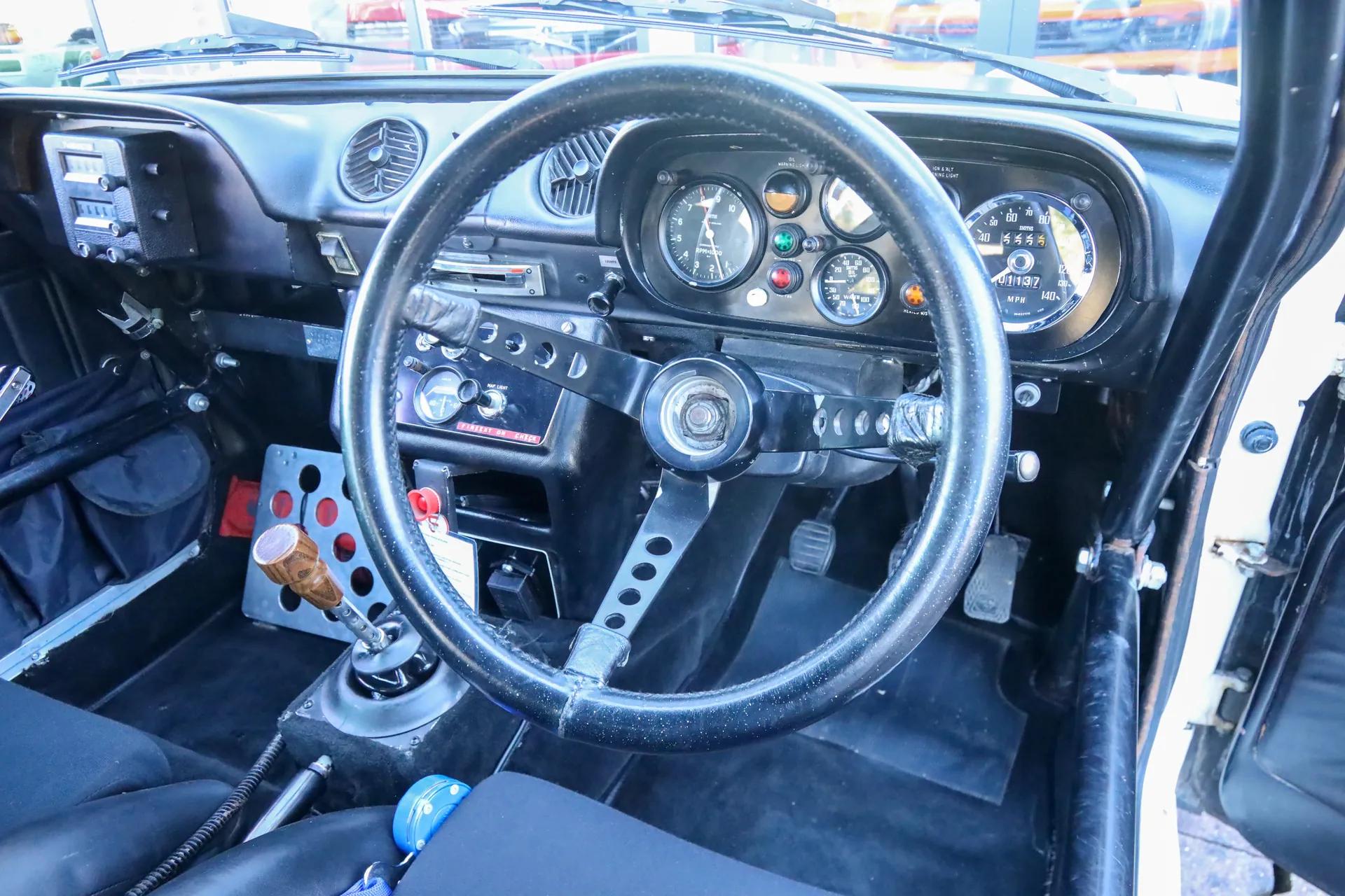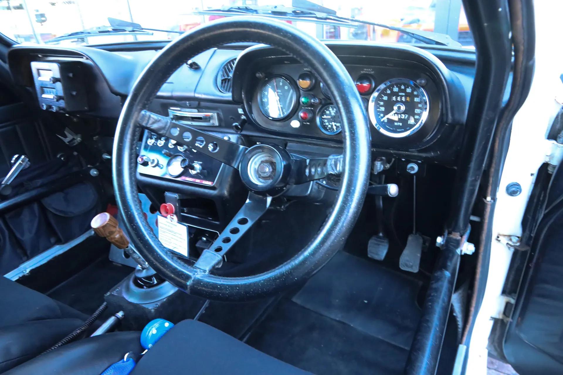 The interior is equally rich in rally heritage. The dashboard with chronometric instruments, the map reading lamp and the additional rally lighting are still present, exactly as the car would have been used in competition during its active years.