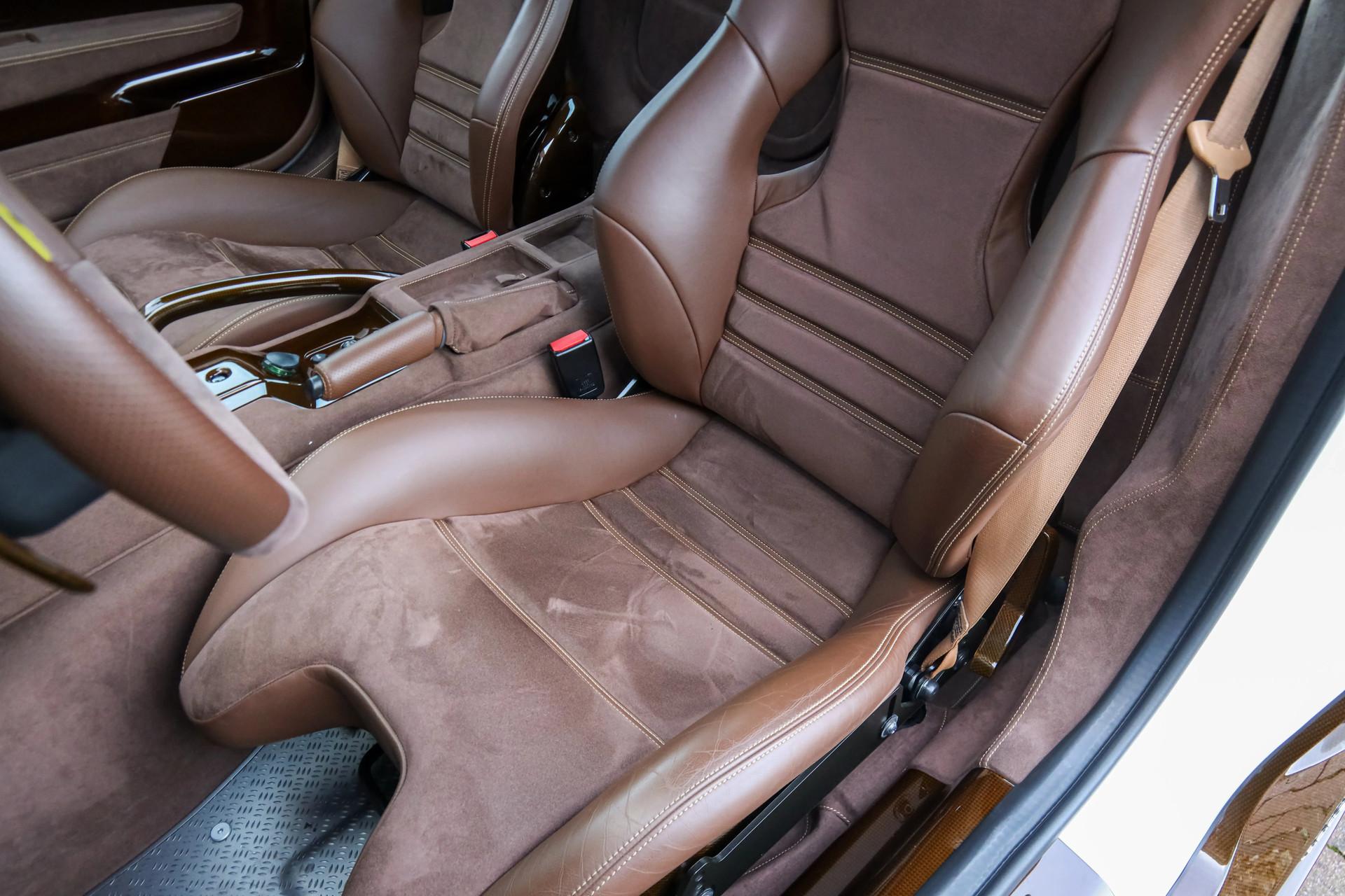 * Livery in Bianco Perla (Fuij Opaco) with satin-brown racing stripes and brown carbon-fibre components