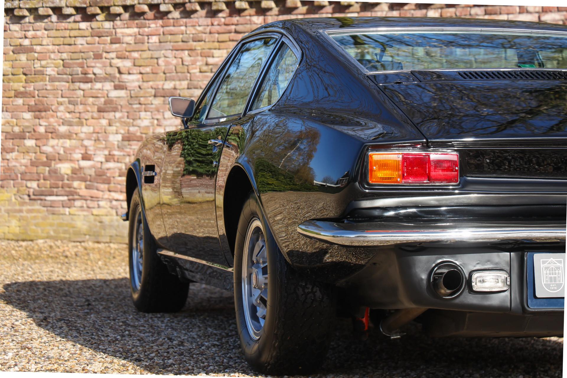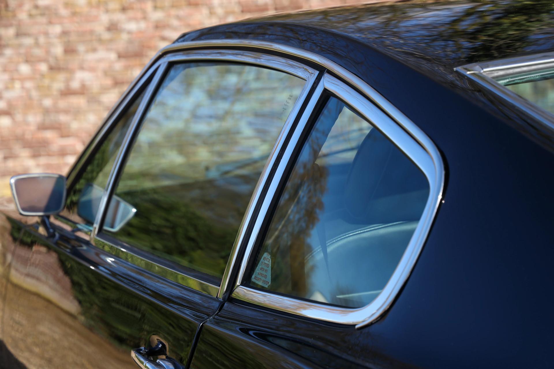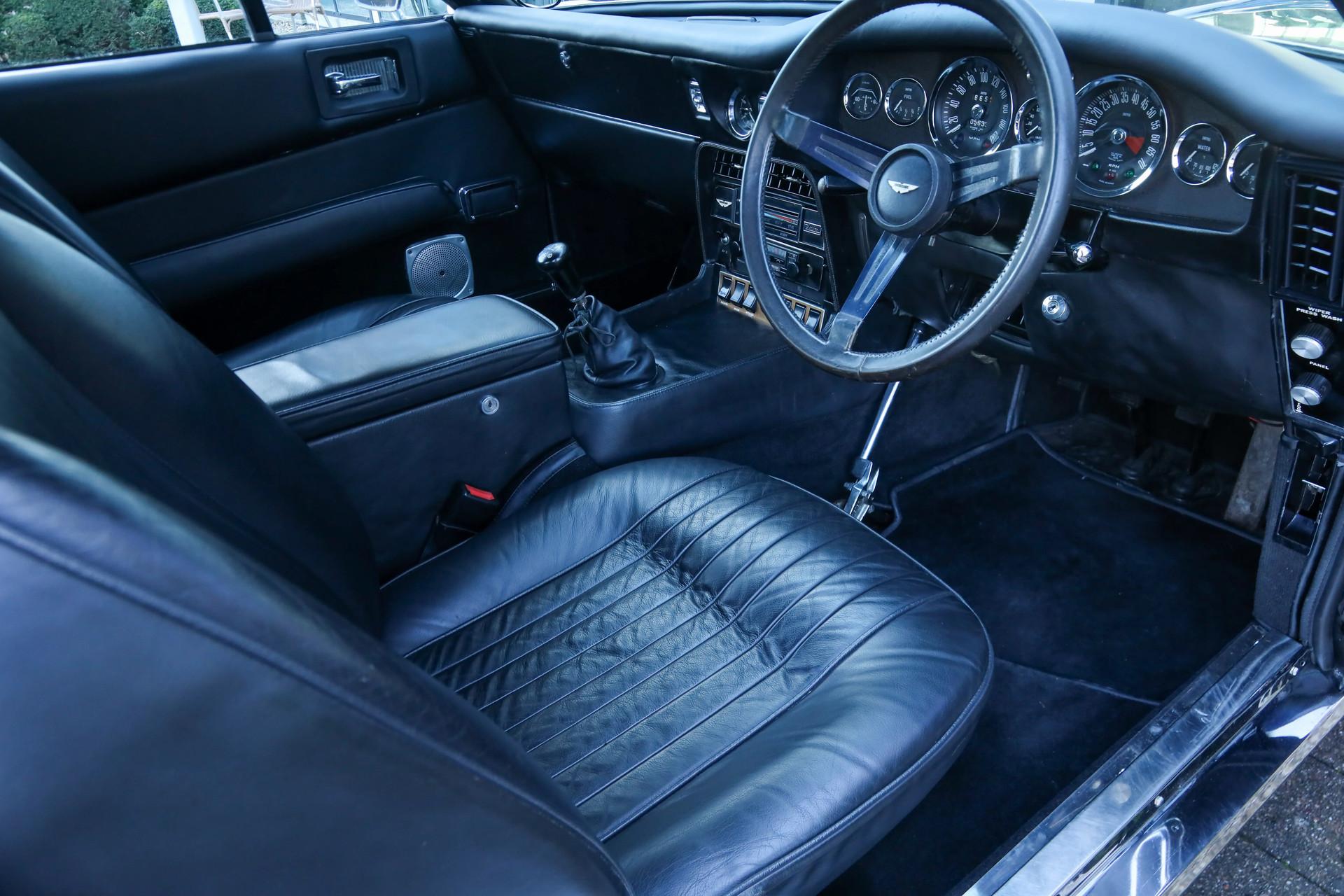 Let's begin with the key details. This car presents in good and largely original condition, with minor improvements where appropriate. It has been maintained and reconditioned in England by recognized Aston Martin specialists and is documented by enthusiasts. Originally delivered in Silver Blue, it was later refinished in a black-over-black color scheme that suits the car well.