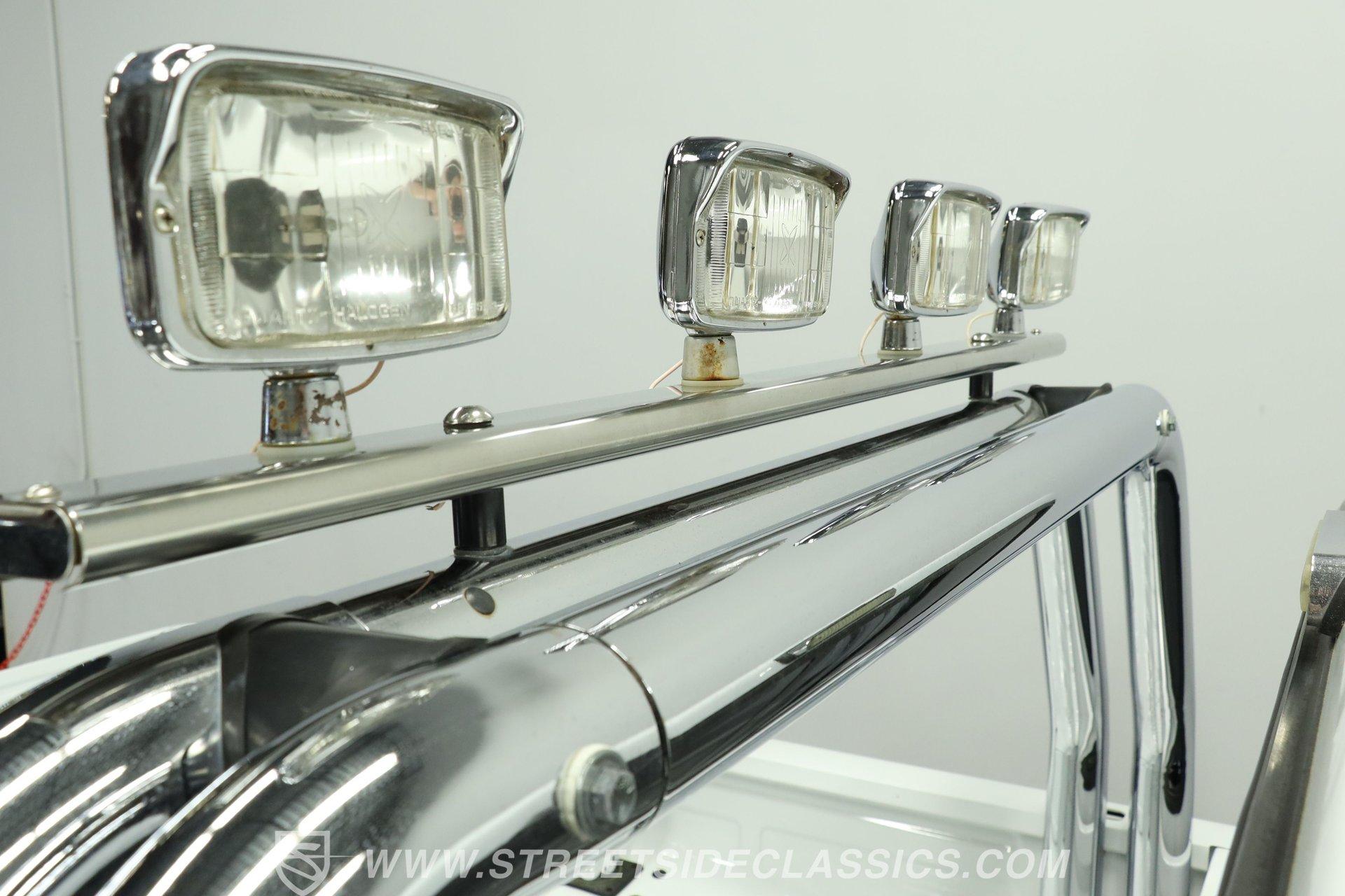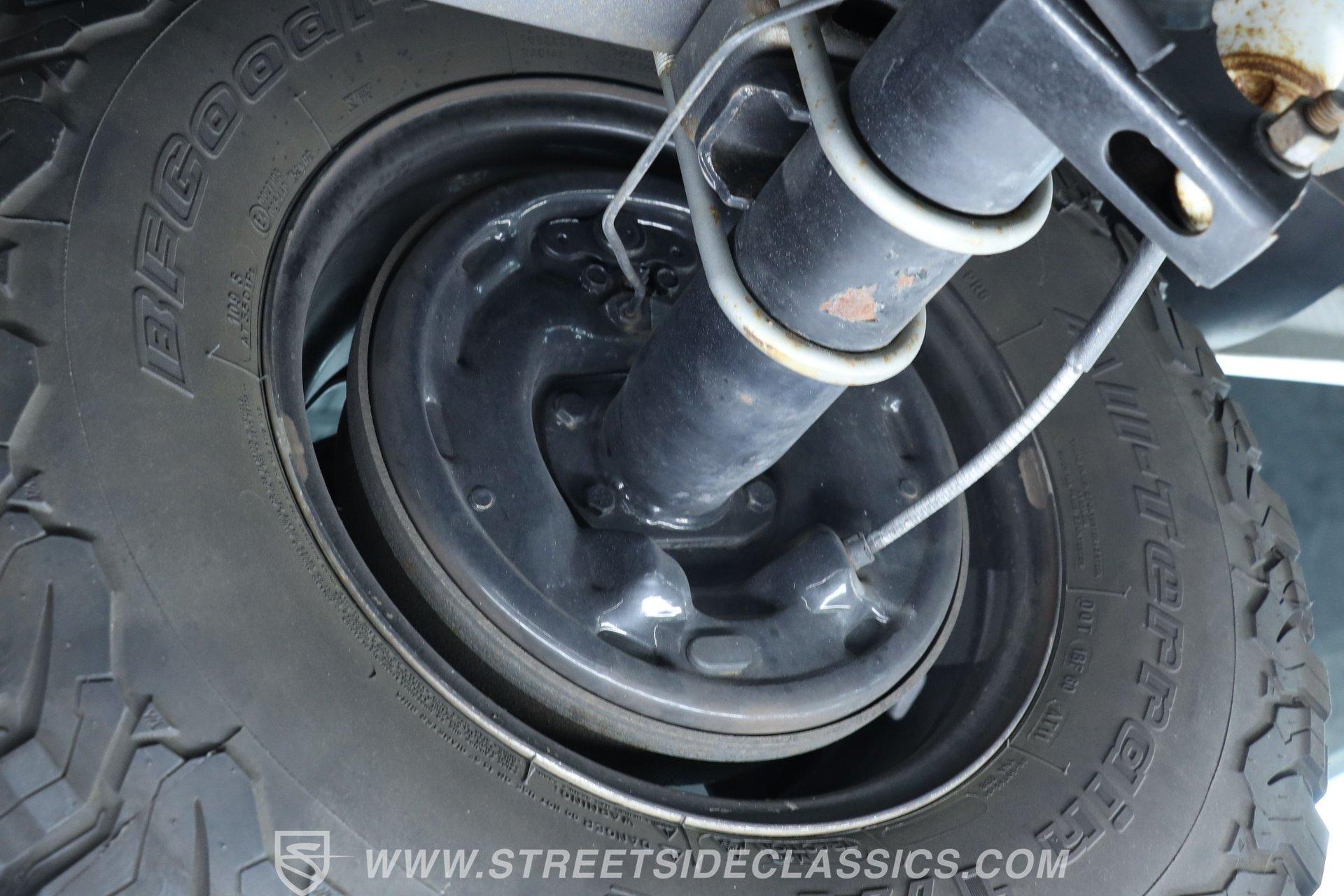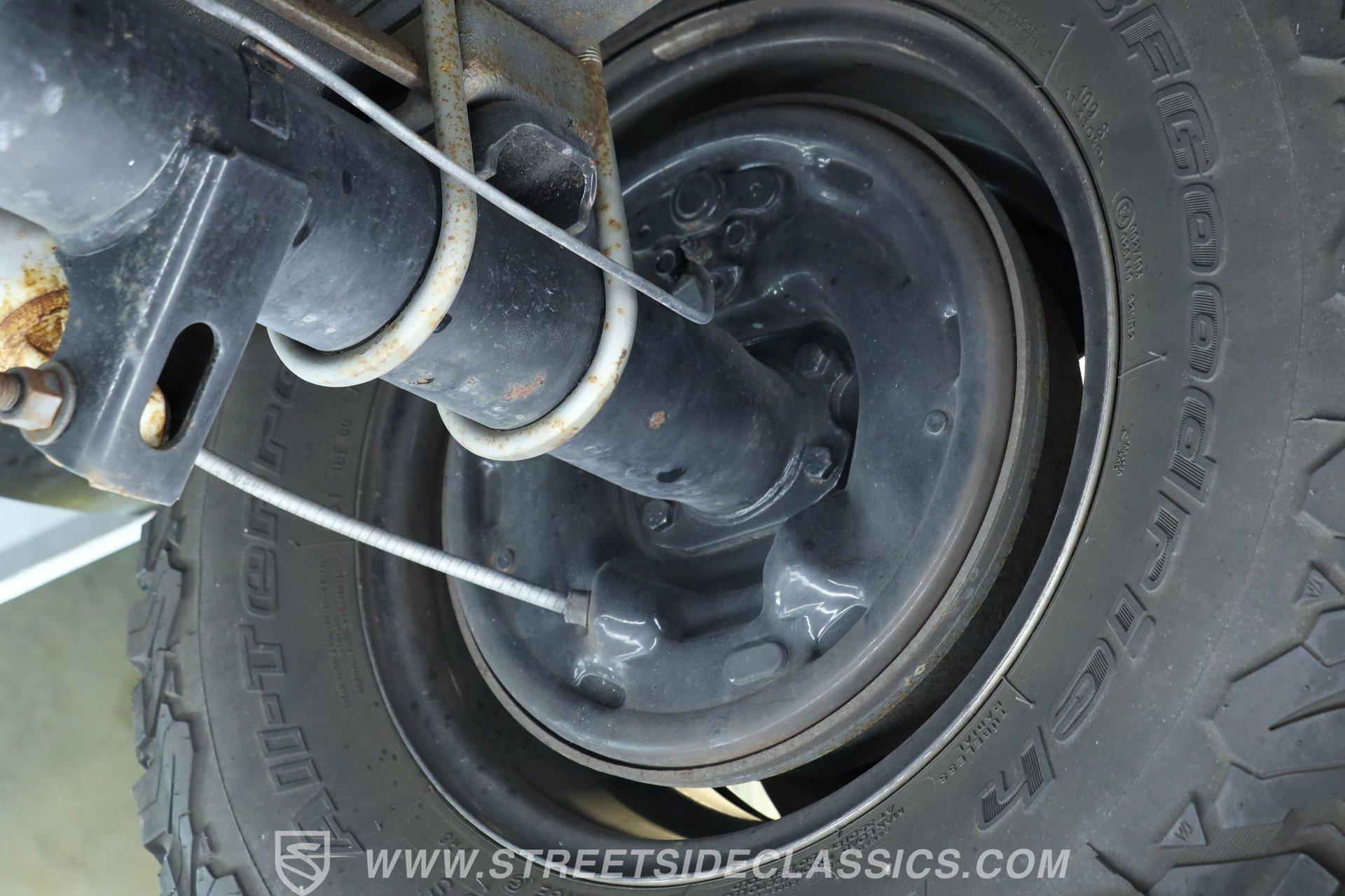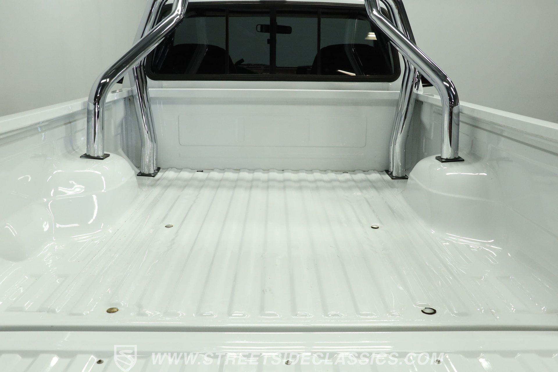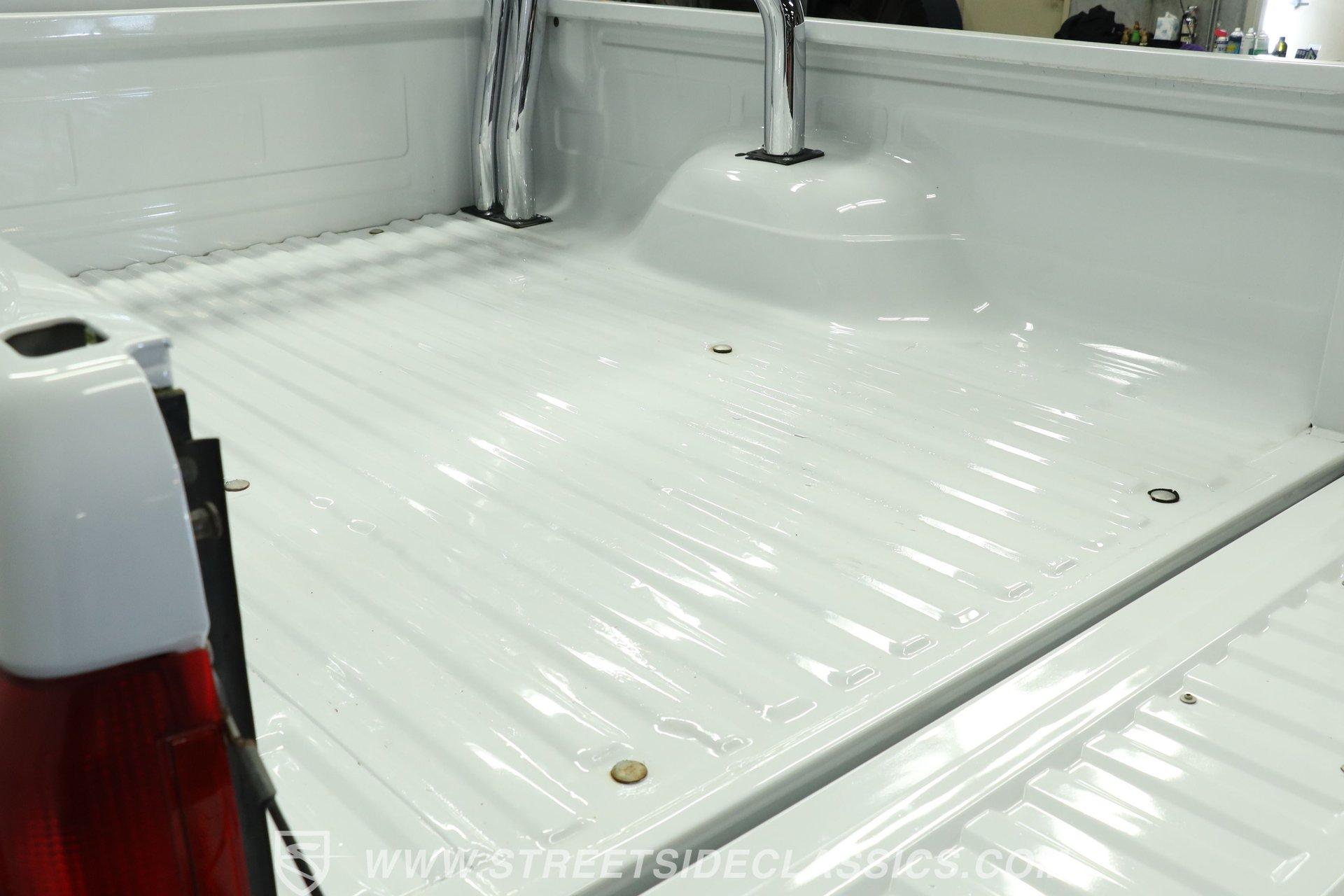 Power comes from the dependable 5.0-liter fuel-injected Windsor V8, paired with a 4-speed automatic transmission with overdrive. The factory-style suspension has been lifted, but still retains solid road manners. Anti-lock front power disc brakes and rear power drum brakes provide confident stopping. Chrome 15-inch wheels at all four corners are wrapped in 31x10.50R15LT tires, enhancing both the stance and drivability. To give the truck a deeper tone, shorty headers feed into a dual exhaust setup that transitions through an aftermarket muffler before exiting as a single outlet.