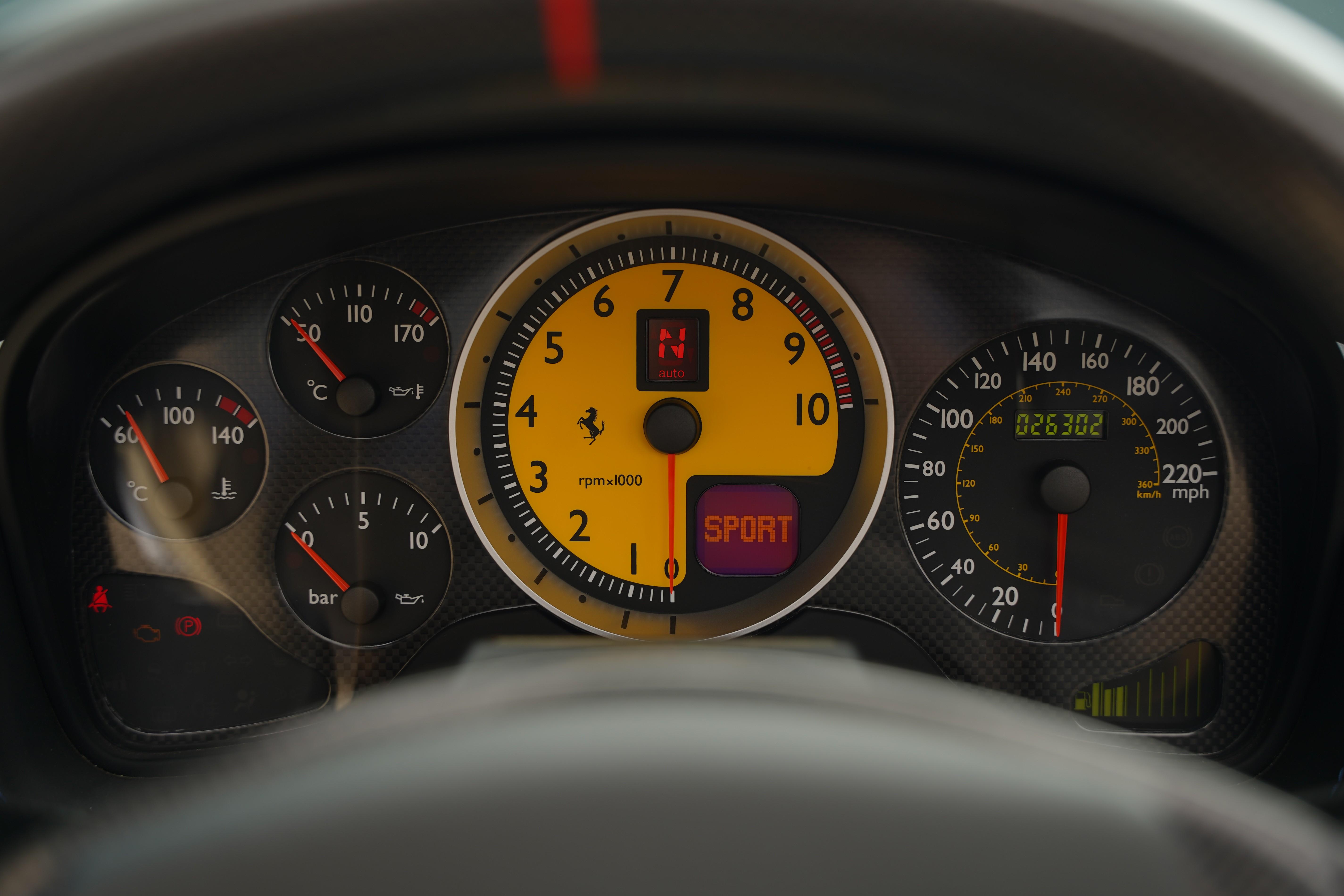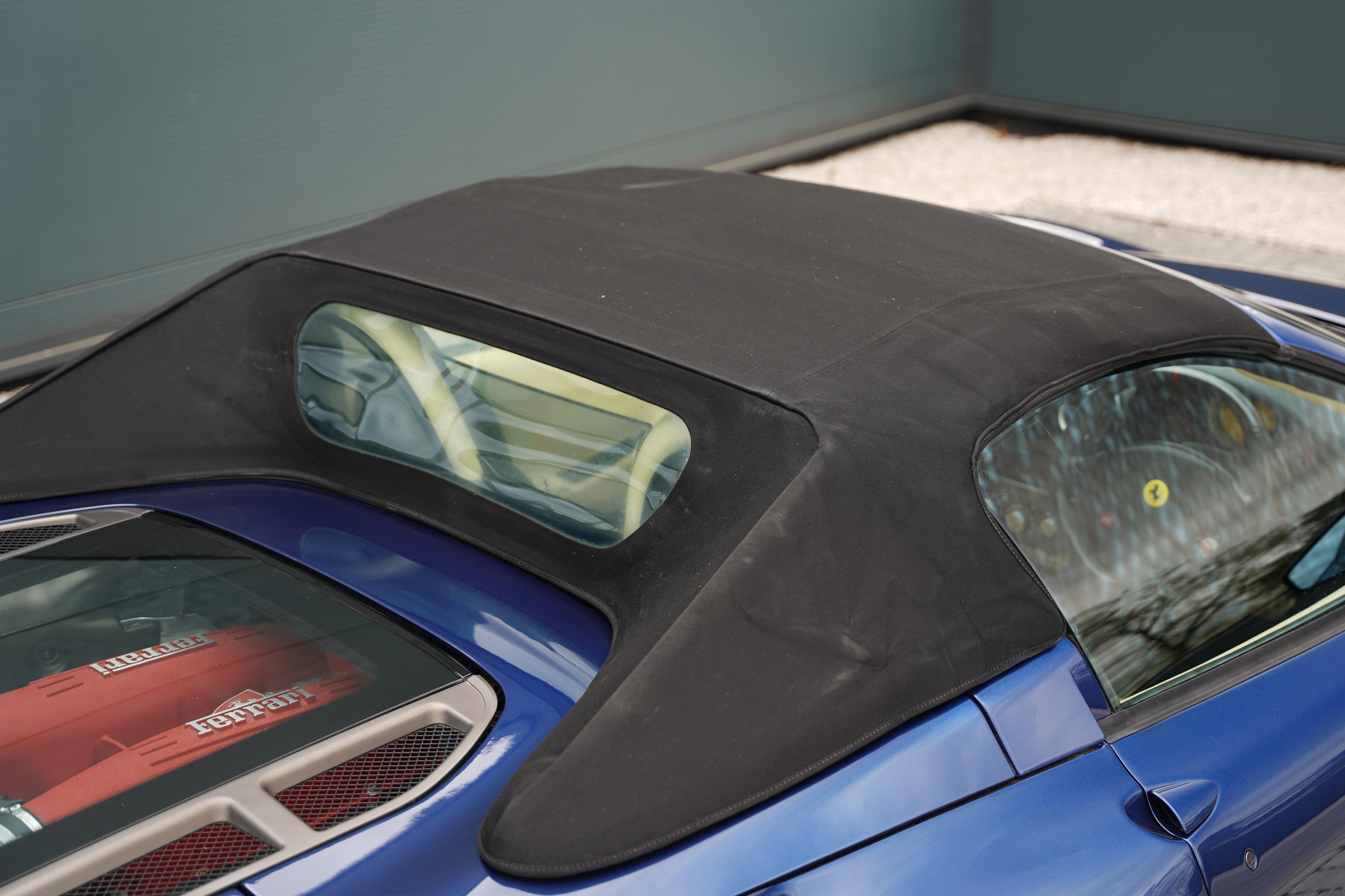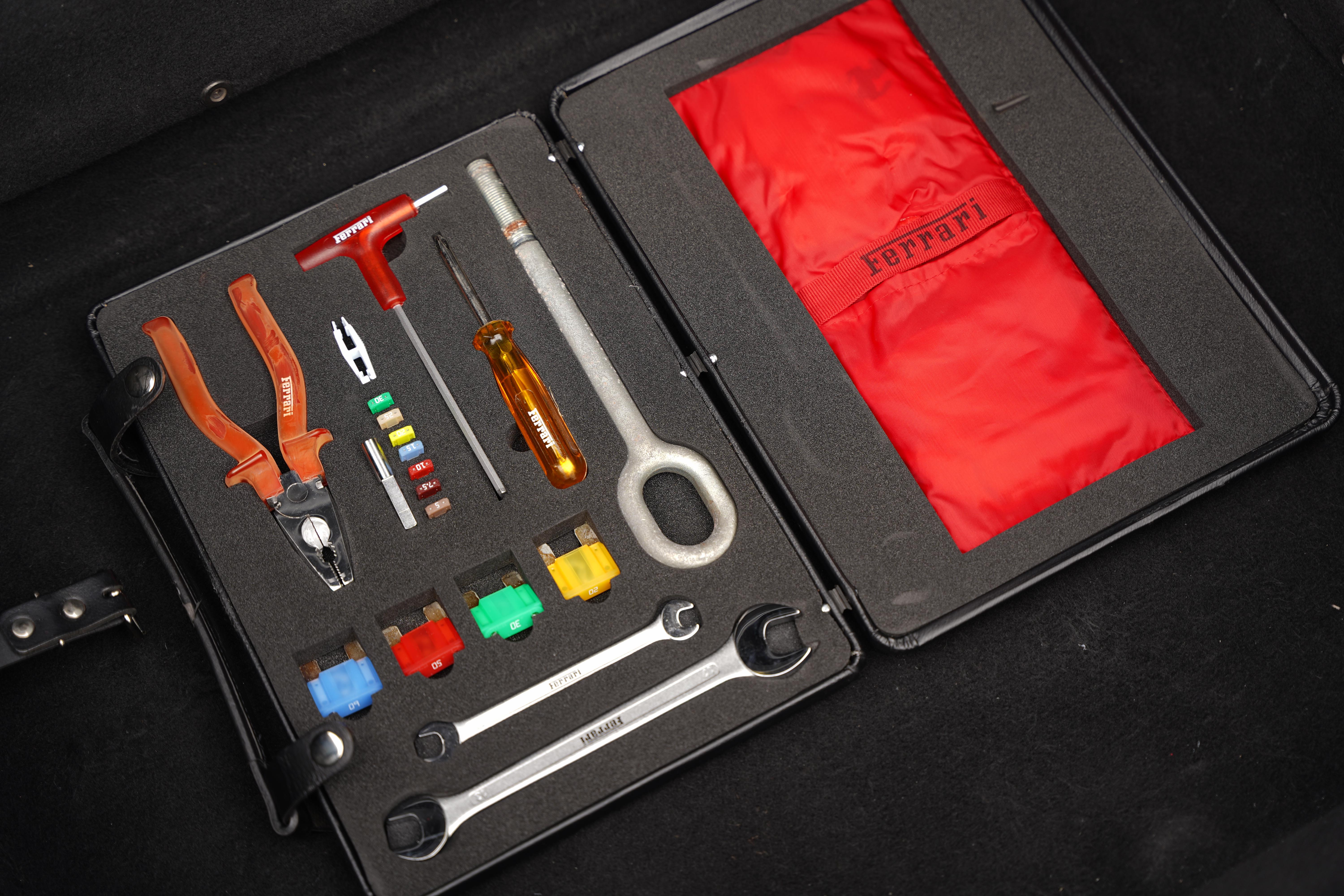 Having covered 26,500 miles in its lifetime, the car benefits from a well-documented service and maintenance history over the years with both main dealer and marque specialist stamps present in the book, supported by the accompanying paperwork. A recent clutch wear reading carried out by ourselves confirms wear of just 18.5%. Also rarely seen, this F430 features both toolkit and tyre compressor. The Nero soft-top presents in great condition and is fully operational.