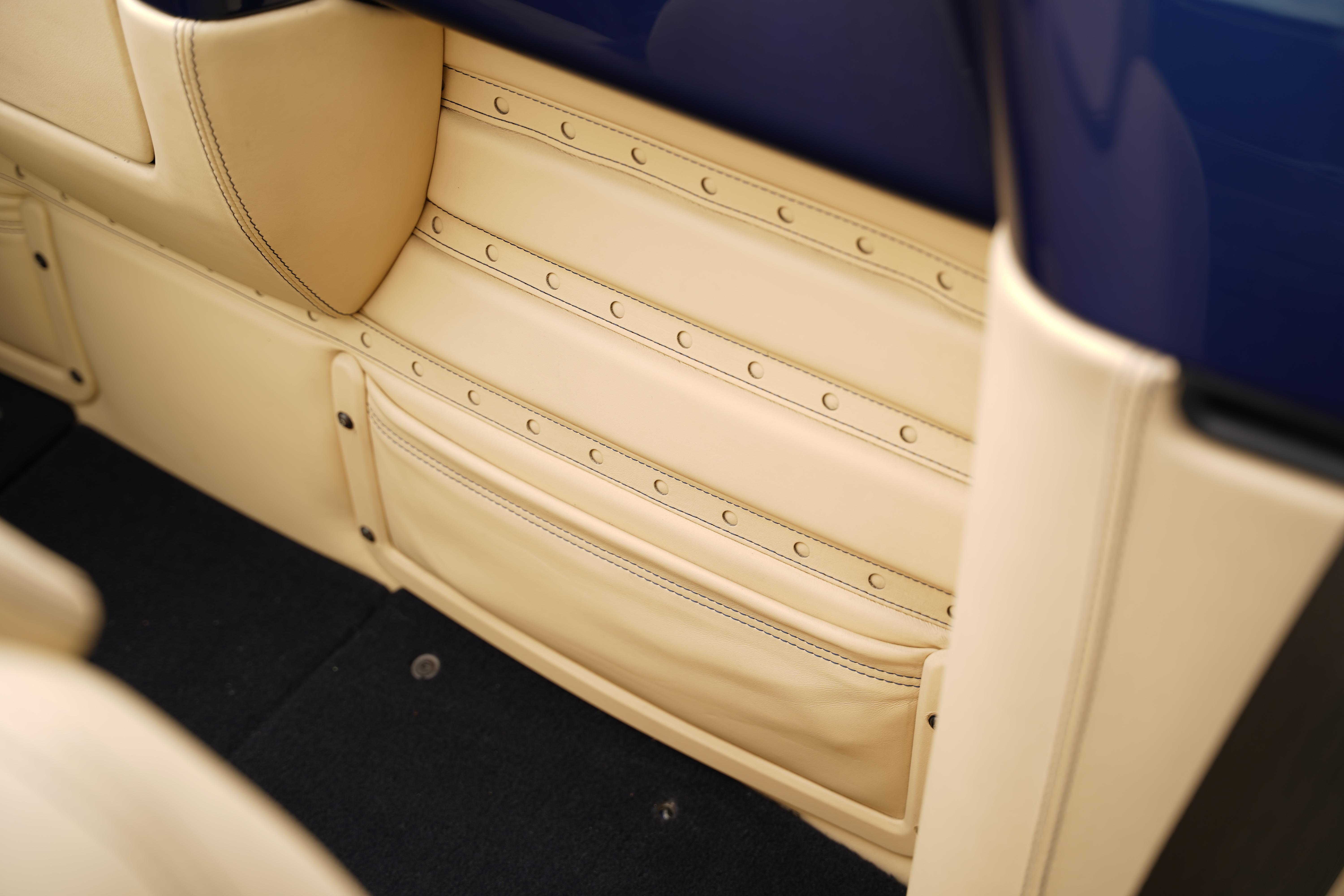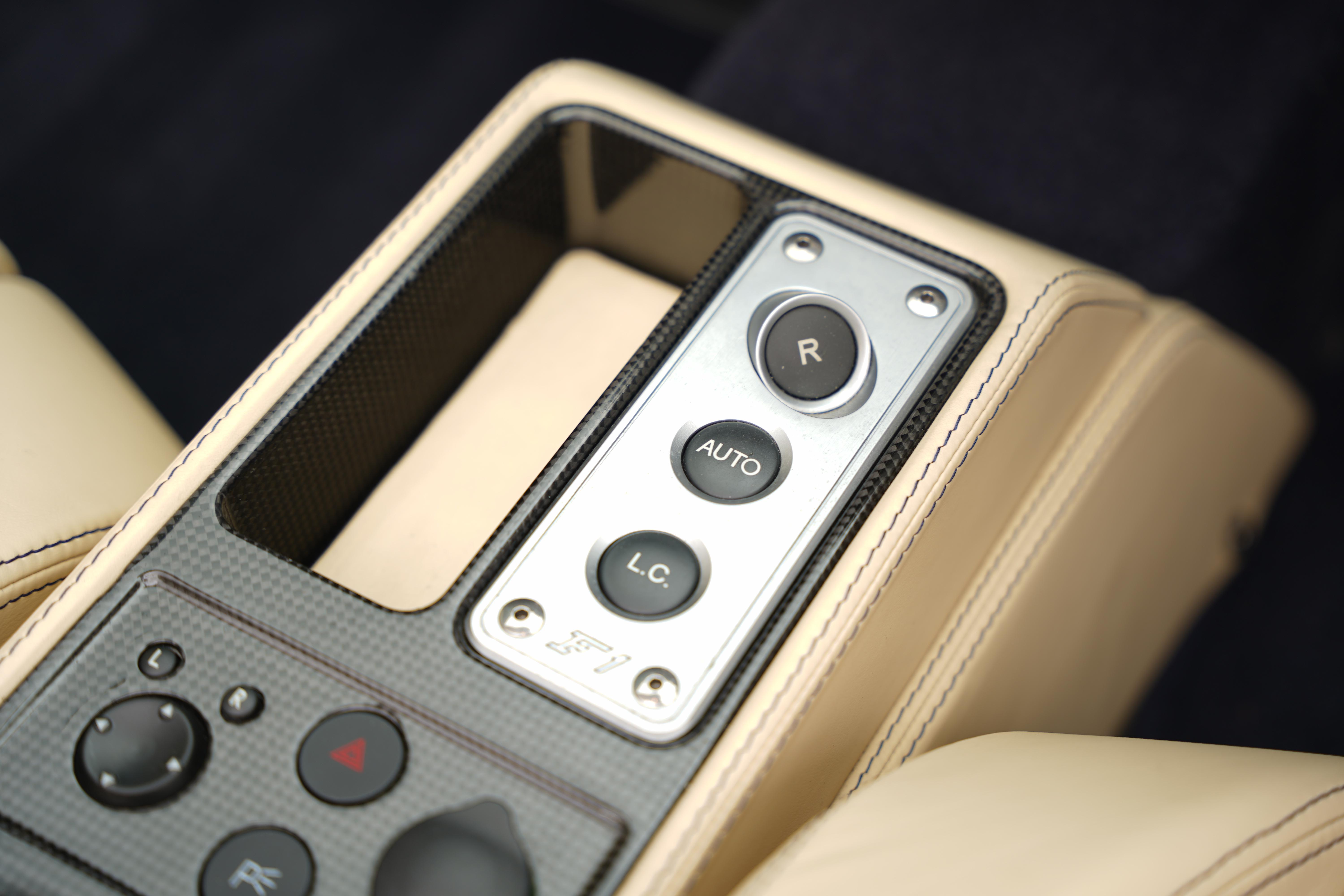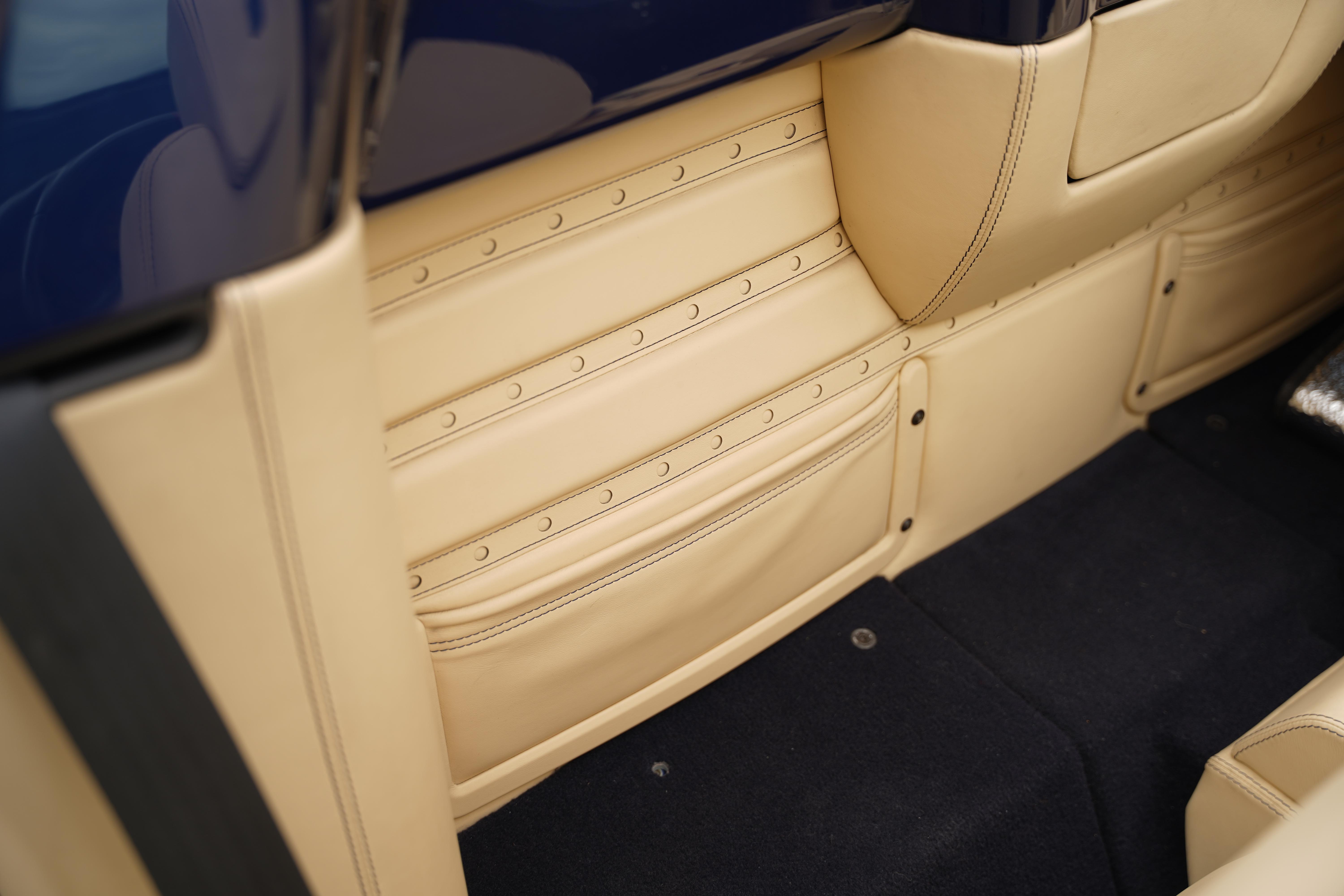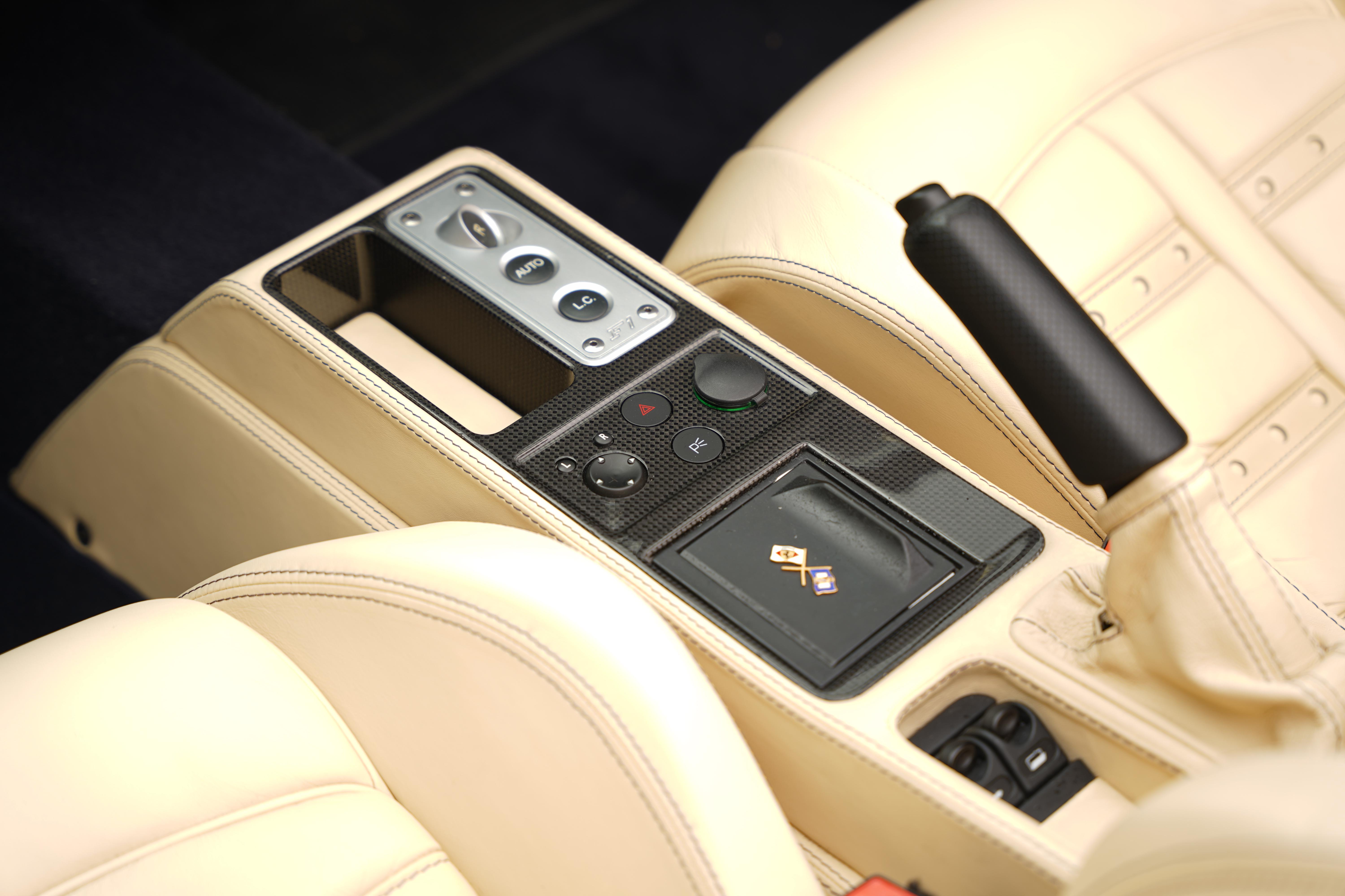 Notable specification includes the carbon fibre driving zone and lower cabin zone, Daytona upholstered rear bench in Crema, electrically operated seats, front and rear parking sensors and Giallo rev counter.