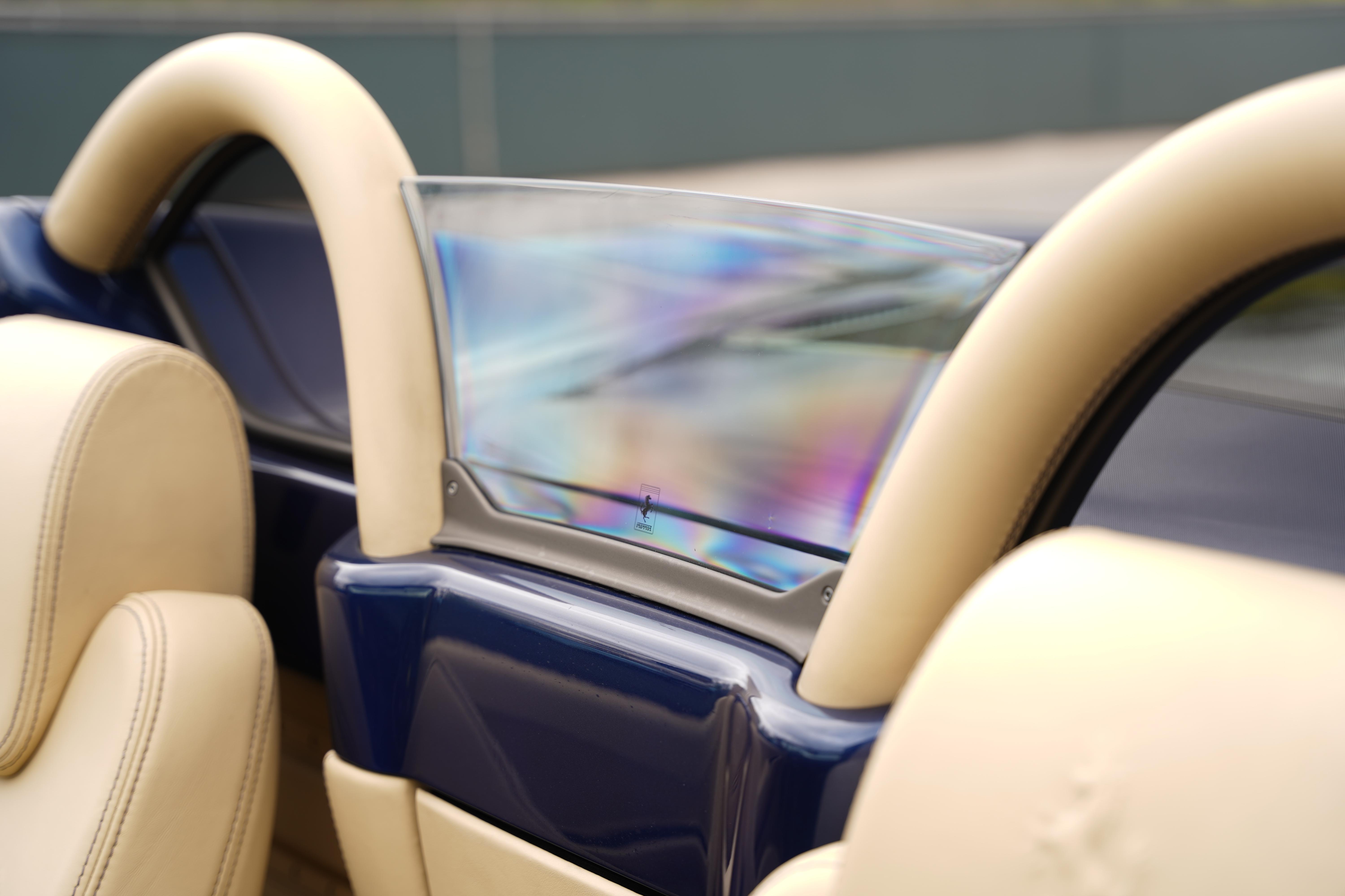 Finished in the lesser seen yet wonderfully elegant shade of Blu Tour de France, the car presents in a great condition throughout. Featuring the all-important Scuderia Shields to the front wings and perhaps most notably Challenge Stradale wheels specified from new, that are home to the Giallo brake calipers. The interior features Crema leather with a contrast blue stitch to the Daytona seats, black carpet and a black leather dash.