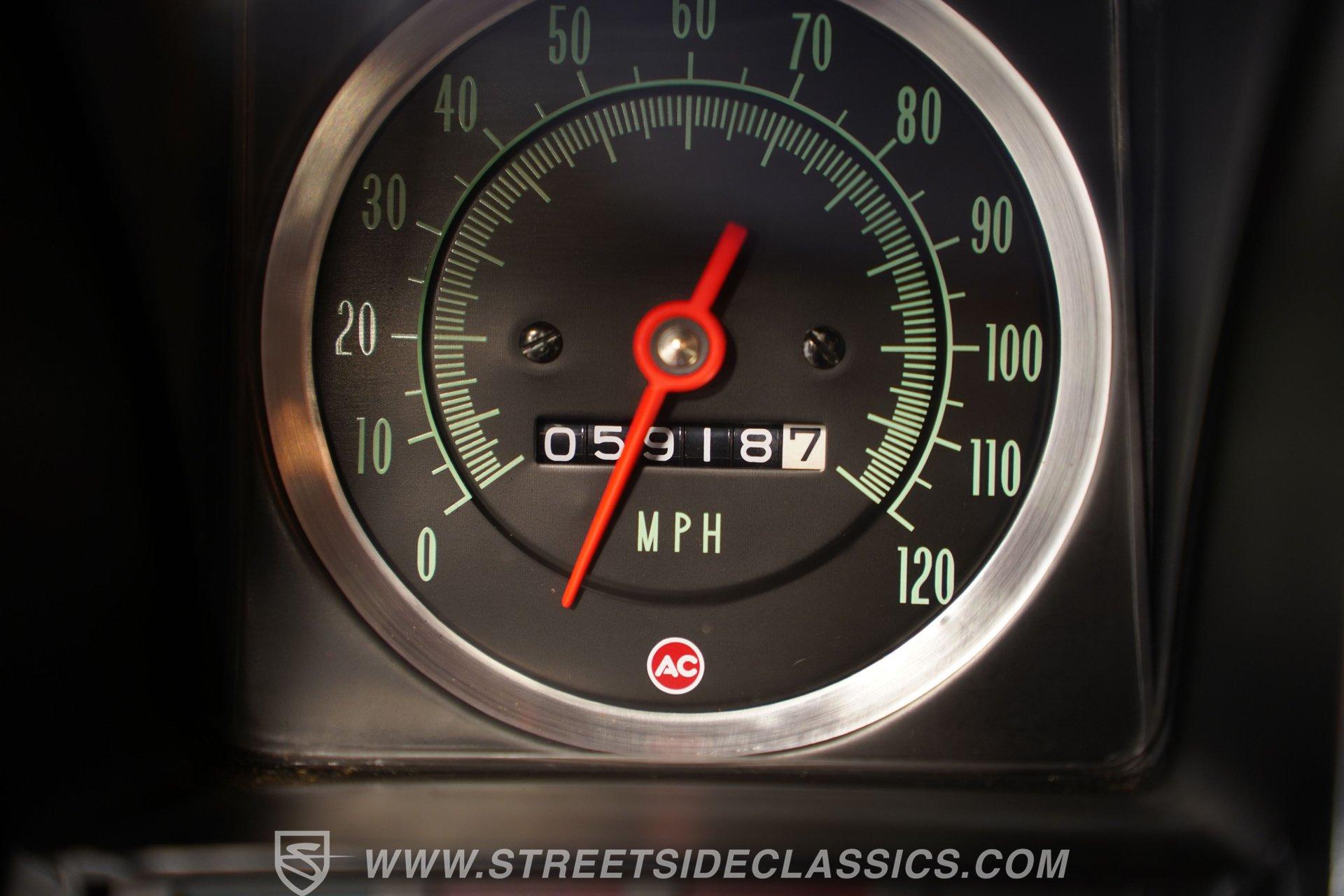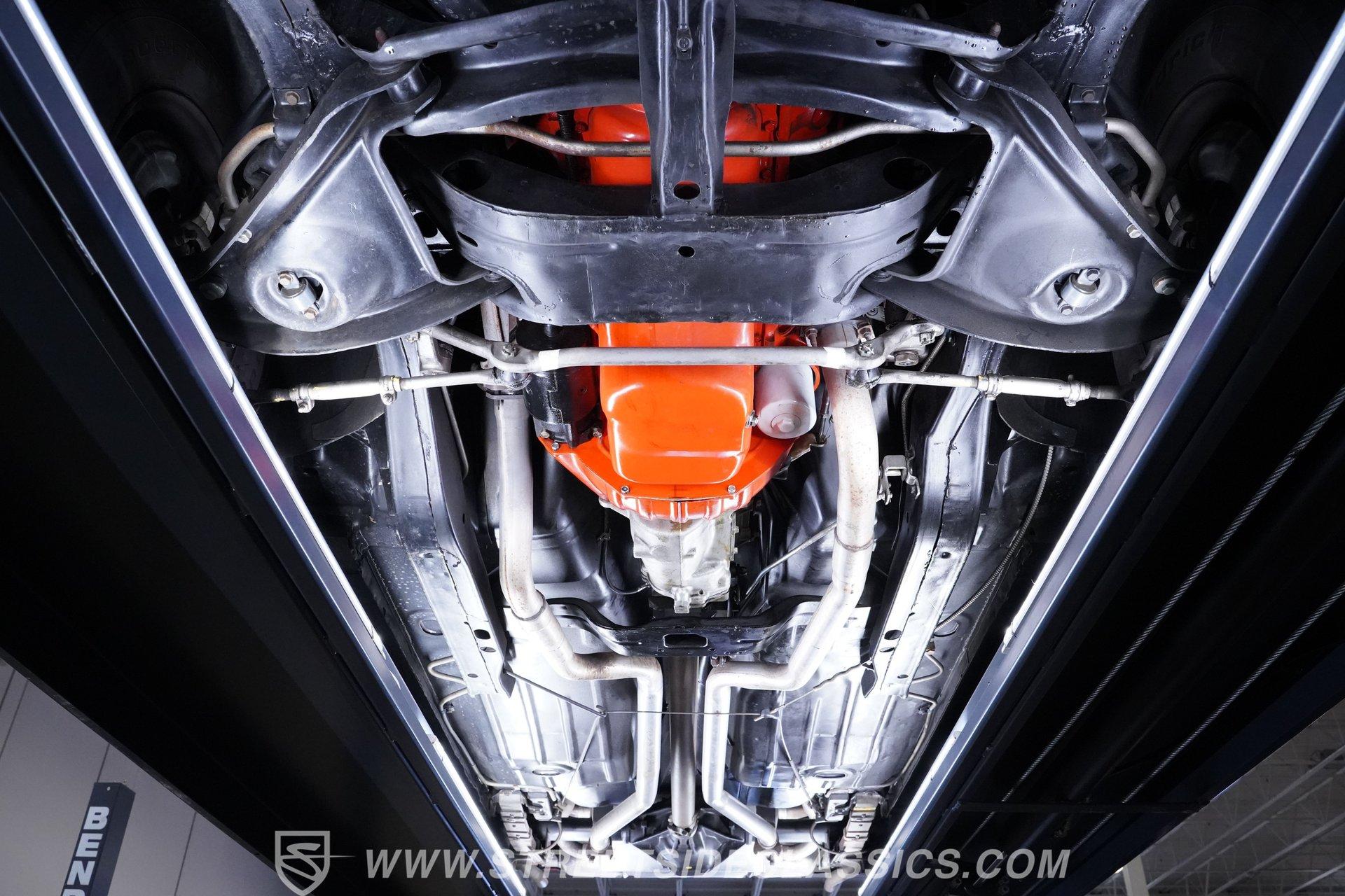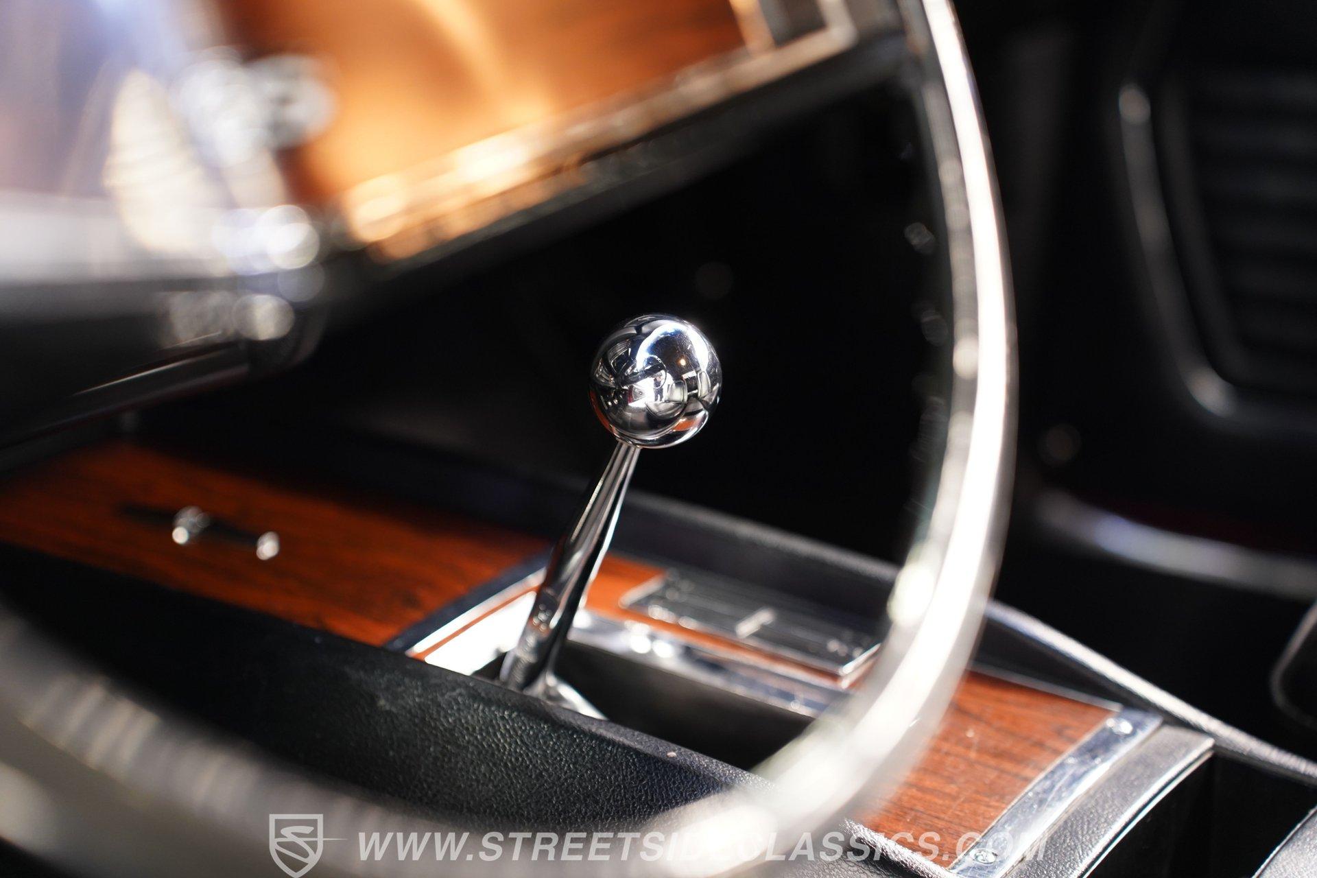Step inside and experience a cabin that blends factory-correct style with comfort and authenticity. The high-back bucket seats, finished in black vinyl, invite you to settle in for the ride, while the wood-accented center console, Hurst 4-speed shifter, and clean, clear gauges deliver a true period-correct feel. Subtle details like tilt steering, over-shoulder belts, and an AM/FM radio add to the enjoyment, ensuring every drive is as enjoyable as it is memorable.