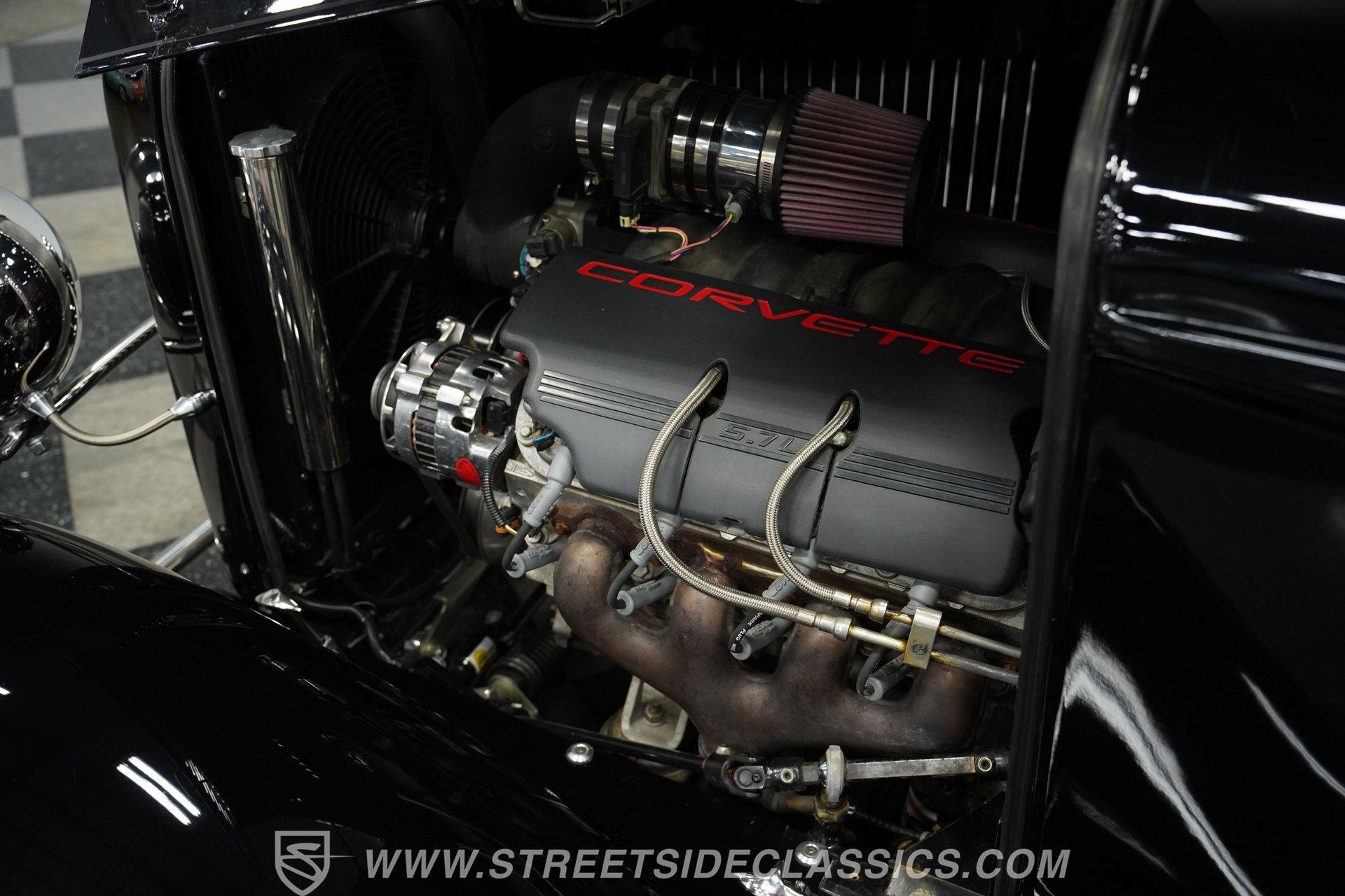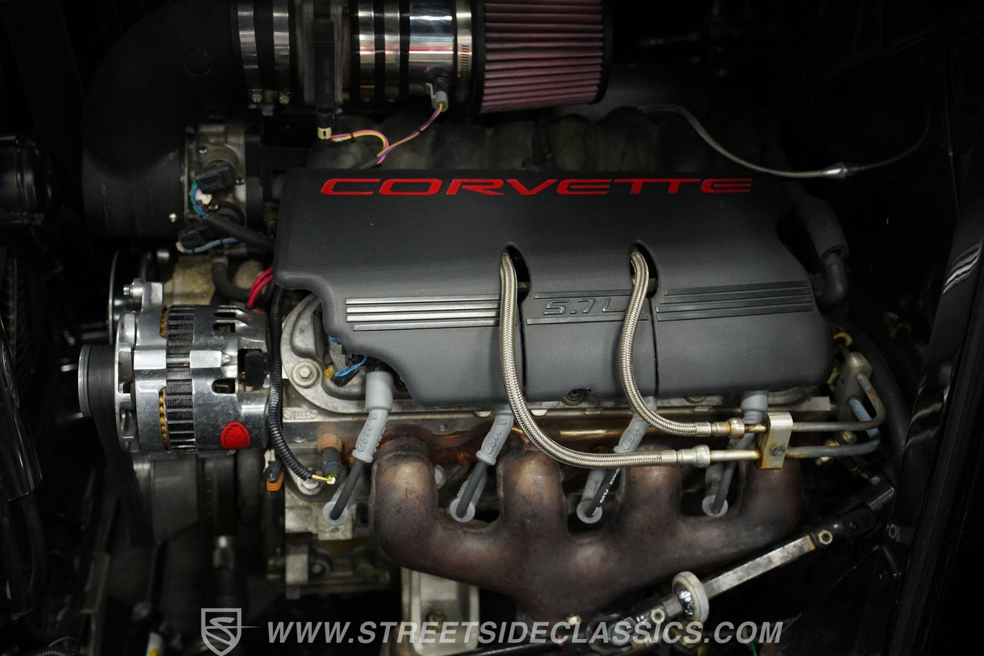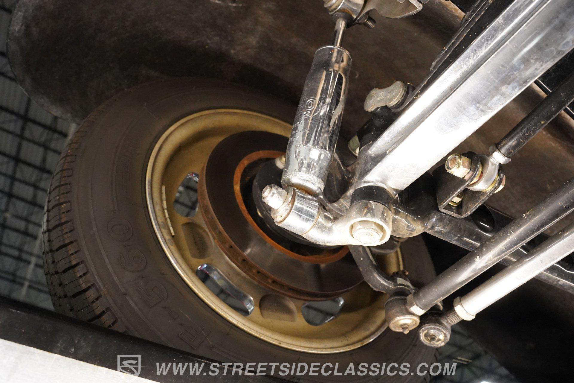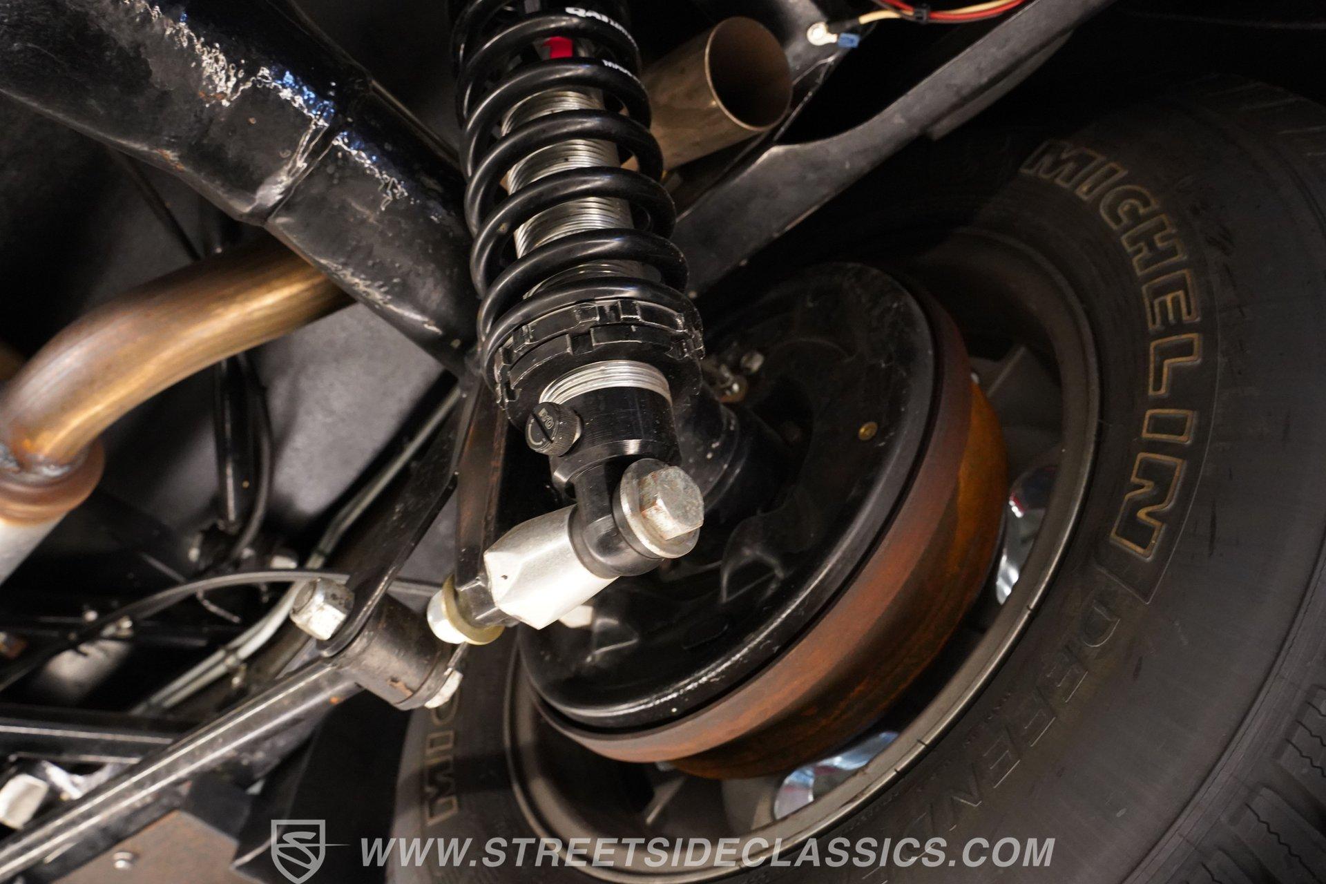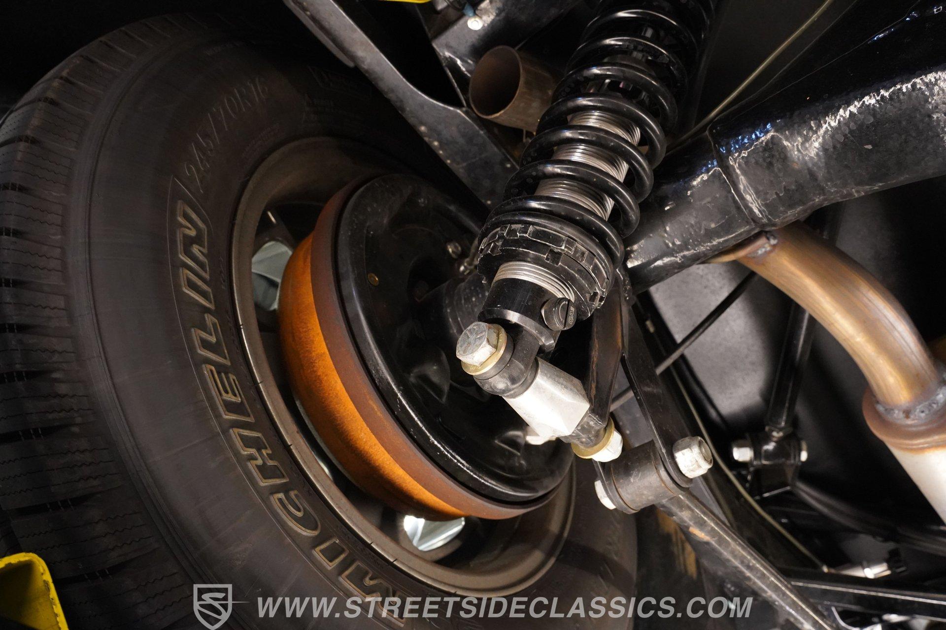 Under the hood is a 5.7 liter LS1 that resides in a very clean engine bay and is paired with a 4L60E four-speed automatic transmission. The rear is anchored by a Moser Ford 9 inch with 3.73 gears and quality bearings, while QA1 adjustable rear coilovers and a half rack and pinion type steering improve handling. The front uses a straight axle with leaf springs and the car stops with power disc front brakes and power drums in the rear.