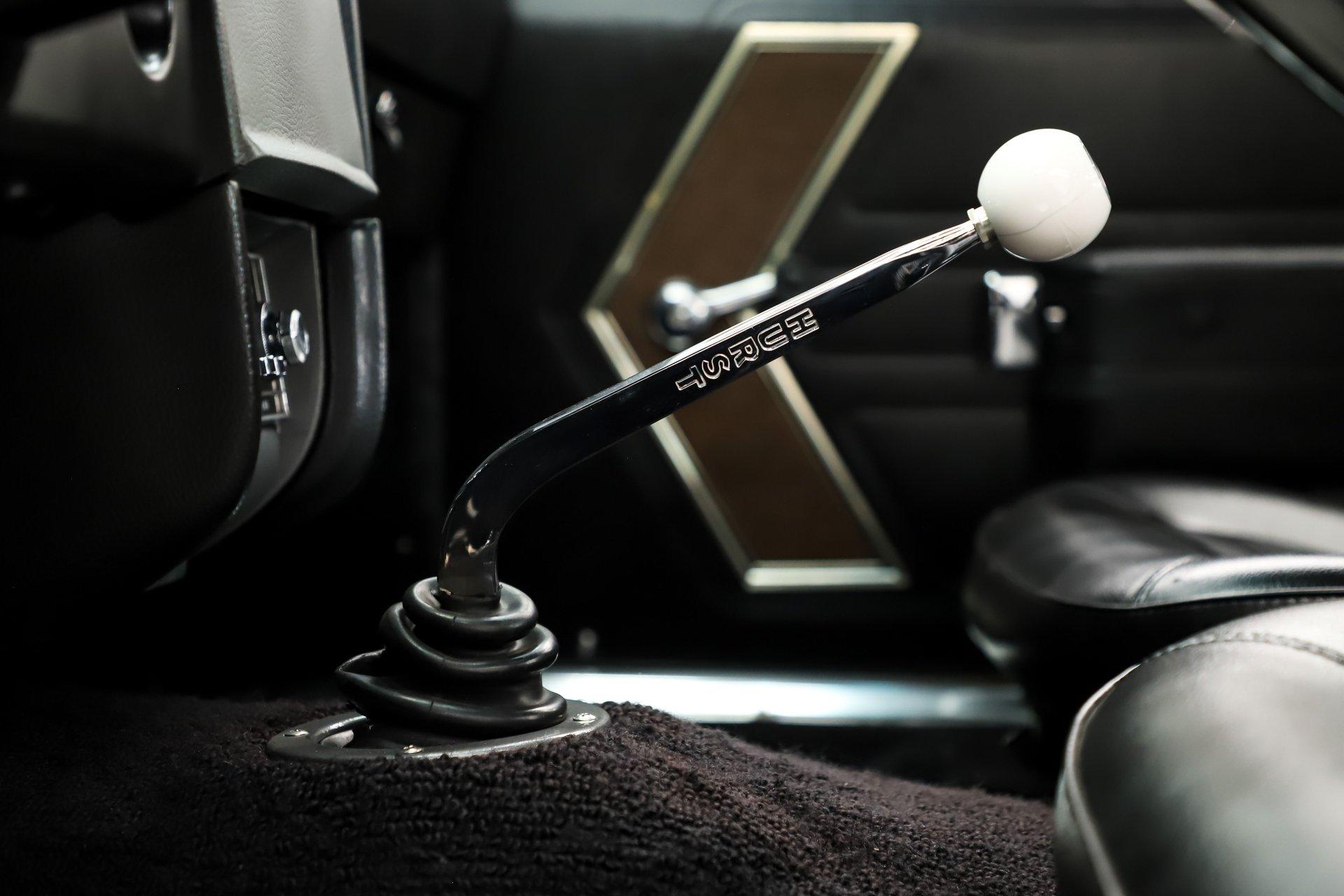 INTERIOR: The two-seater interior looks practically new. The carpet is fresh and fits beautifully front to back. The dash area is exceptionally clean with no splits in the pad, and it features a factory optional tachometer and AM/FM radio. The door panels and armrests are in great shape. The seats have been re-cushioned and upholstered, and both recline as they should. The plastic trim, headliner, and visors all present very well. The original steering wheel is showing just a couple cracks in the rim. The best feature? The Hurst 4-speed shifter rising from the floor-pure muscle car attitude.