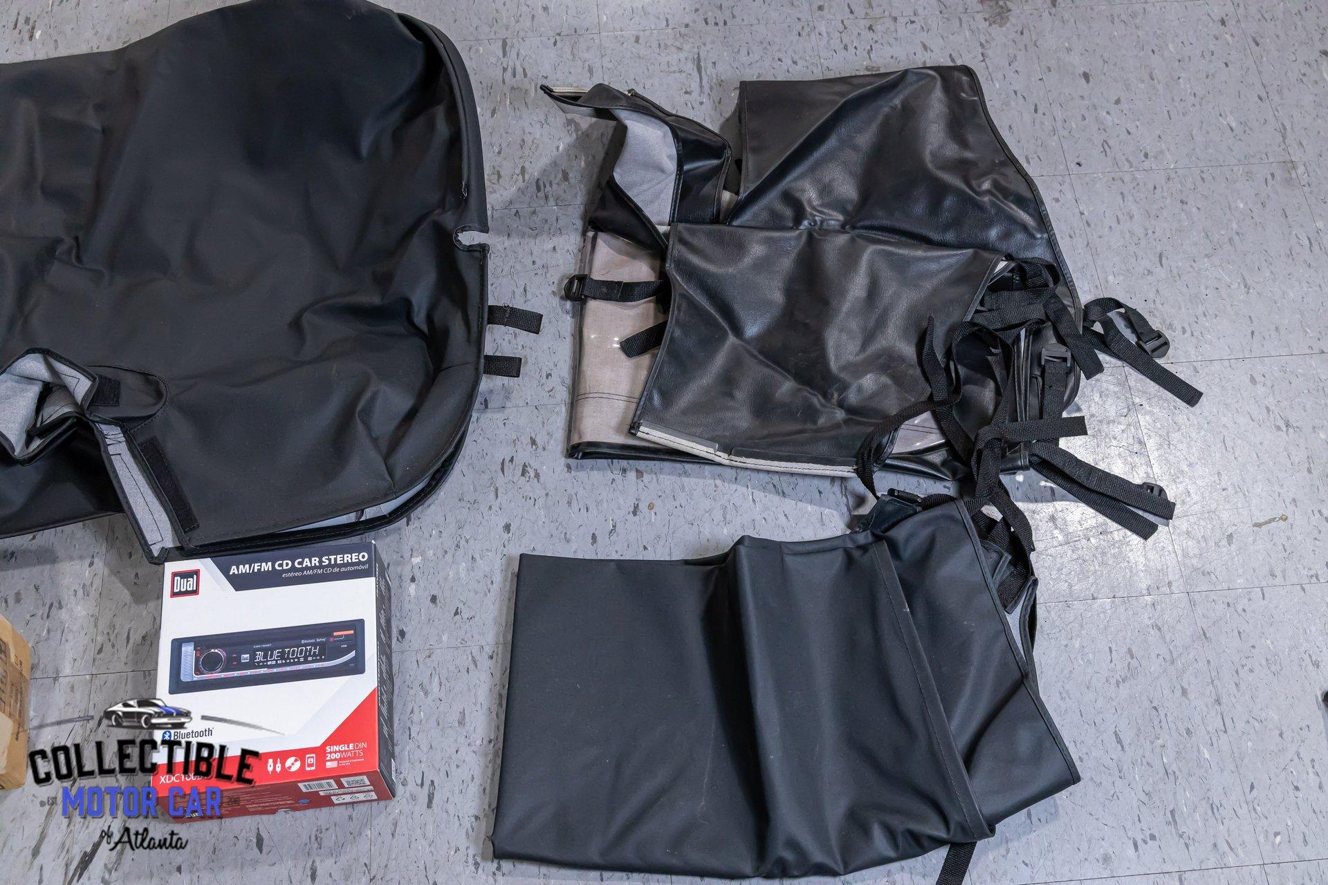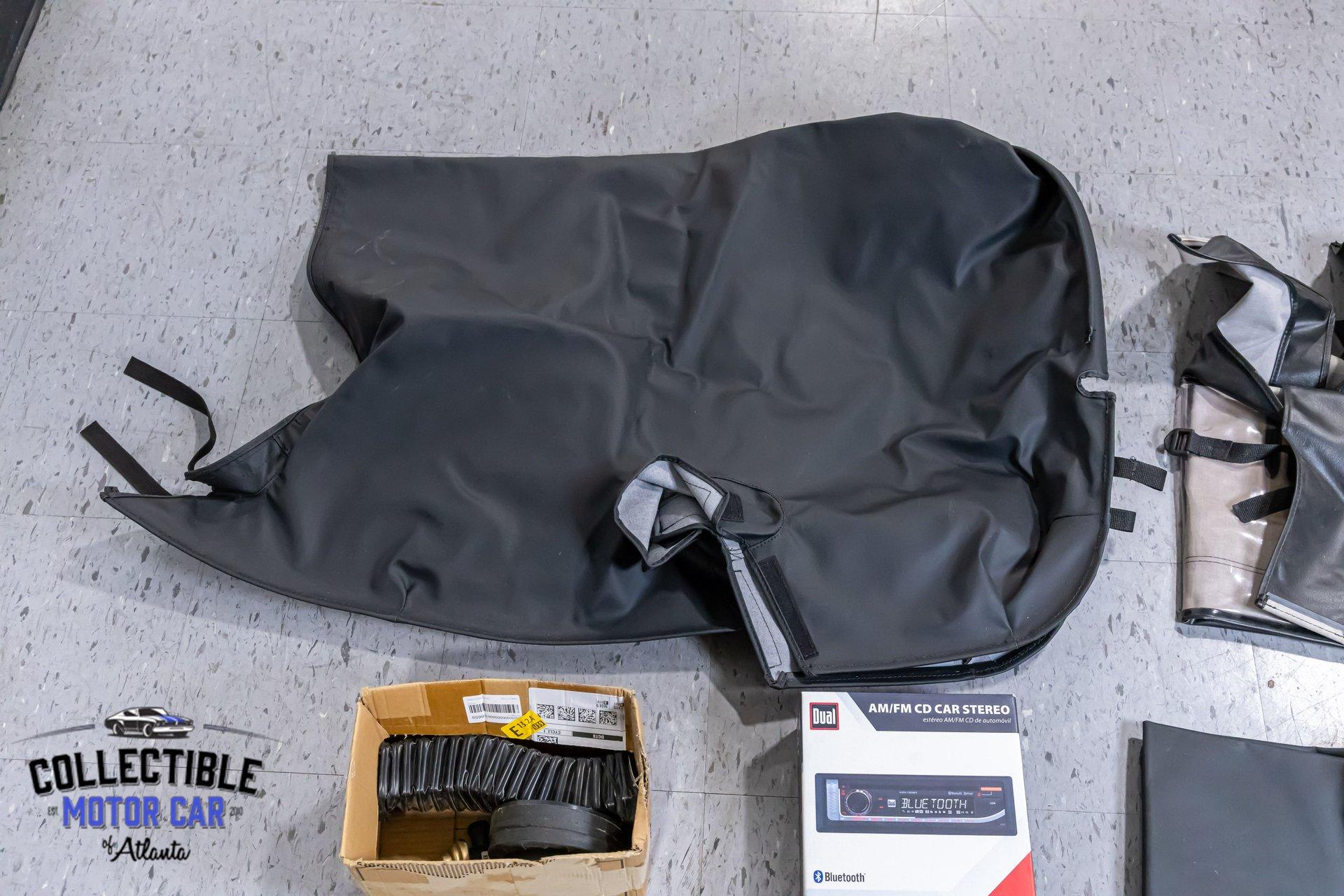 The photos show the Jeep fitted with a black hard top, which pairs perfectly with the red body and black trim. It gives the Jeep a sharp, finished look while also adding year-round usability. This one also includes the open-air accessories that CJ buyers love to see: a black bikini top, black rear tonneau cover, and black wind jammer, giving the next owner multiple ways to enjoy the vehicle depending on weather and preference.