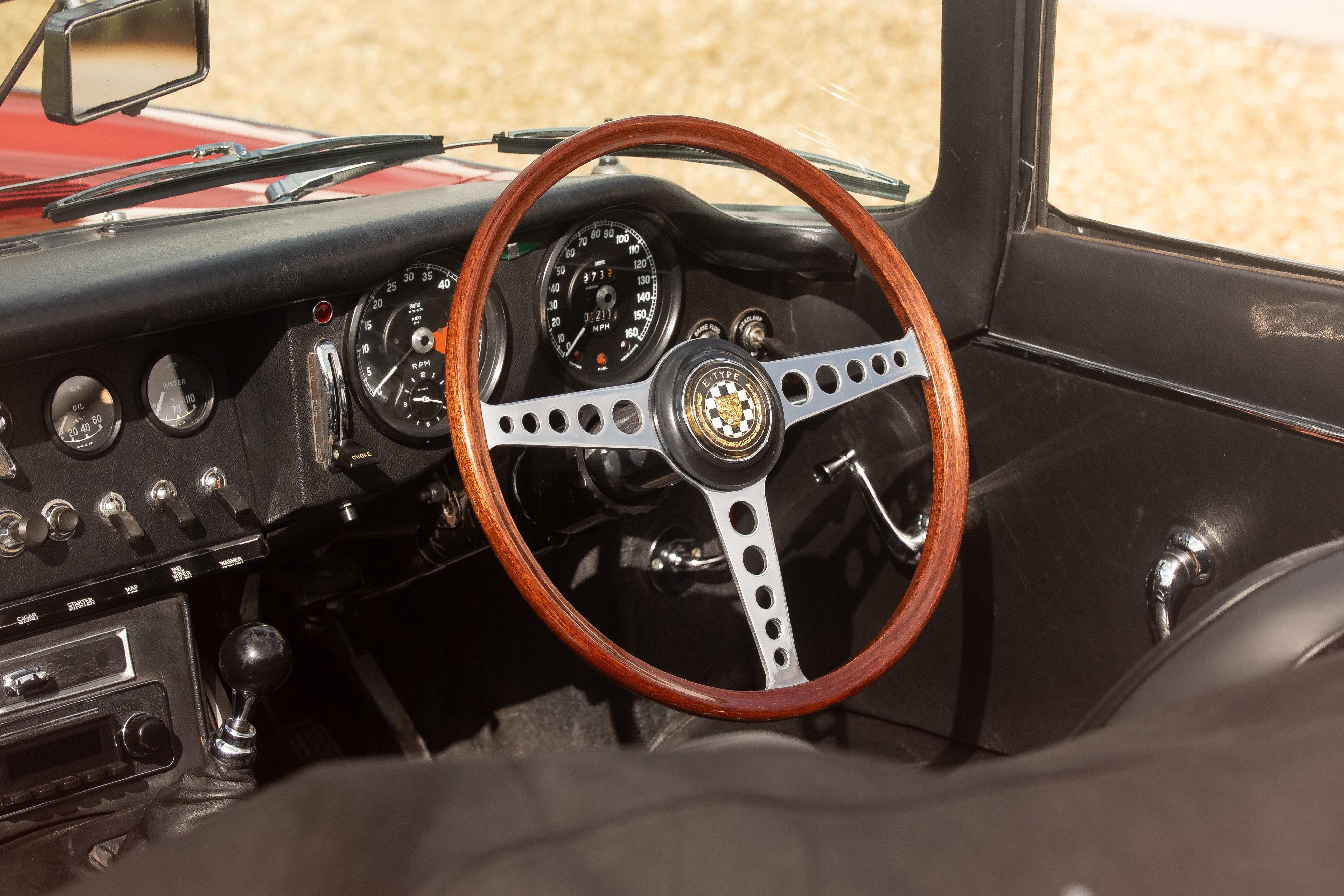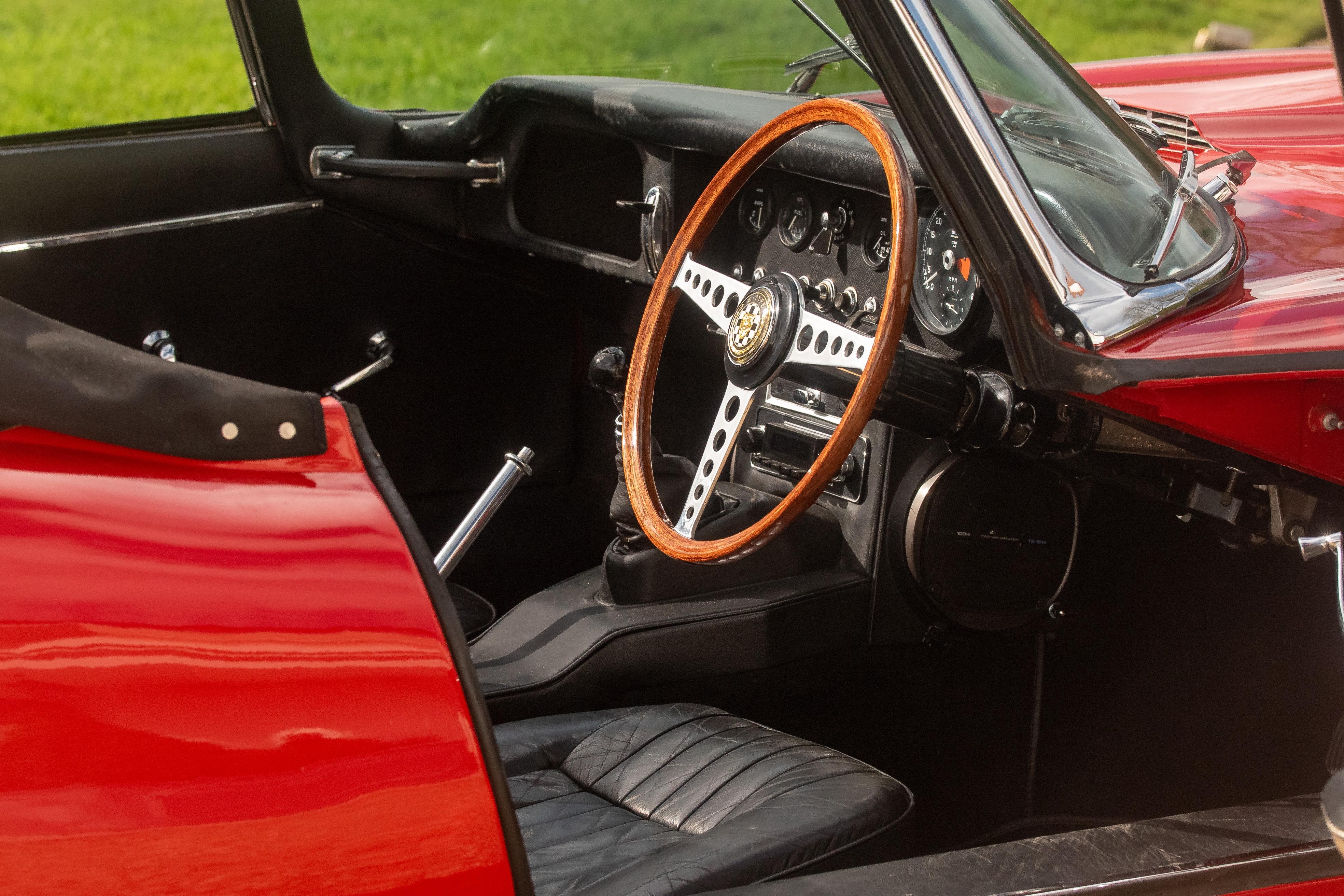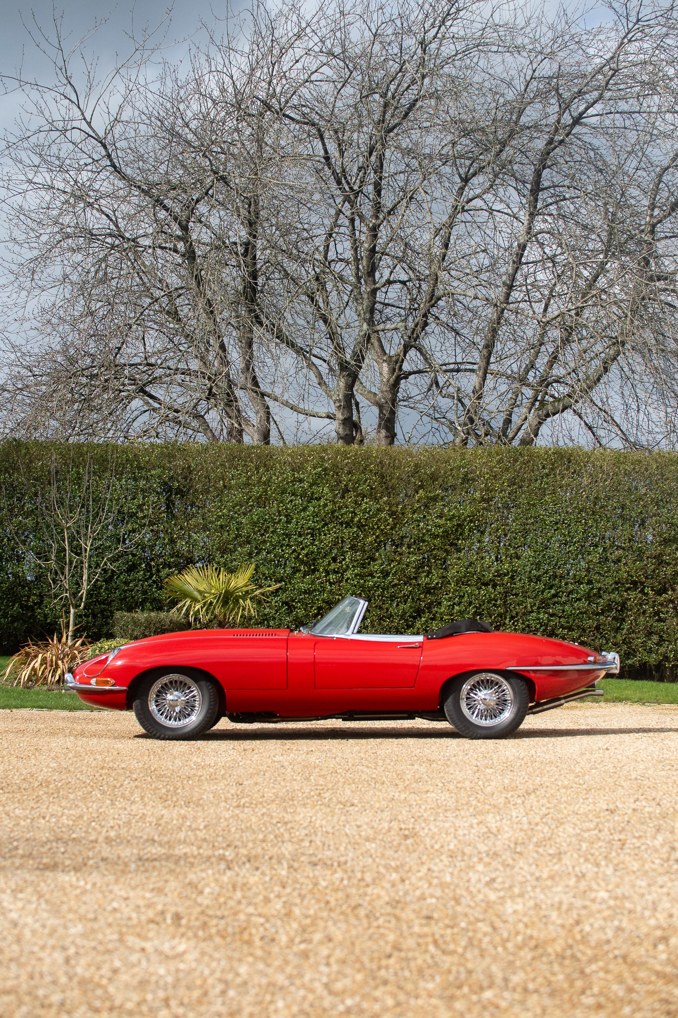 This Jaguar E-Type 'Series 1½' is presented in Signal Red with black leather interior and presents as a beautifully maintained and comprehensively restored example of one of Britain's most iconic sportscars. This car has benefited from a documented professional restoration costing in excess of £30,000. Notably, it was originally supplied by Coombs' Chief Engineer, Ken Bell, a fascinating and desirable provenance supported by invoices on file. From 1993 until 2021, the E-Type was cherished by a single keeper, a near 30 years-ownership contributing to its well-preserved condition and continuity of history.