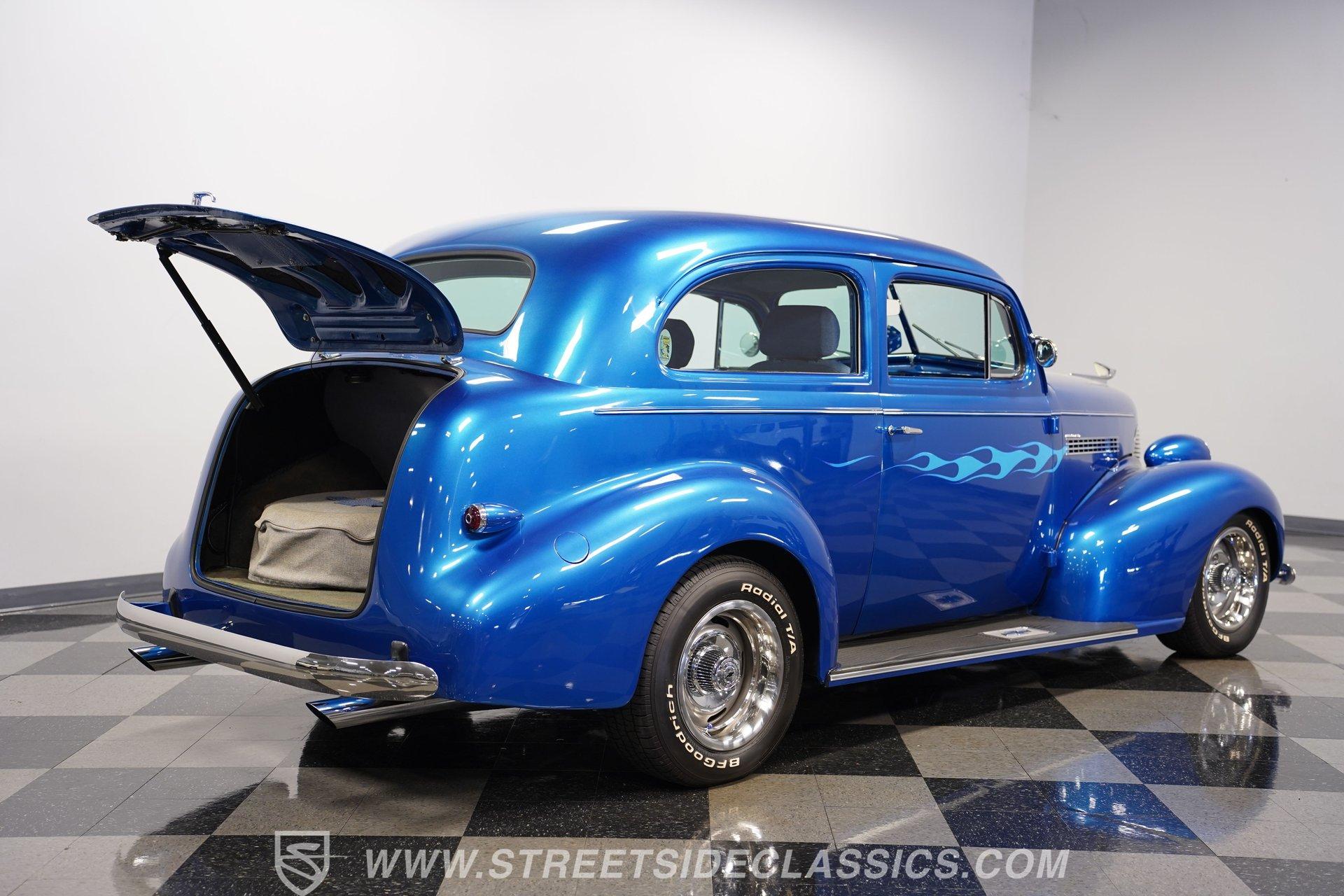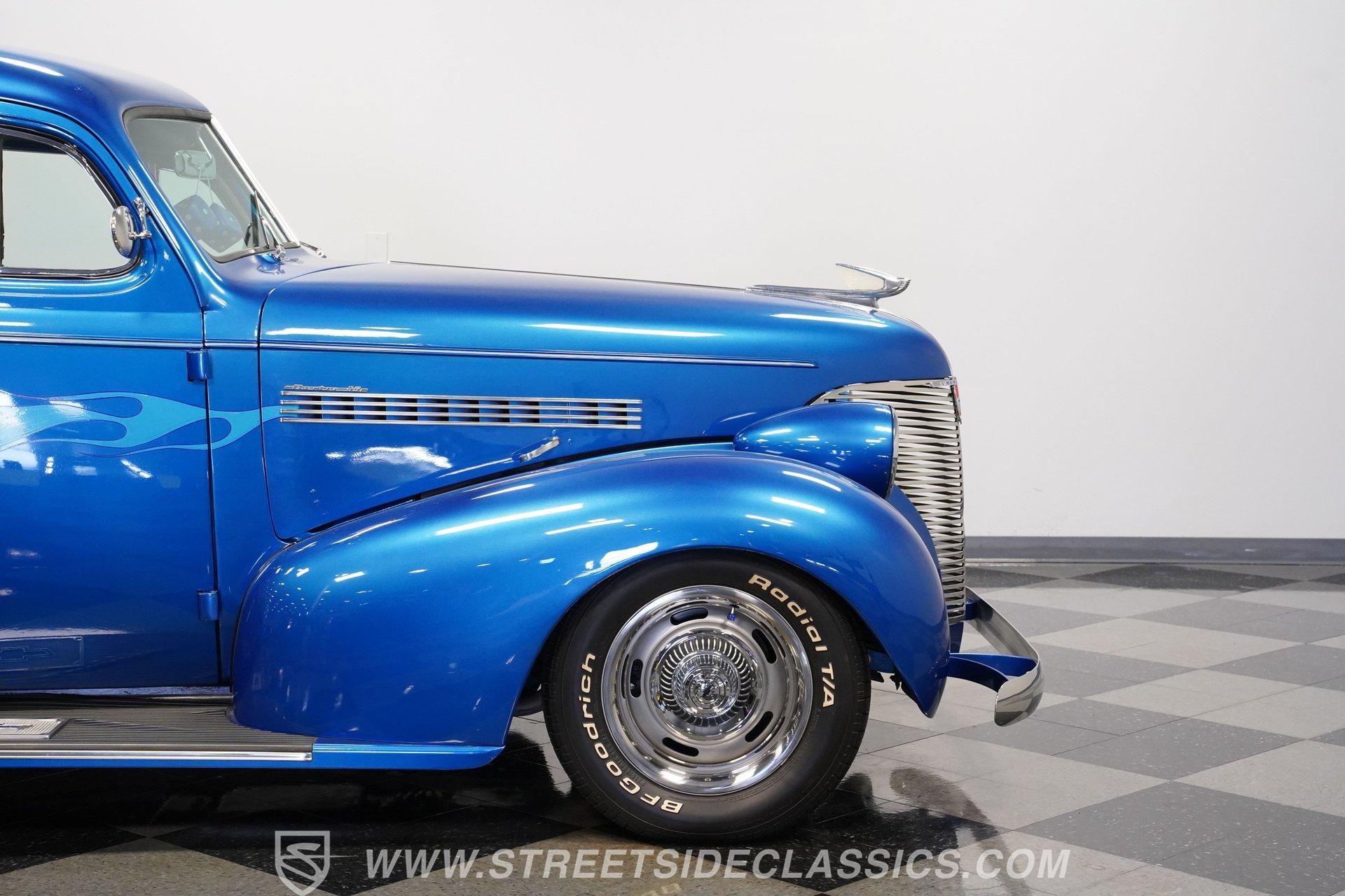 With some nice aesthetic modifications added to its already considerable native curb appeal, this 1939 Chevrolet Master 85 2 Door Sedan is the embodiment of pre-War automotive stylishness. It's draped in striking Pearl Blue paint that suits it perfectly, with accompanying brightwork that really looks great. And check out that prominent front grille. Take a lap around this well-configured classic, and you'll notice its consistent body panel alignment, with doors that open and close smoothly and no sagging to be found. Better still, this visual awesomeness is combined with a running condition that's truly hard to come by, so this Chevy is ready to enjoy just as soon as you bring it home.