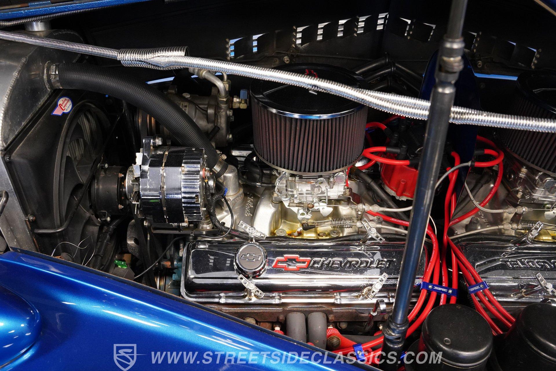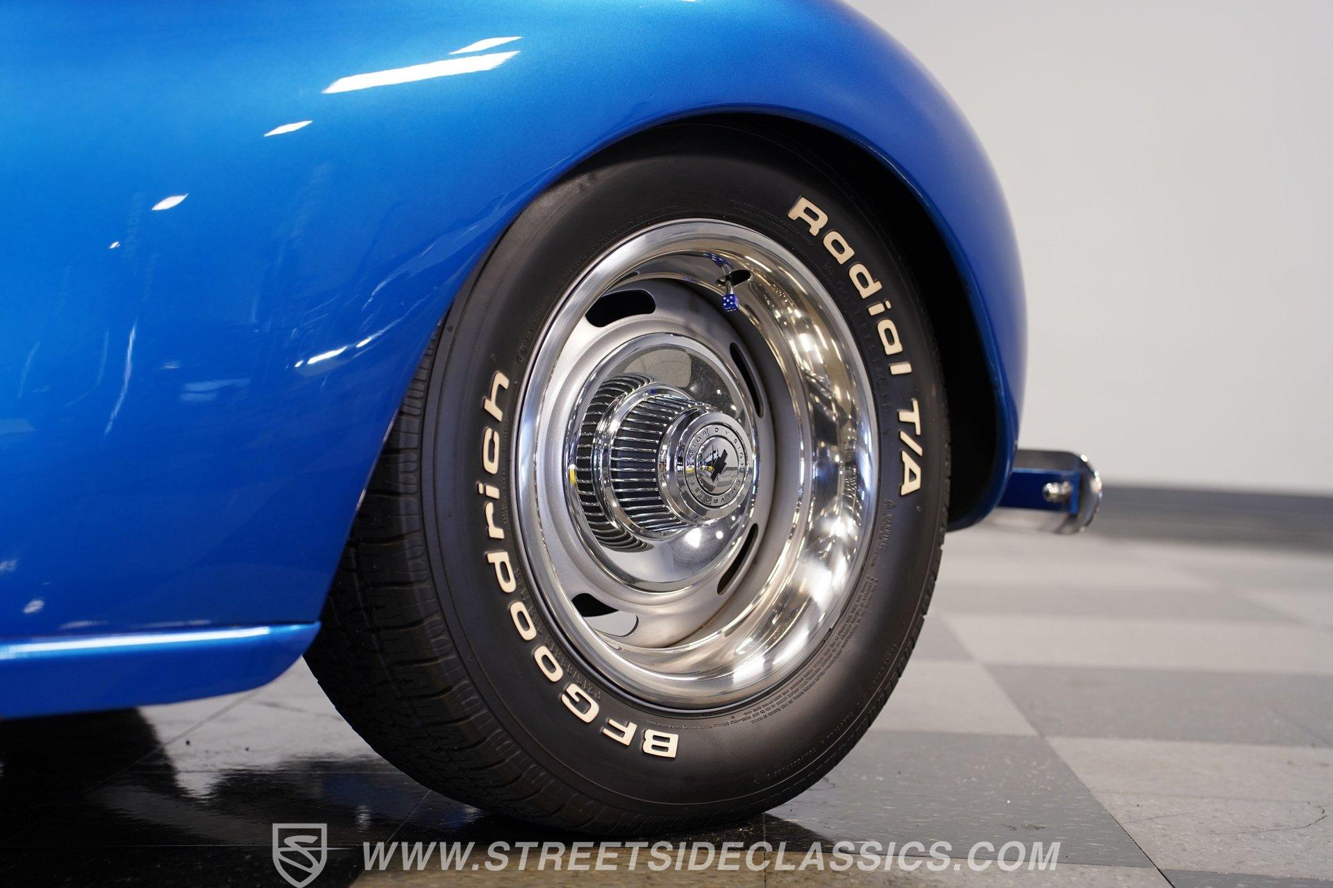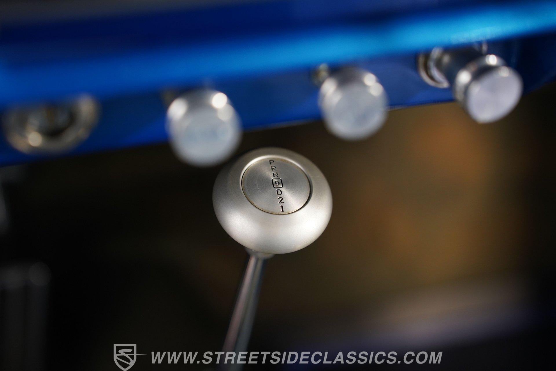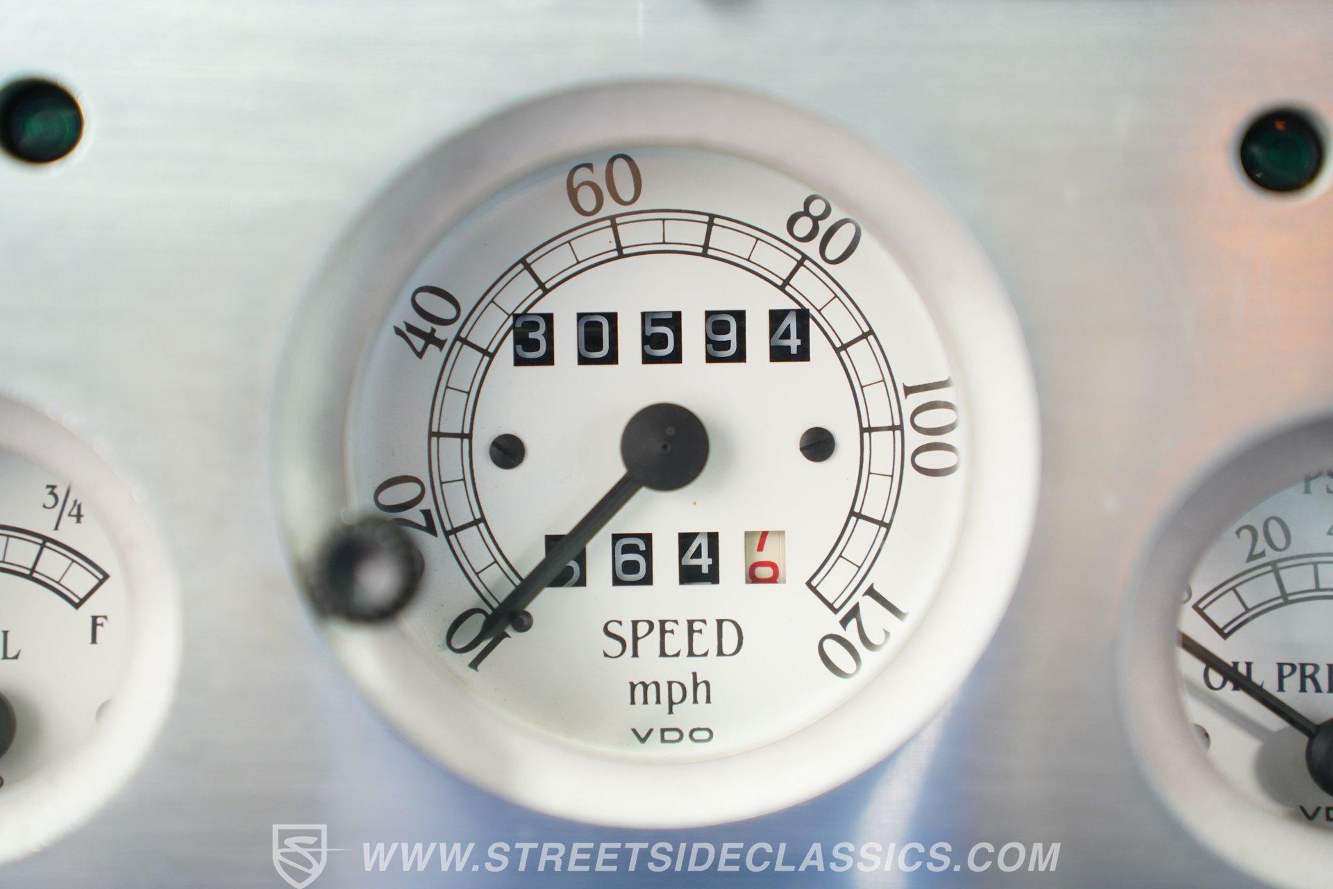 The blue cloth interior is in good shape, and you can see that it was configured with comfort in mind. Both rows of bench seating, sourced from a decidedly more modern car, are well-padded and because of its generous proportions, there's plenty of shoulder and leg room inside these doors. The carpeting below is in matching condition and is punctuated with a set of Chevrolet floor mats that add a nice finishing touch. Up front, the color-matched dash area harbors a set of VDO gauges in the instrument cluster with appropriately antique-style graphics, surrounded by an aluminum bezel that adds some contrast to its surroundings. An aftermarket Jensen AM/FM/CD stereo has been added to provide the soundtrack for your journeys.