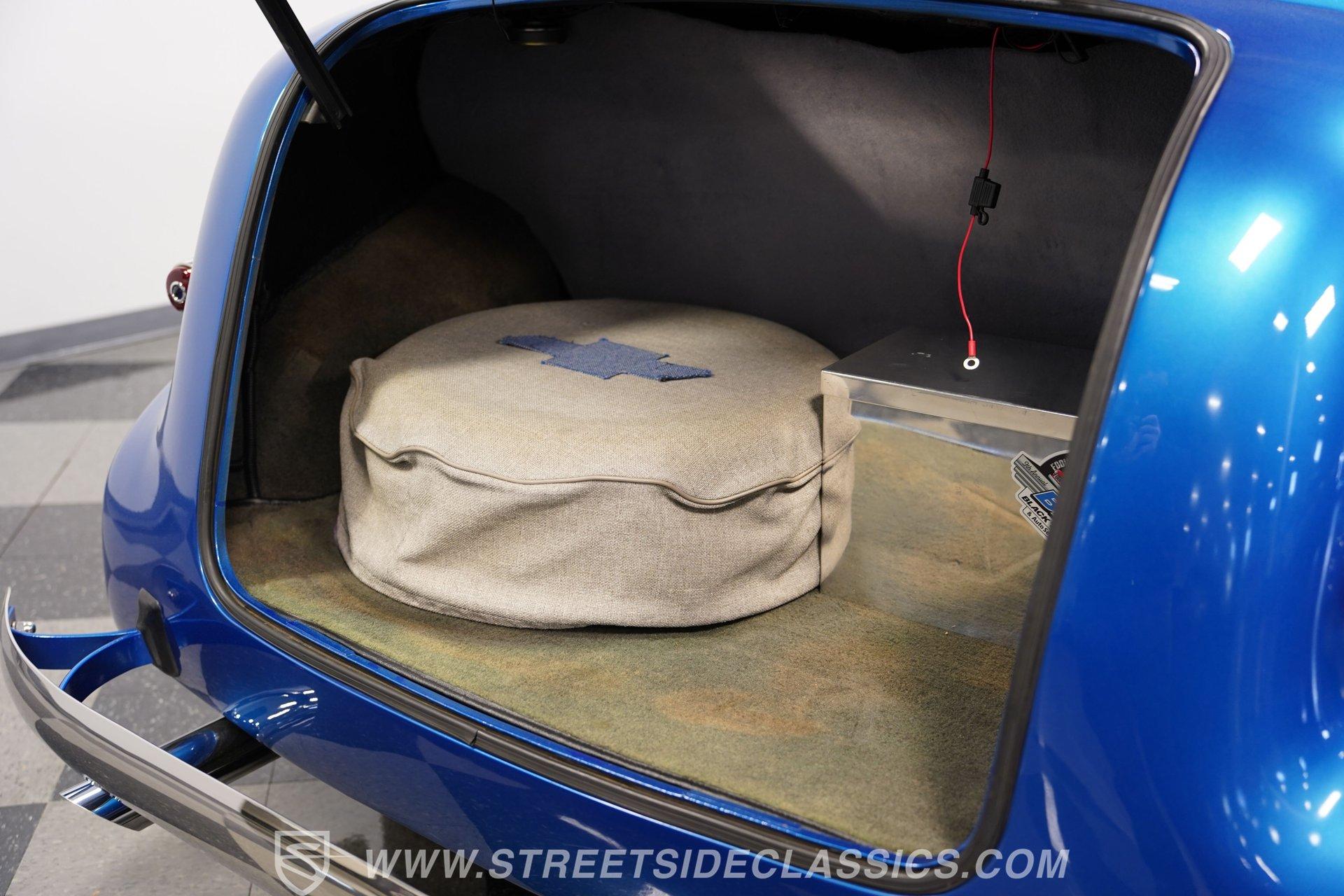 Chevy's Master 85s have long been revered for their style, but this one also offers a level of drivability you won't easily find among its counterparts. Its 350-cubic-inch V8, armed with an Edelbrock four-barrel carburetor and aluminum intake manifold, fires up right on cue and packs plenty of power to make for a smile-inducing experience behind the wheel. Its street manners are beyond reproach, as well, as it features a four-speed automatic 700R4 transmission with an overdrive gear for low revs at highway speeds. Power rack and pinion steering makes for easy maneuvering and power brakes that position discs in front bring prompt, low-effort stops. Up front, a sizable aluminum radiator pairs with dual electric fans to ensure that this vintage Chevy doesn't lose its cool in demanding driving conditions as it cruises on its set of 15'' Rally wheels, wrapped with BF Goodrich T/A radials that still show plenty of tread.