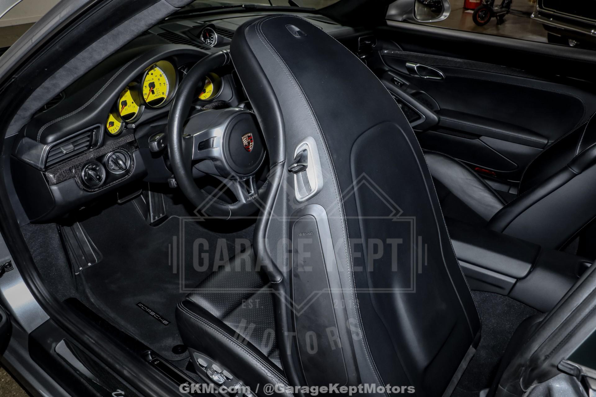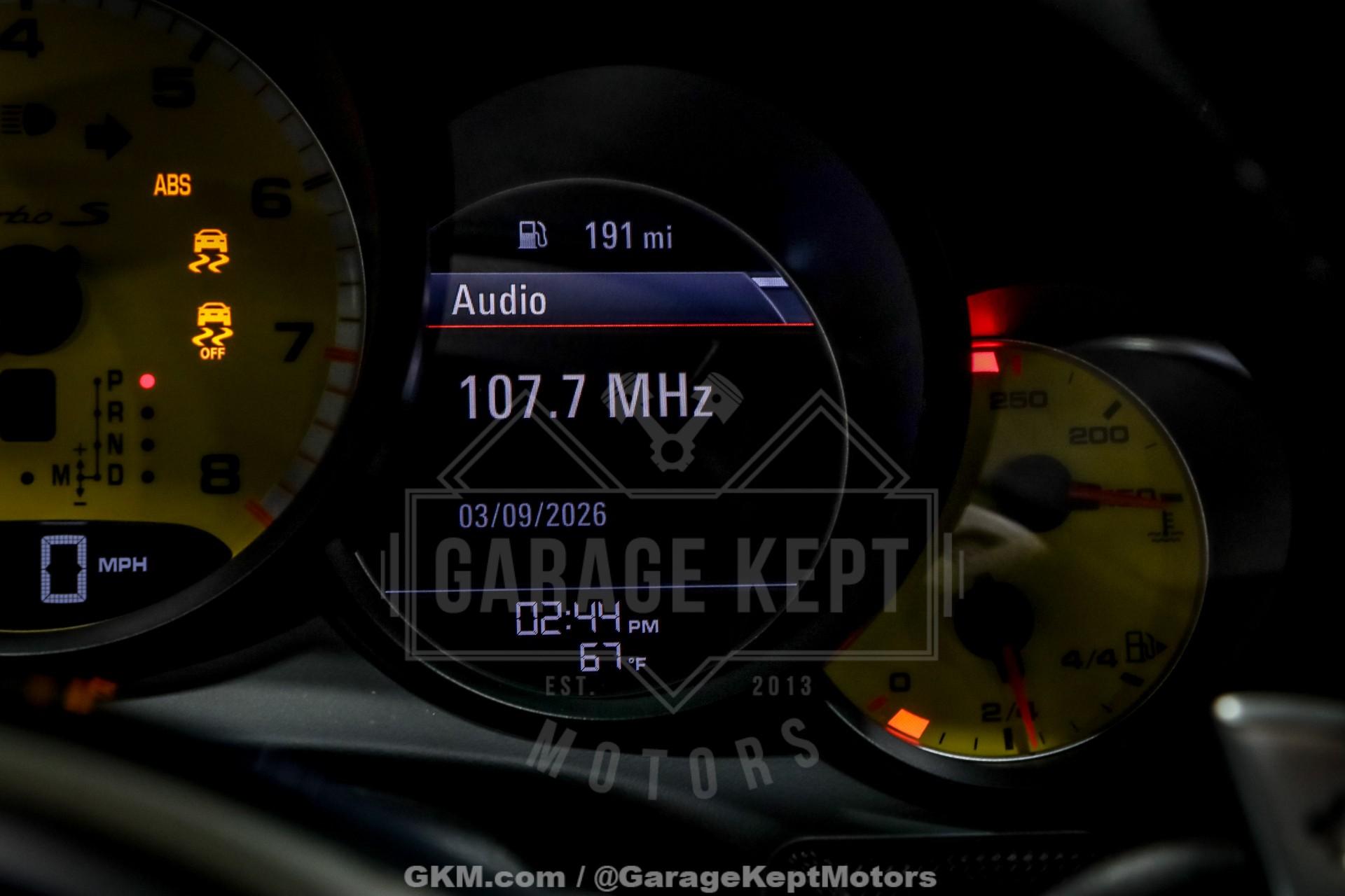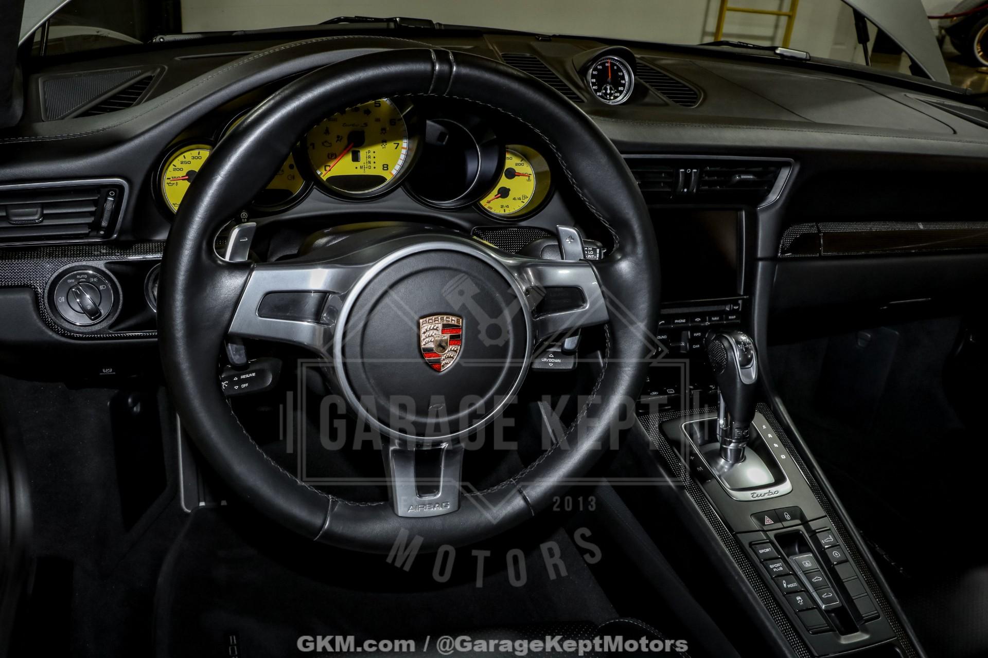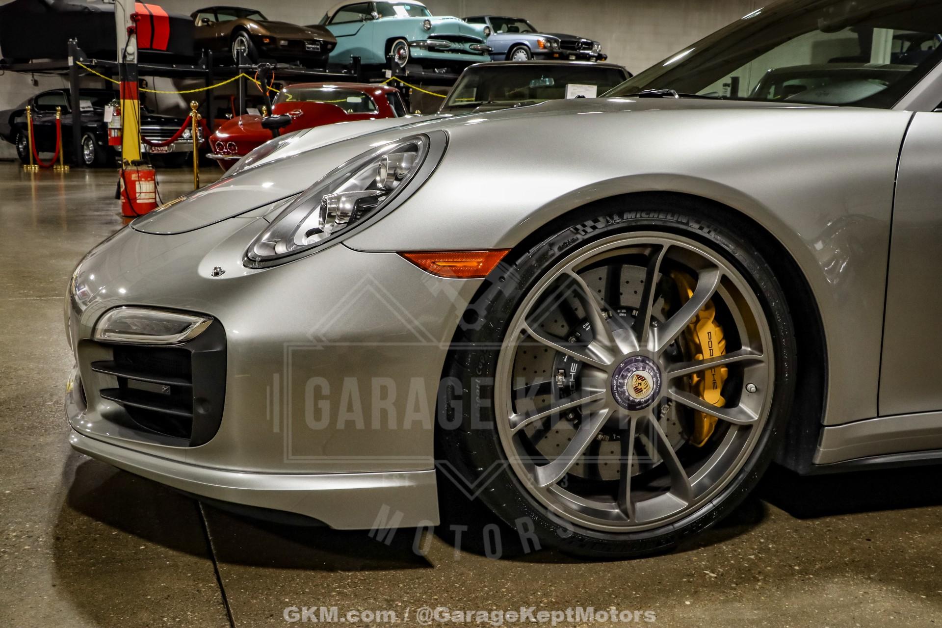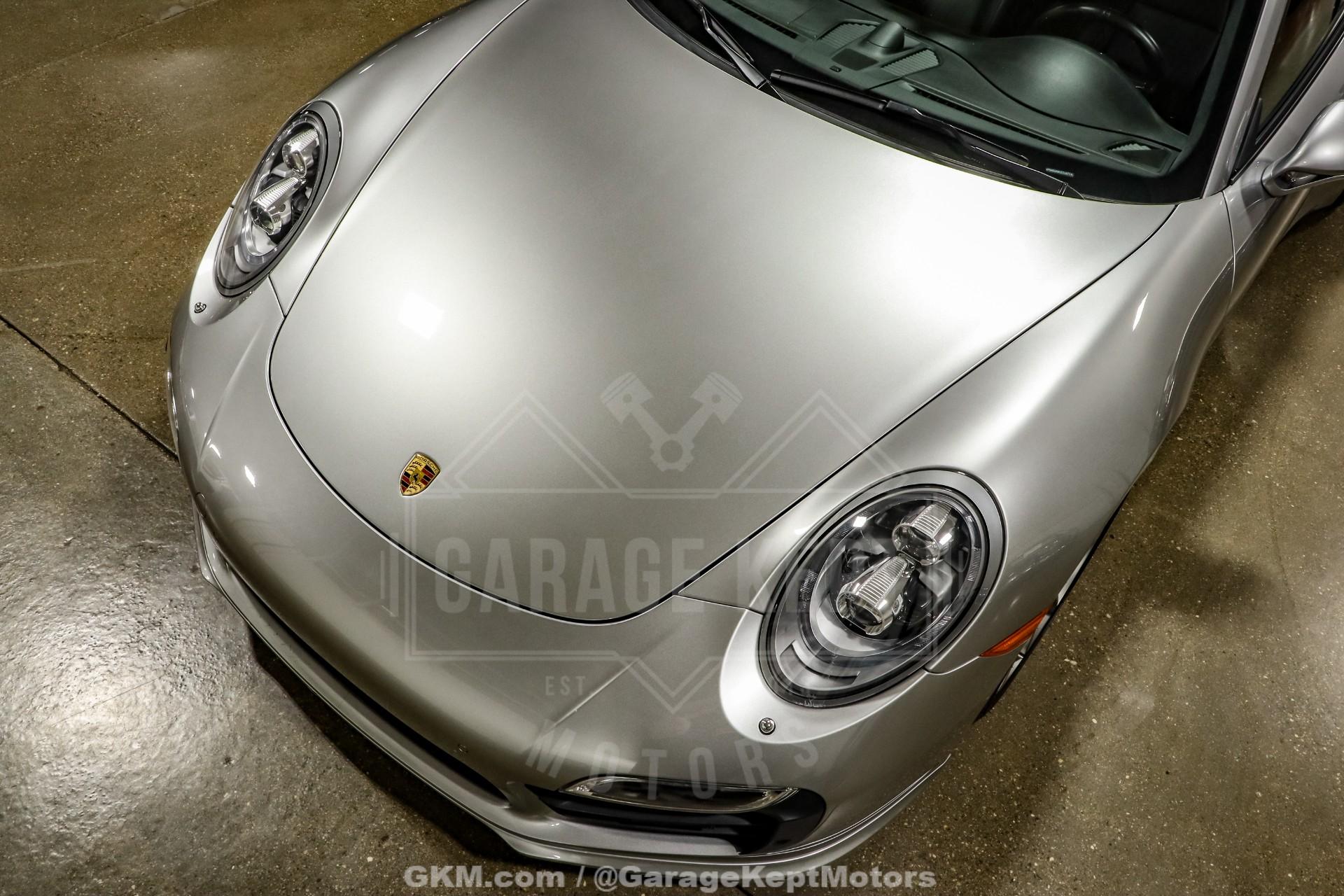 2014 Porsche 911 Turbo S - One Owner- 3.8L Twin Turbo H6- 7 Speed PDK Automatic Transmission- 25,898 Miles- GT Silver Metallic - Black Leather Interior- GT3 Center Lock Wheels- Titanium ExhaustThe 2014 Porsche 911 Turbo S represents the pinnacle of Porsche engineering, combining everyday usability with supercar-level performance. As part of the 991 generation, the Turbo S delivers breathtaking acceleration, advanced all-wheel-drive capability, and precision handling that has made the 911 one of the most respected sports cars in the world.Powered by a 3.8-liter twin-turbocharged flat-six engine and paired with Porsche's lightning-fast 7-speed PDK transmission, this Turbo S offers explosive performance with seamless gear changes and exceptional control. Known for its ability to launch from 060 mph in under three seconds, the Turbo S blends raw power with remarkable stability and confidence in all driving conditions.Finished in GT Silver Metallic over a Black leather interior, this one-owner example presents a timeless and sophisticated color combination. The addition of GT3 center lock wheels enhances both the visual appeal and performance pedigree, while the titanium exhaust system delivers a sharper, more aggressive tone that complements the car's dynamic capabilities.With just 25,898 miles, this Turbo S stands as a well-preserved example of one of Porsche's most advanced and capable road cars. Whether you're seeking a high-performance daily driver or a collector-quality modern supercar, this 911 Turbo S offers an unmatched combination of speed, refinement, and iconic design.