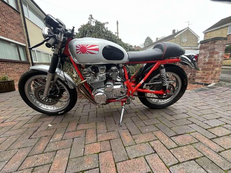 - Dating from 1981, this example has been modified into café racer-style with a red frame, silver tank and period racing-style graphics