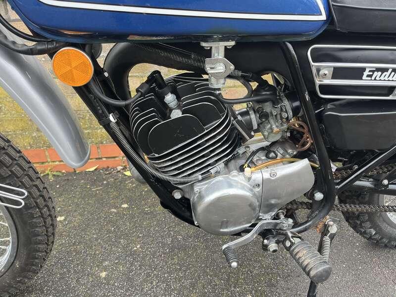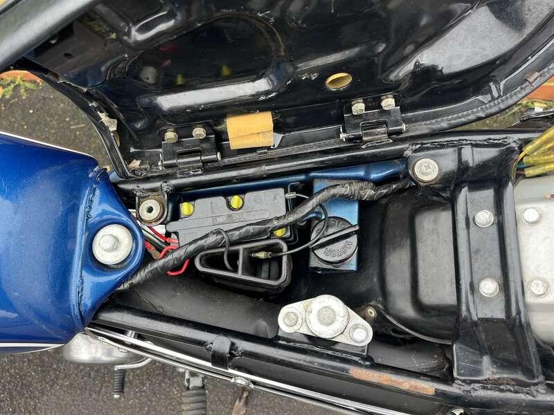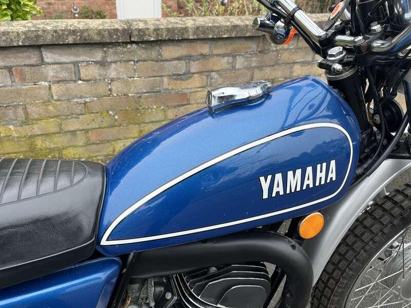 - The bike presents well in Brigade Blue and appears largely original, with good paintwork, chrome rear rack and period Yamaha switchgear.