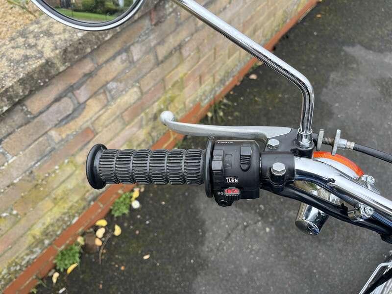 - Twin rear shocks and high-level exhaust. Fitted with dual clocks and lighting for road use